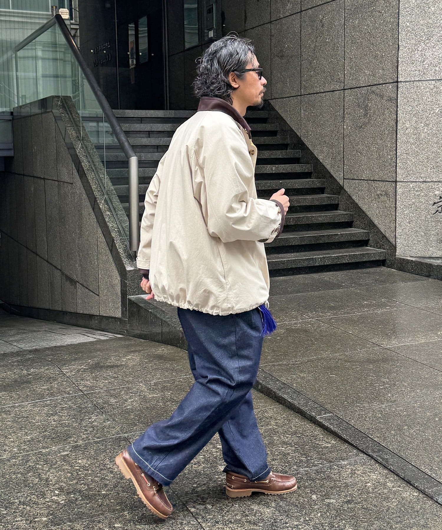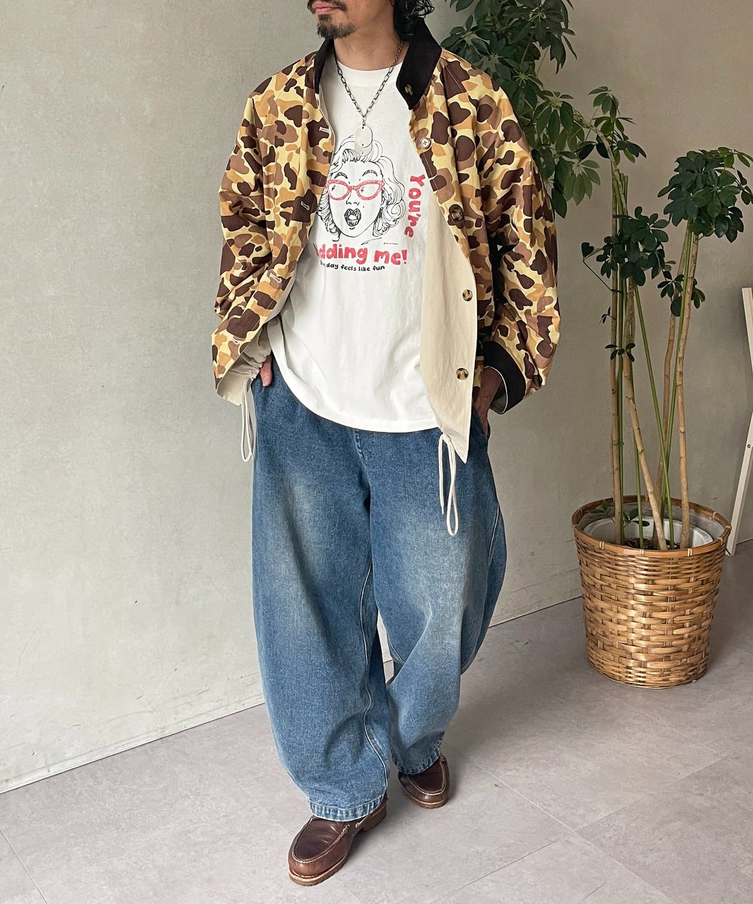 丈は微妙に長くて、今のゆるいパンツと噛み合わない。
