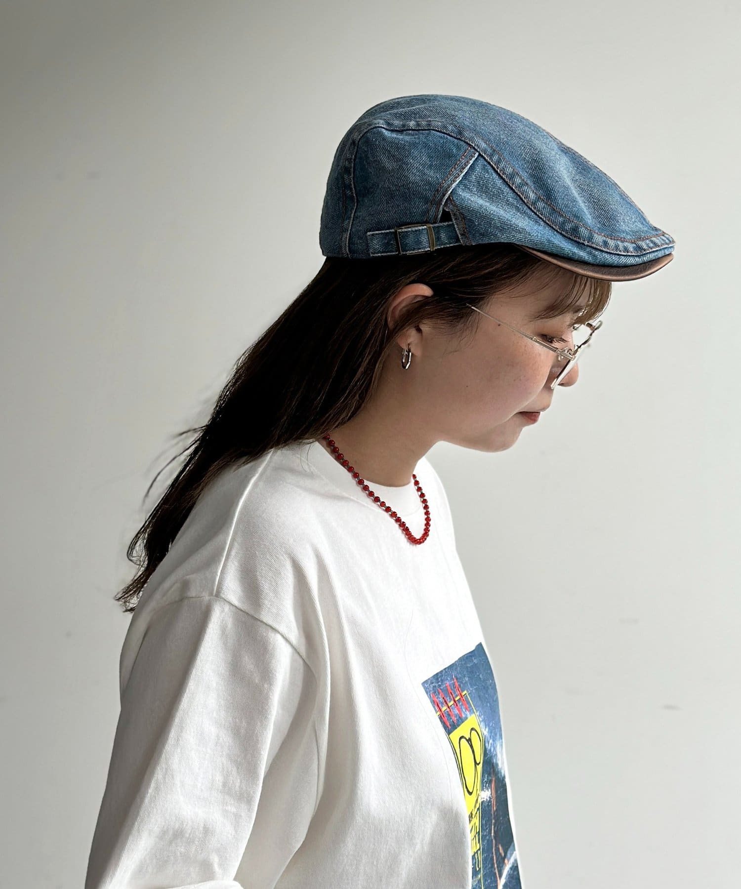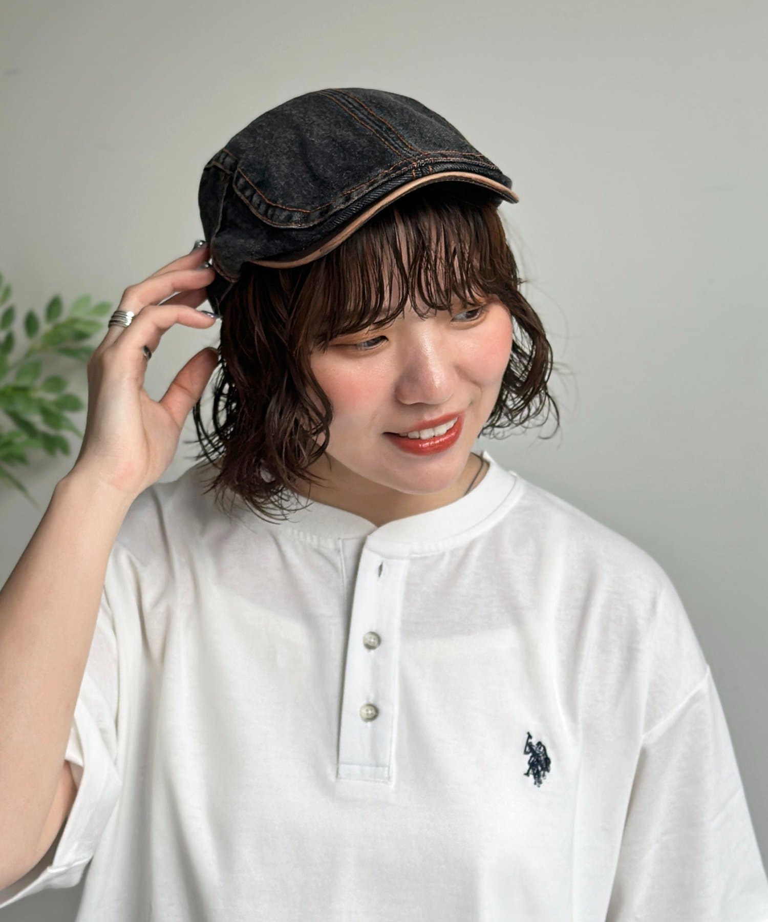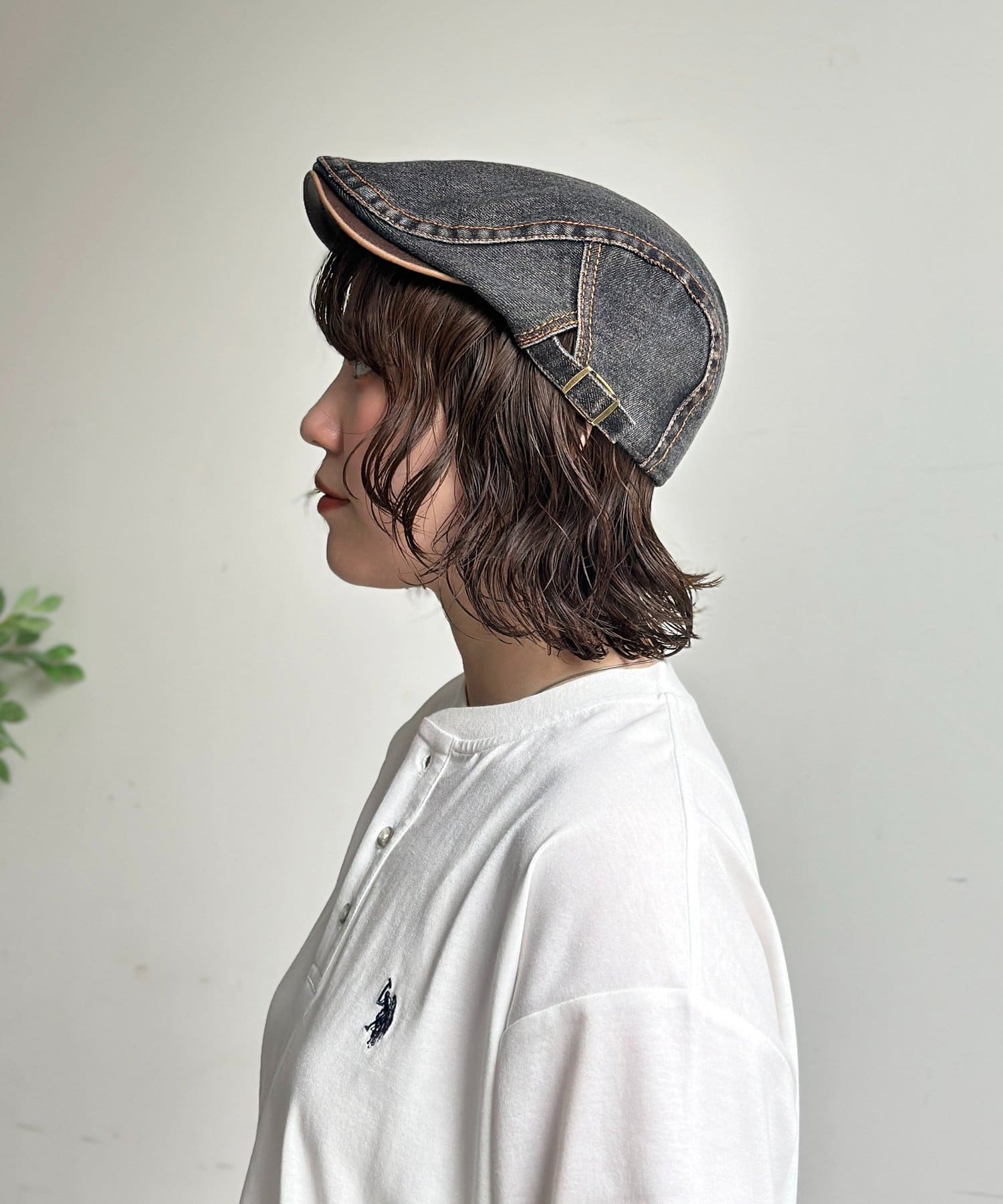 デニムとフェイクレザーのコンビネーションが目を惹く、こだわりのキャスケット◎