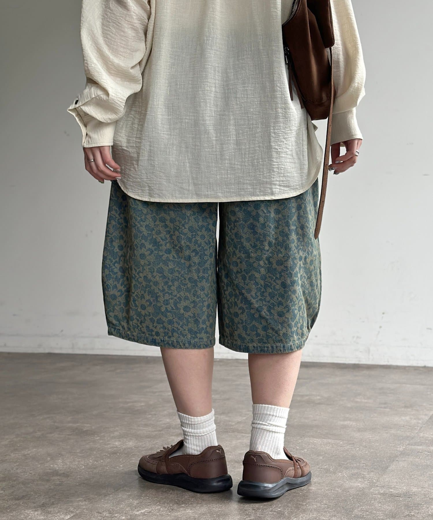 ヴィンテージライクな花柄が目を惹く、主役級デニムショーツ