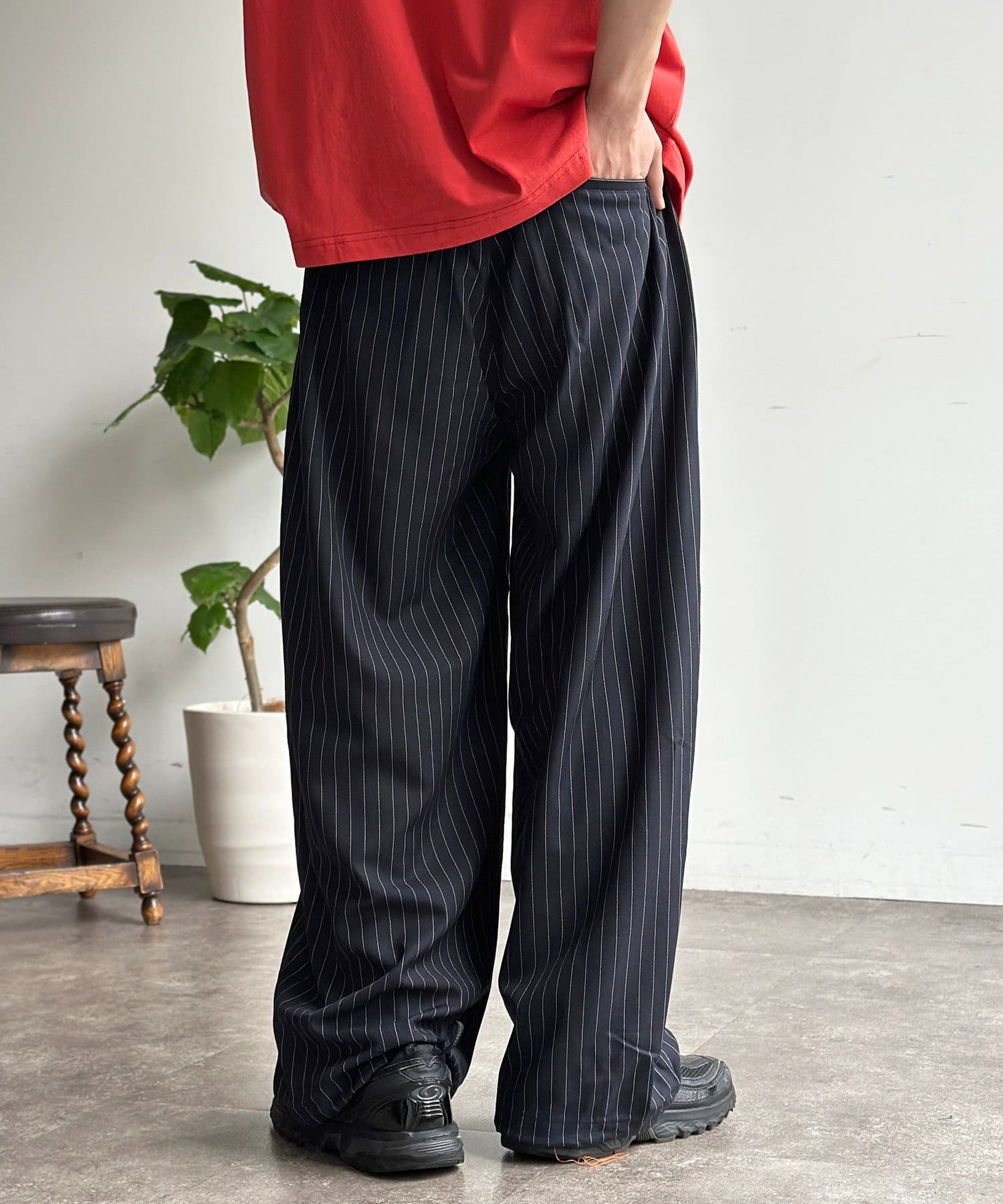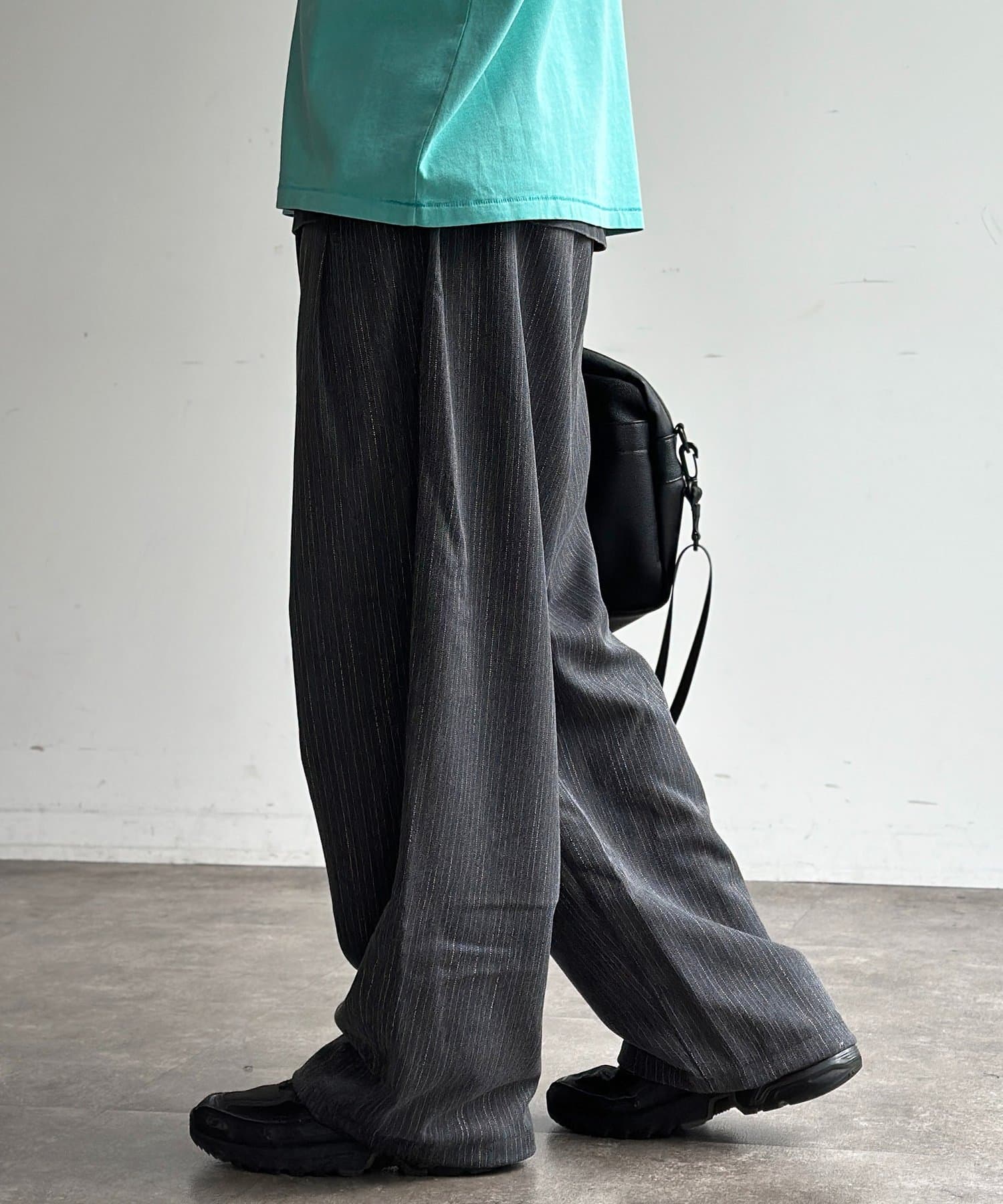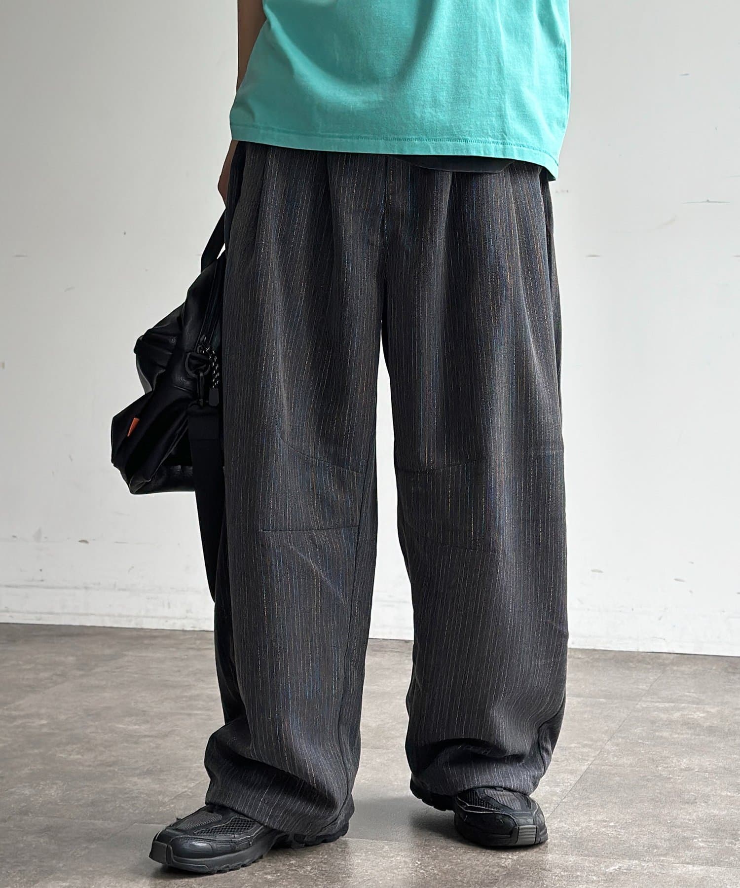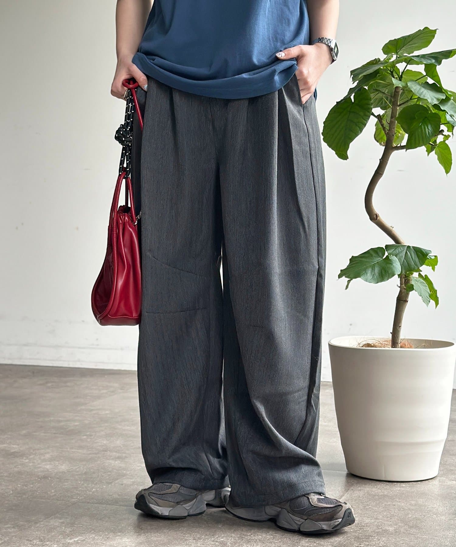 ・シンプルな無地のTシャツやスウェットを合わせるだけで、パンツのシルエットが引き立つこなれたリラックスコーデが完成します。