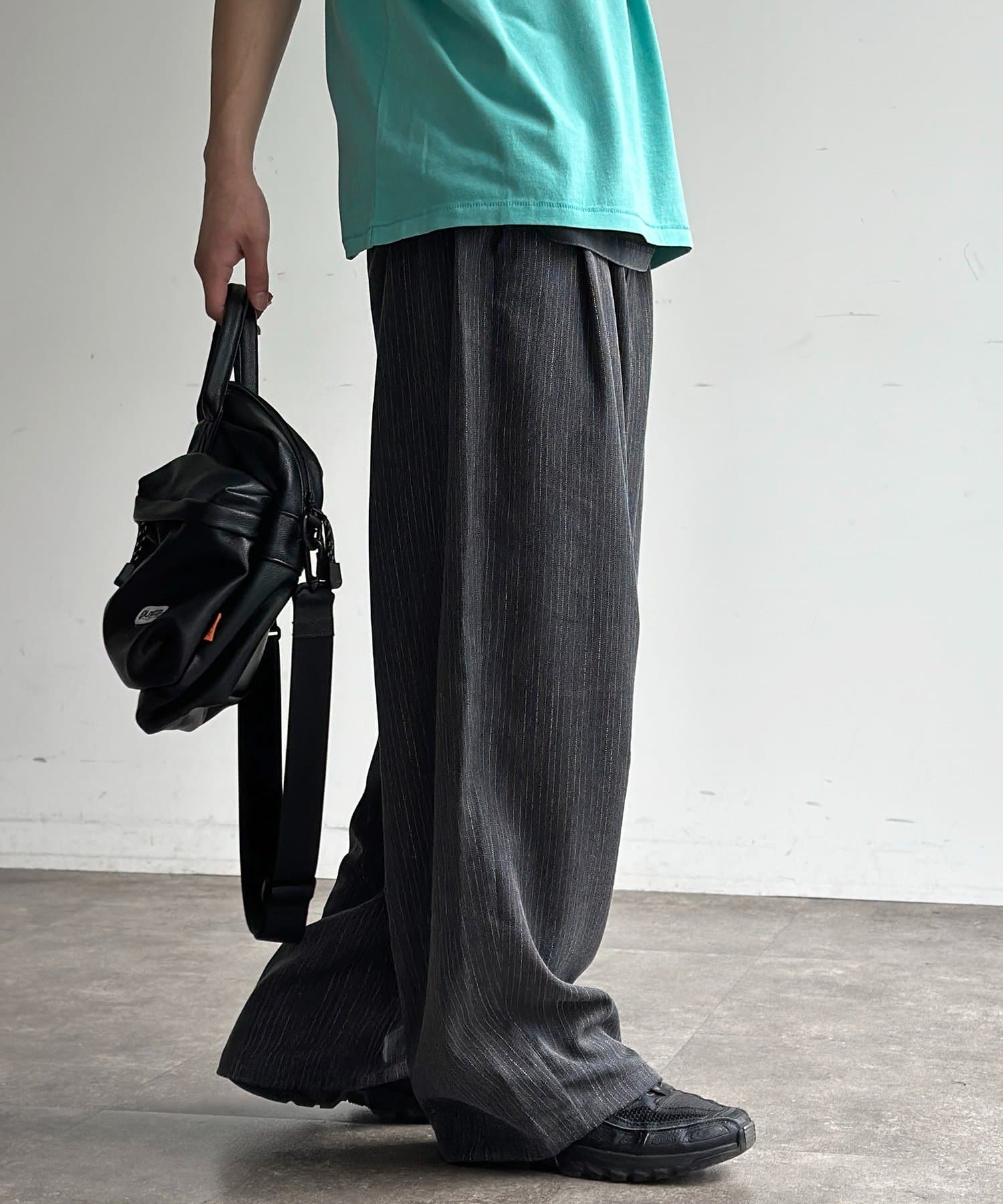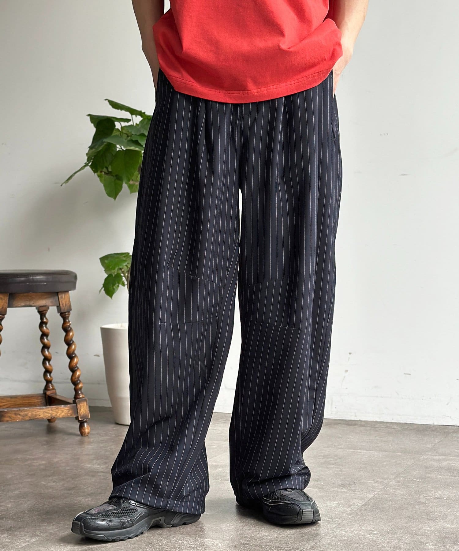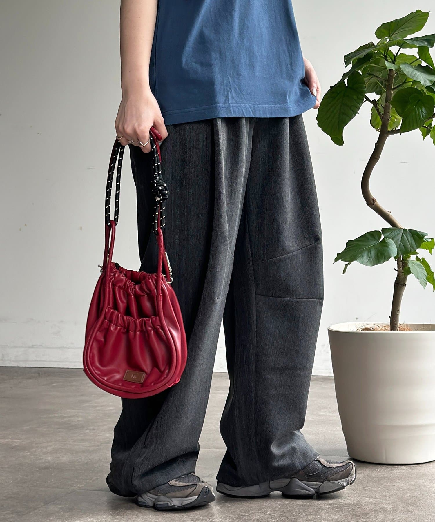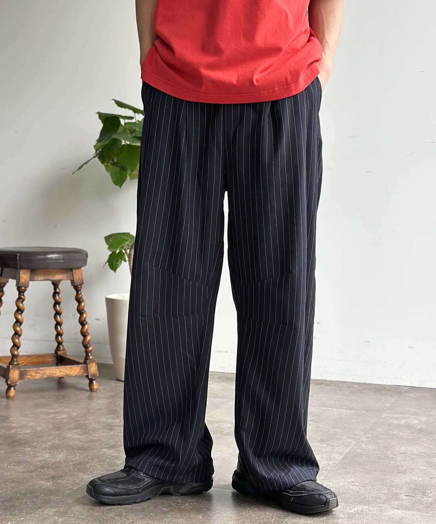 ・シンプルな無地のTシャツやスウェットを合わせるだけで、パンツのシルエットが引き立つこなれたリラックスコーデが完成します。