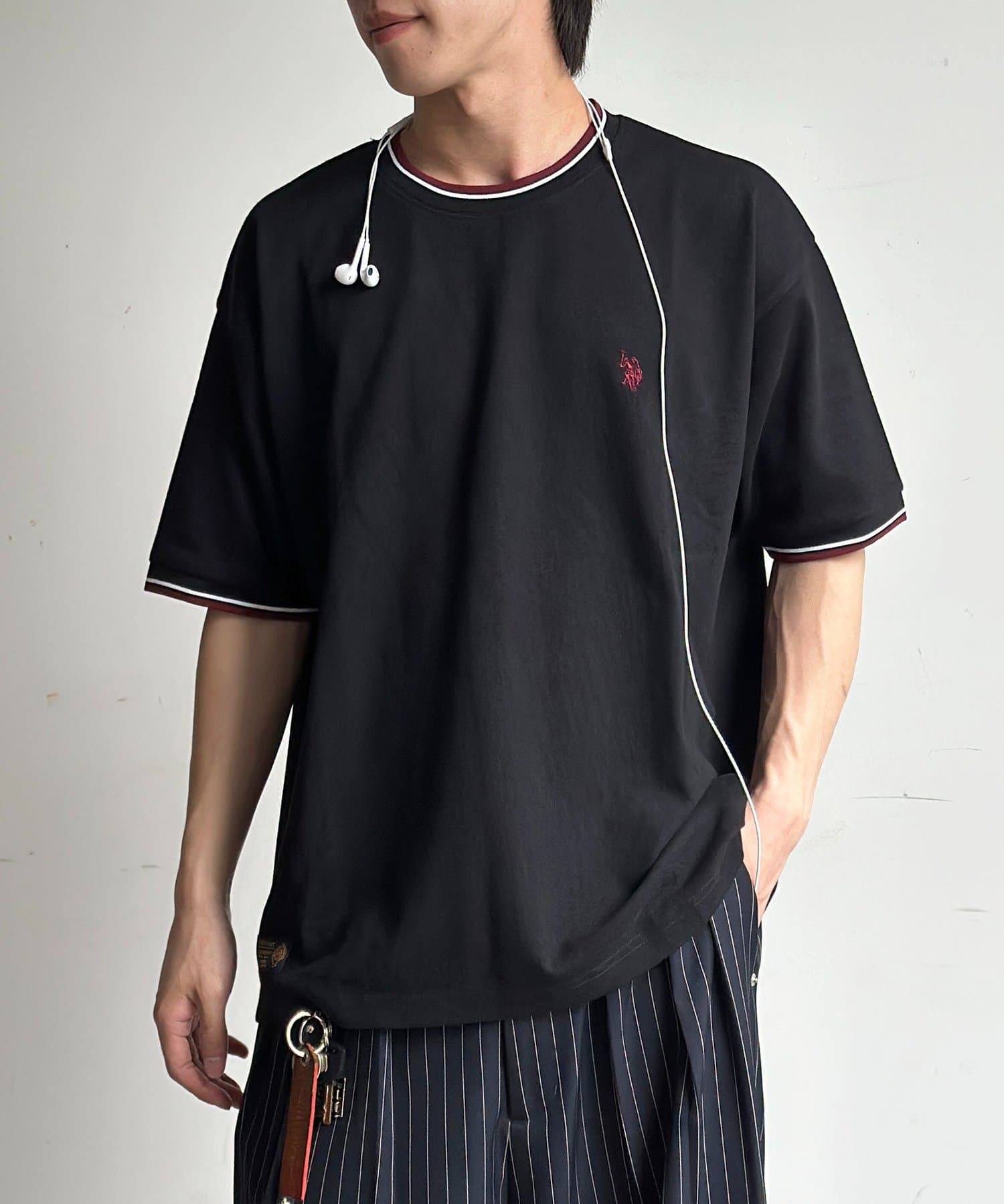【U.S. POLO ASSN.】配色リブ鹿の子T