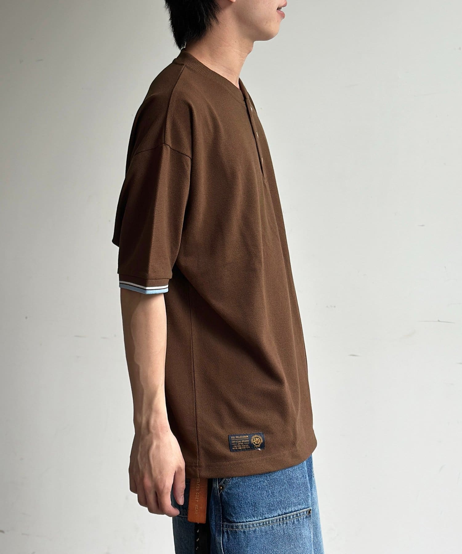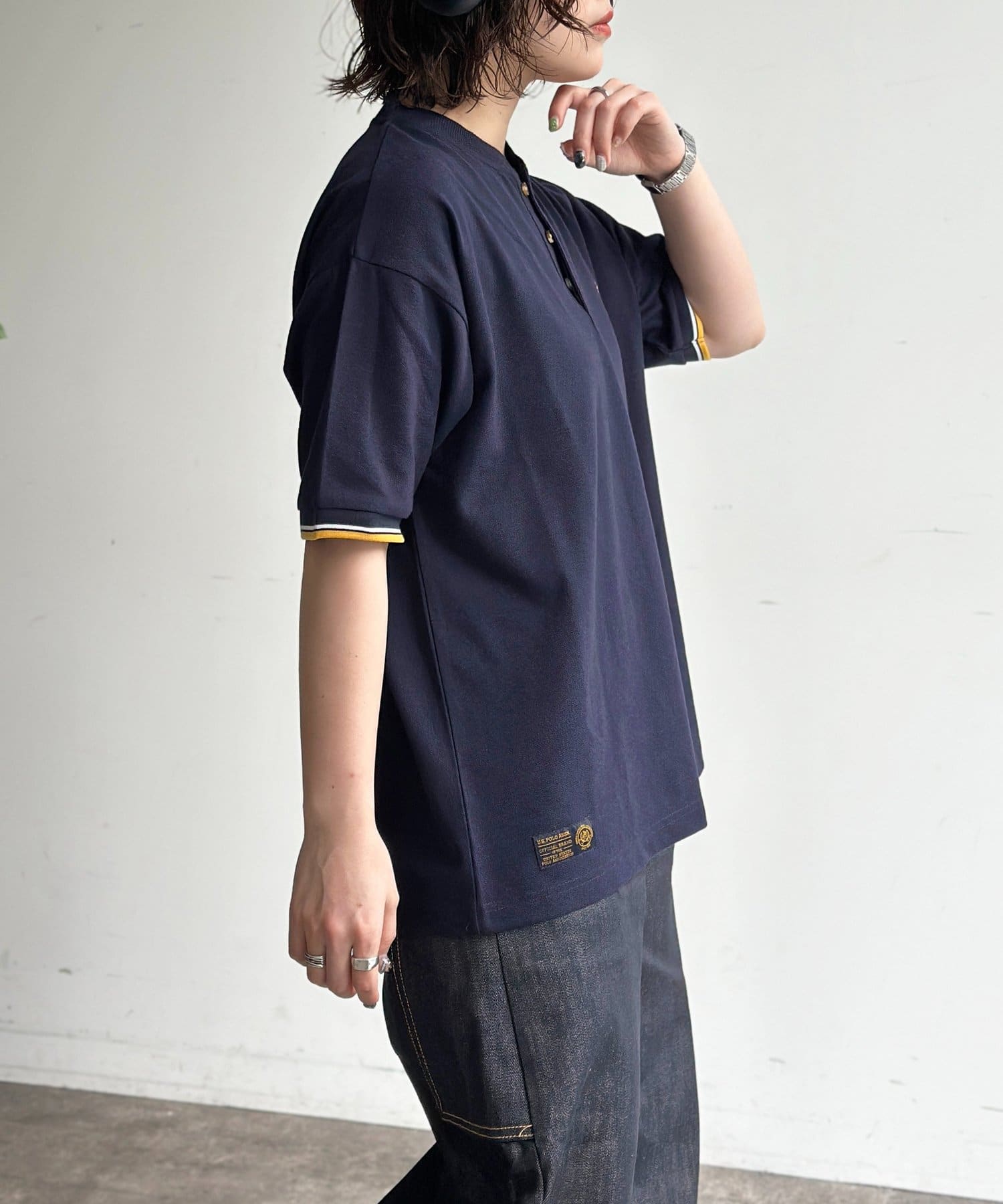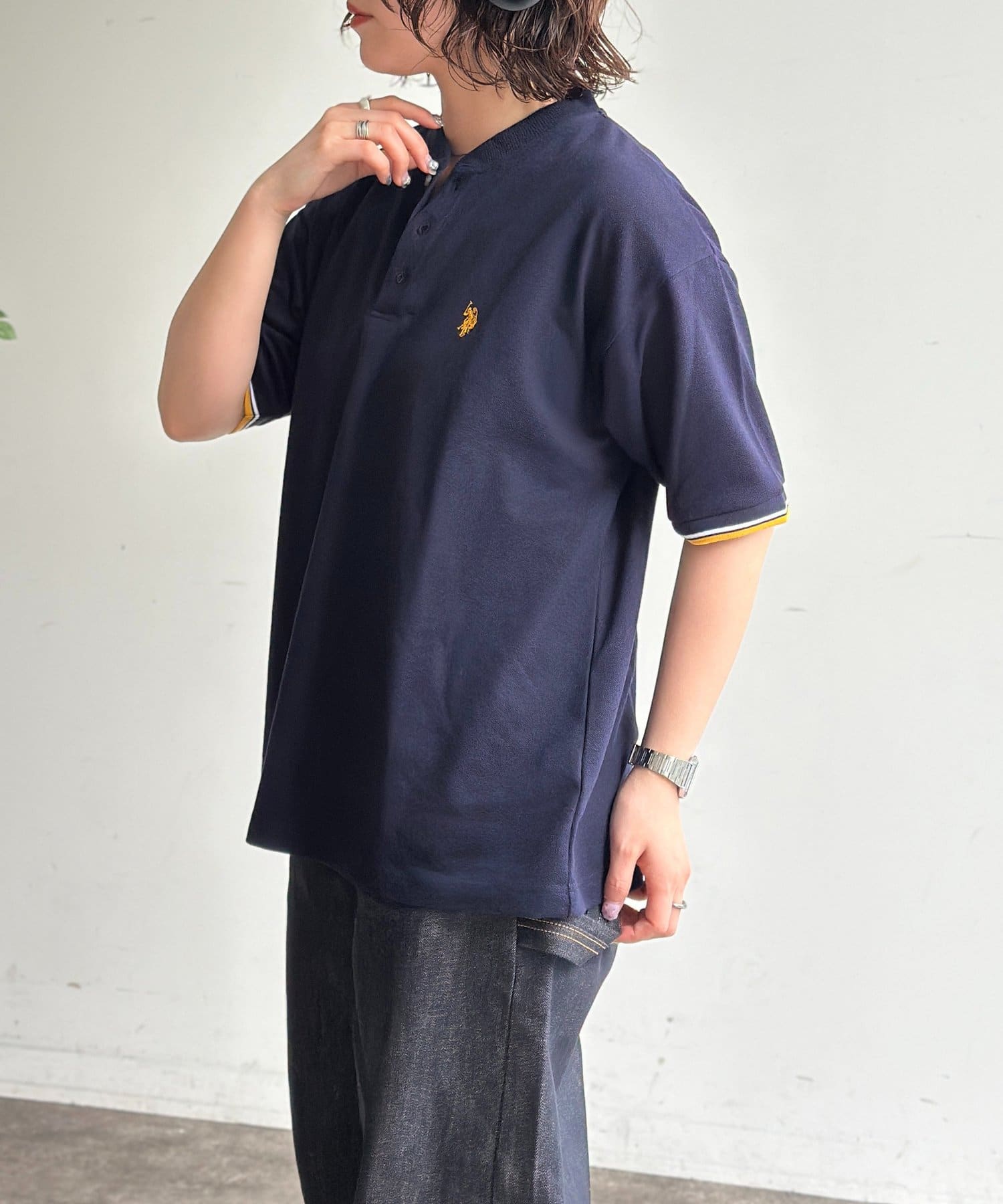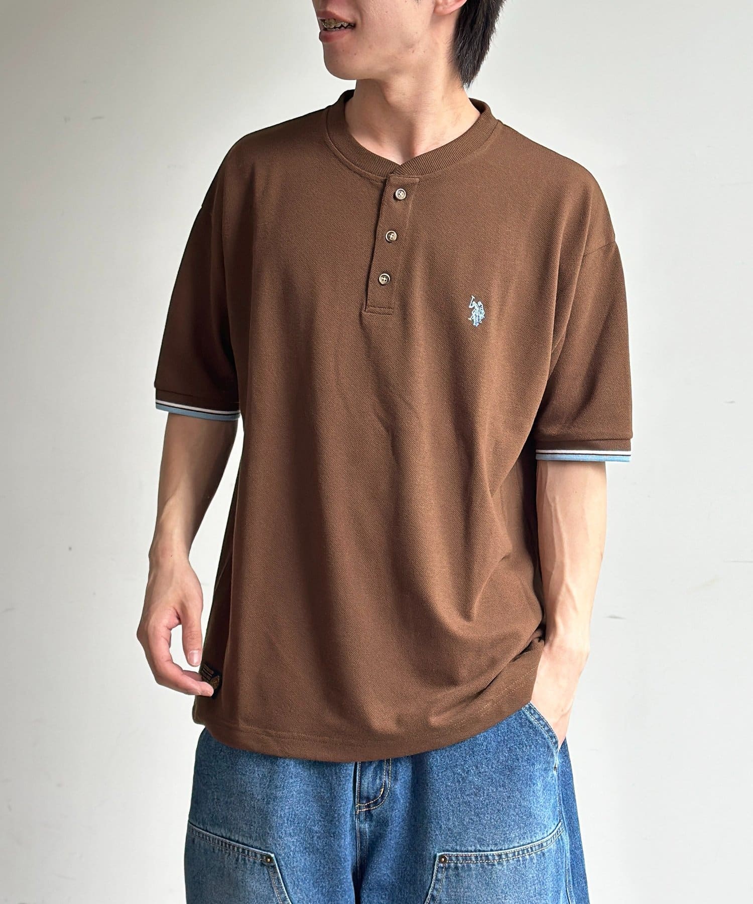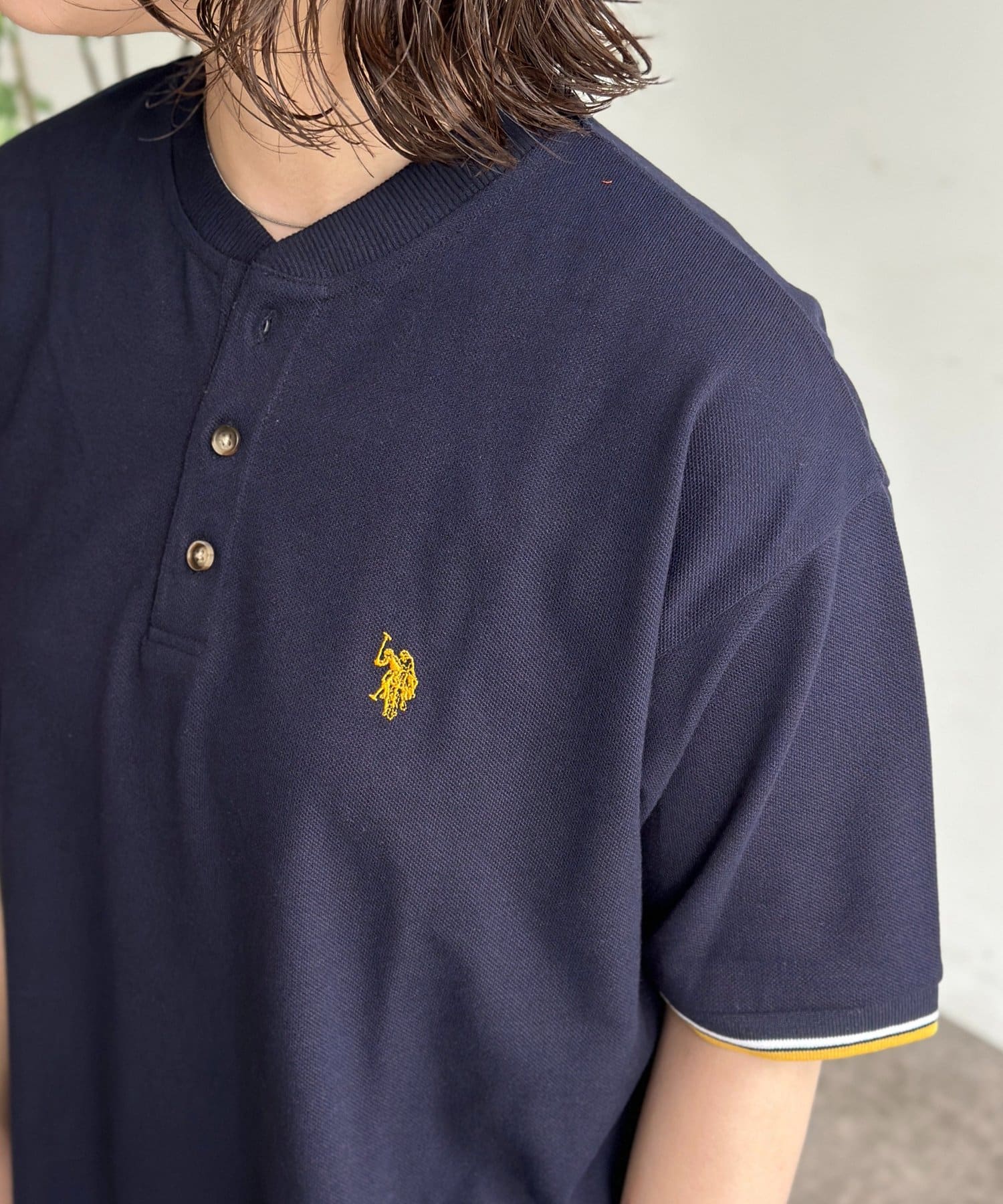 【U.S. POLO ASSN.】配色リブ鹿の子ヘンリー