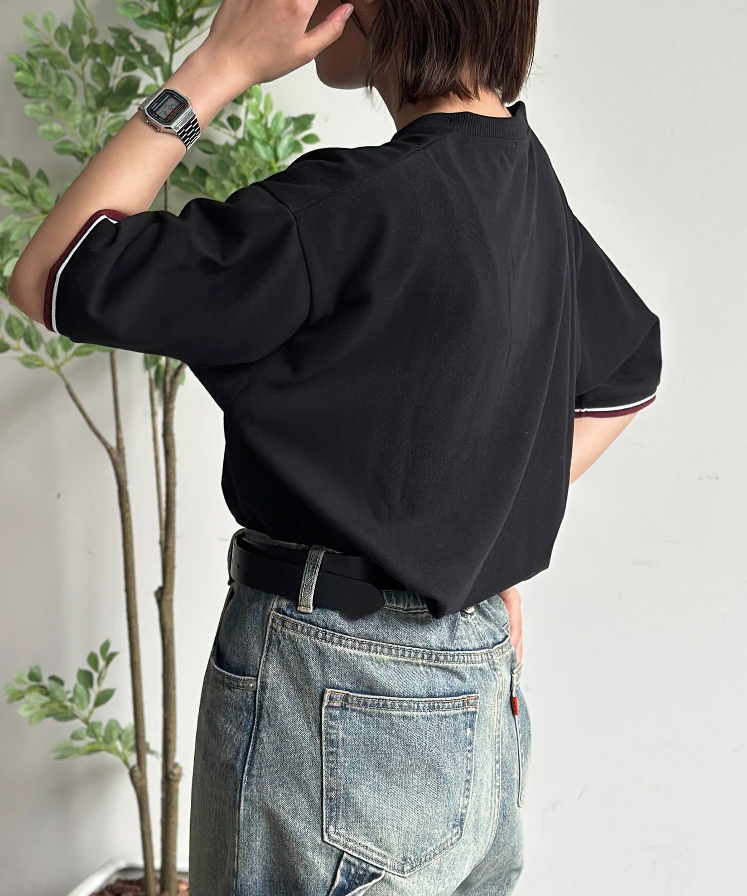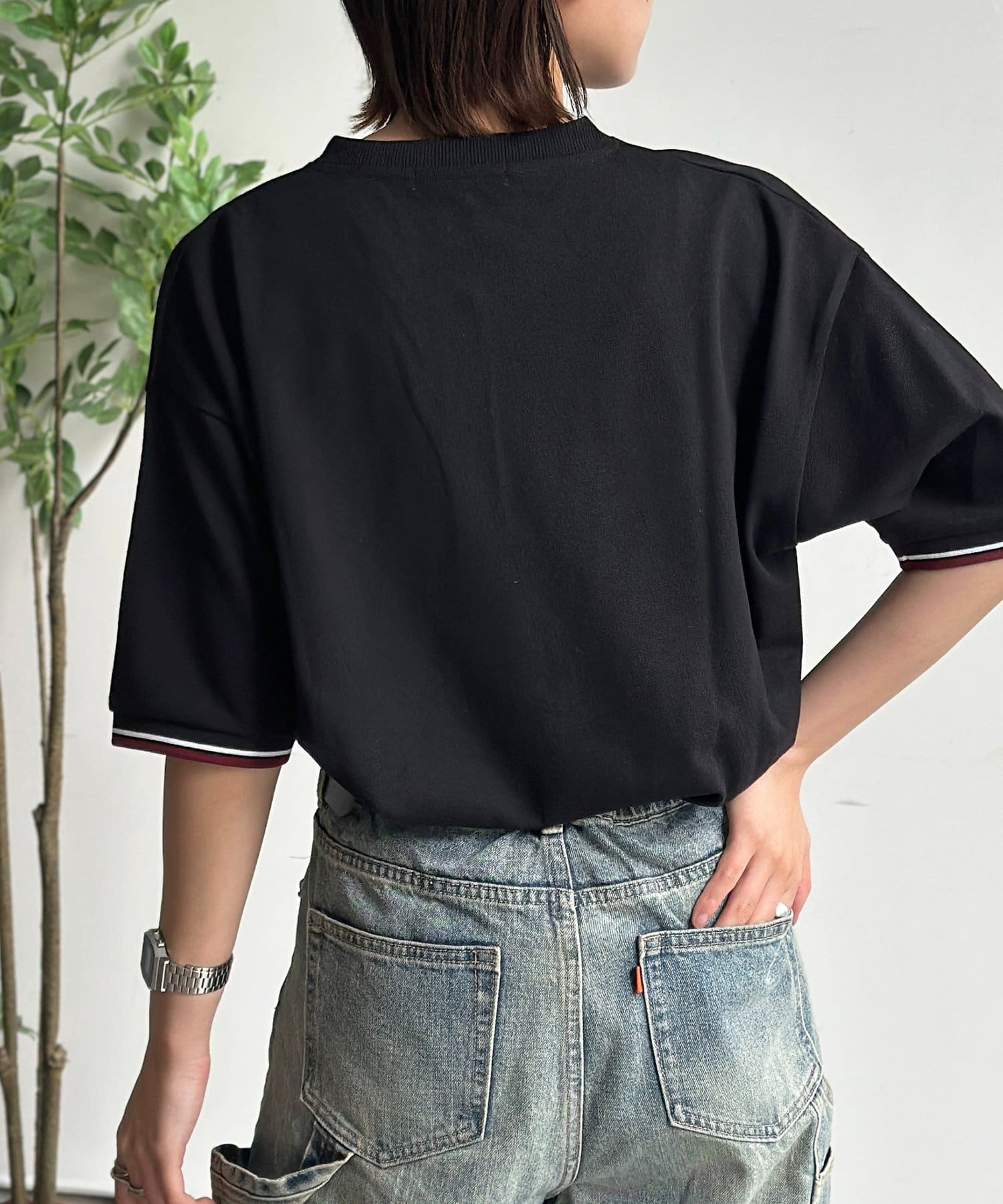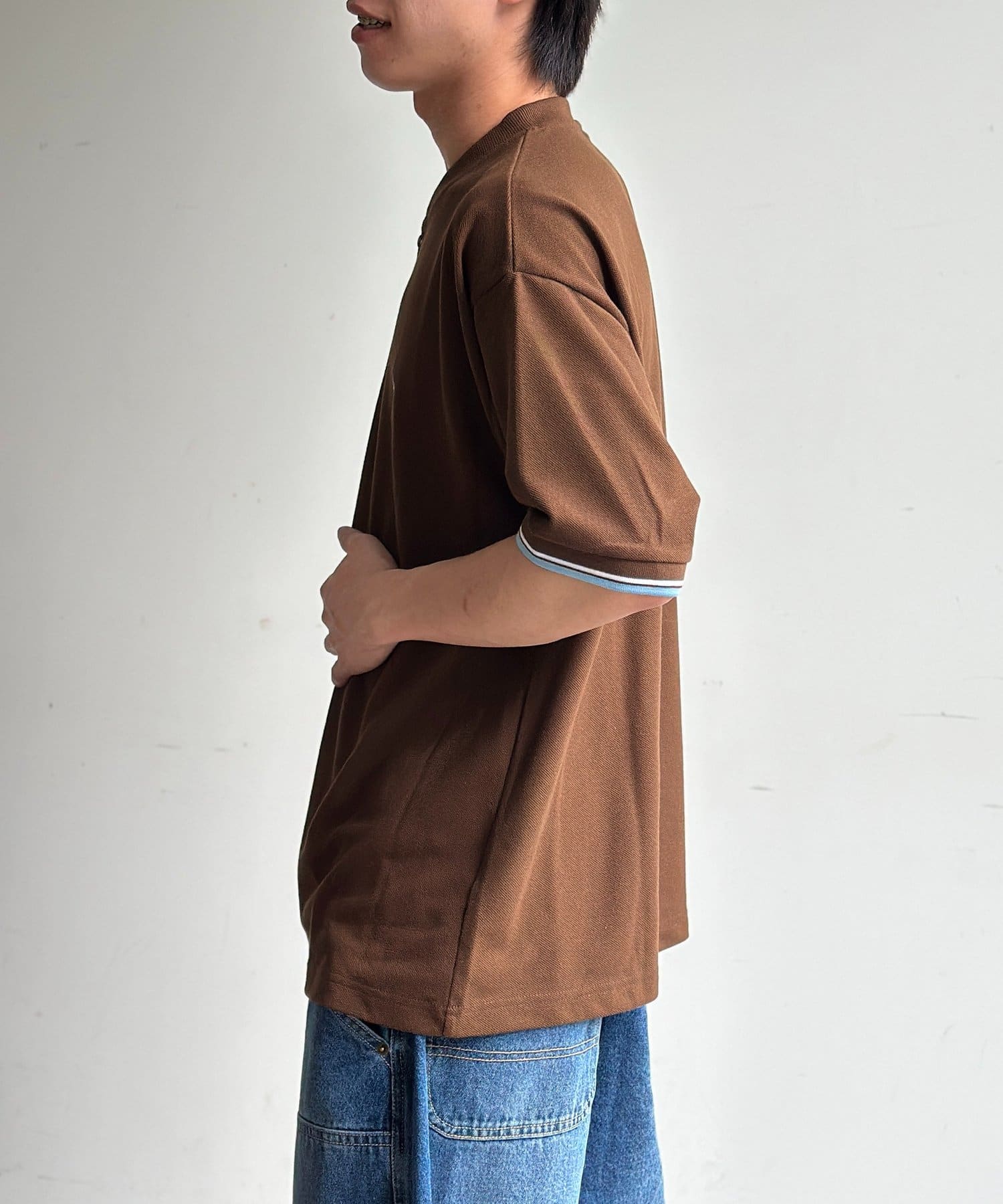袖の配色リブが決め手!ヘンリーネックTシャツ