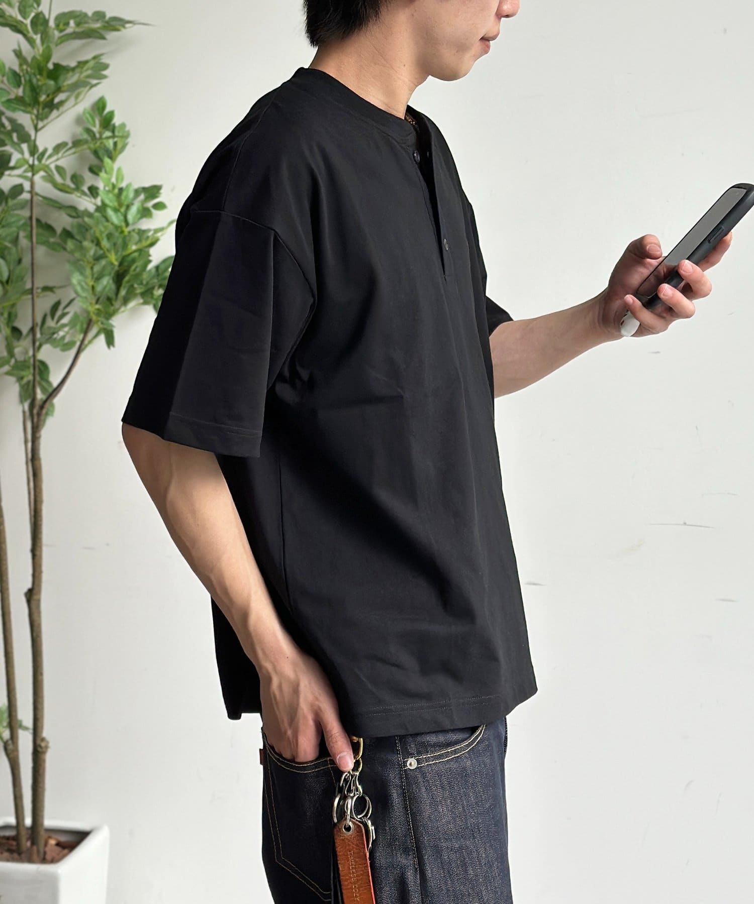 ・首元に抜け感をプラスする上品なヘンリーネックデザイン。