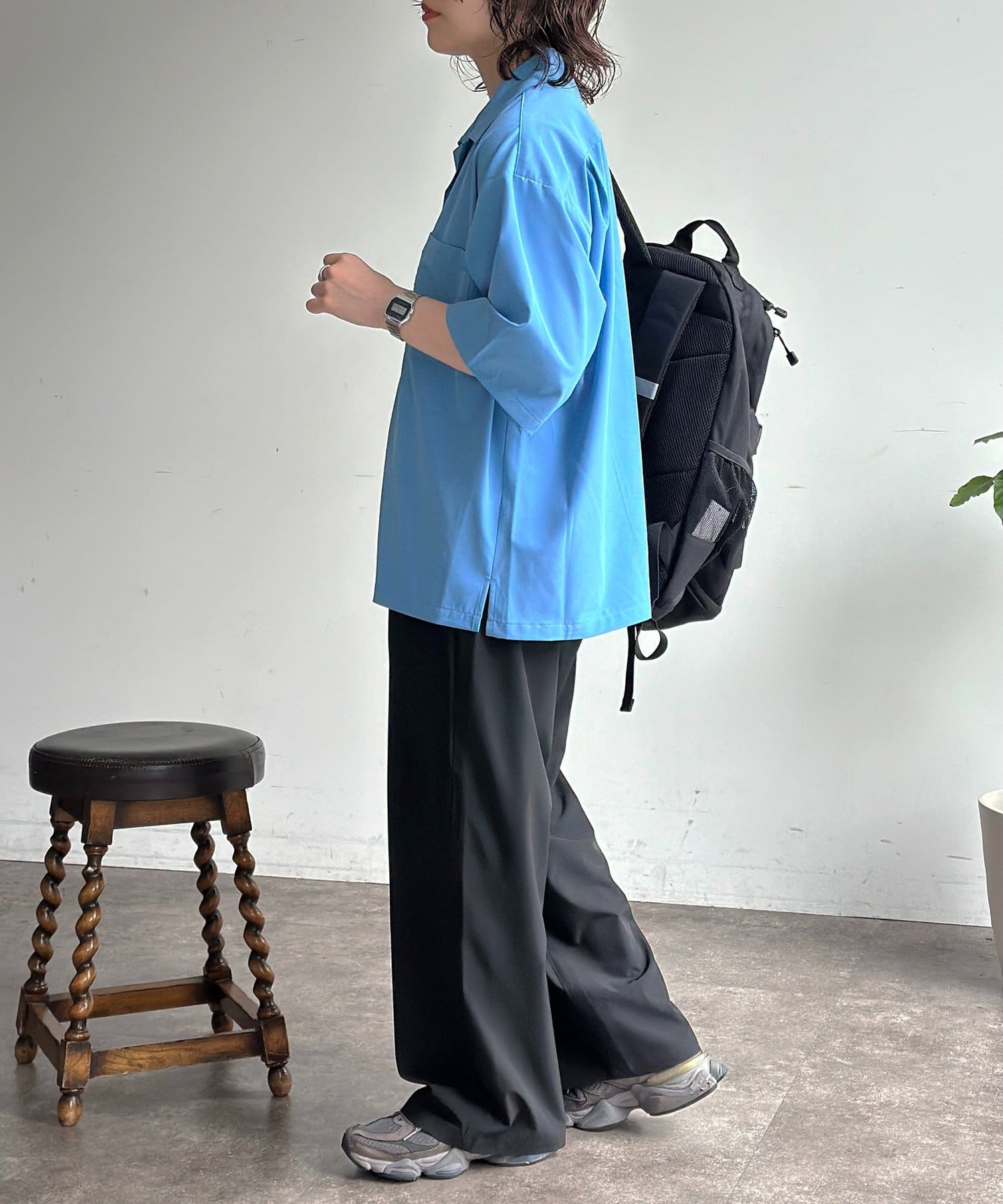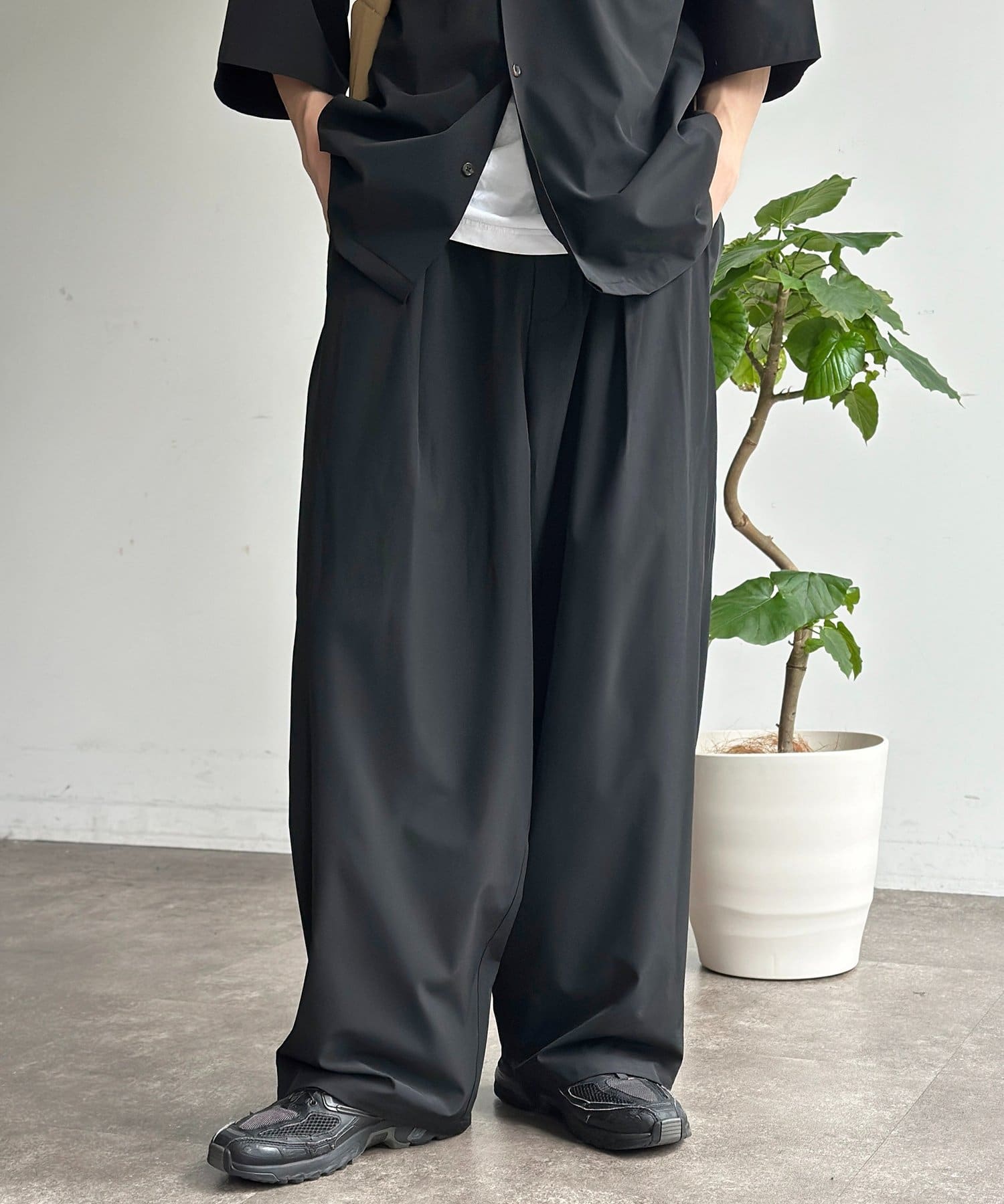 シャツとパンツがセットになっており、コーデに悩む時間を短縮できる優秀アイテム!