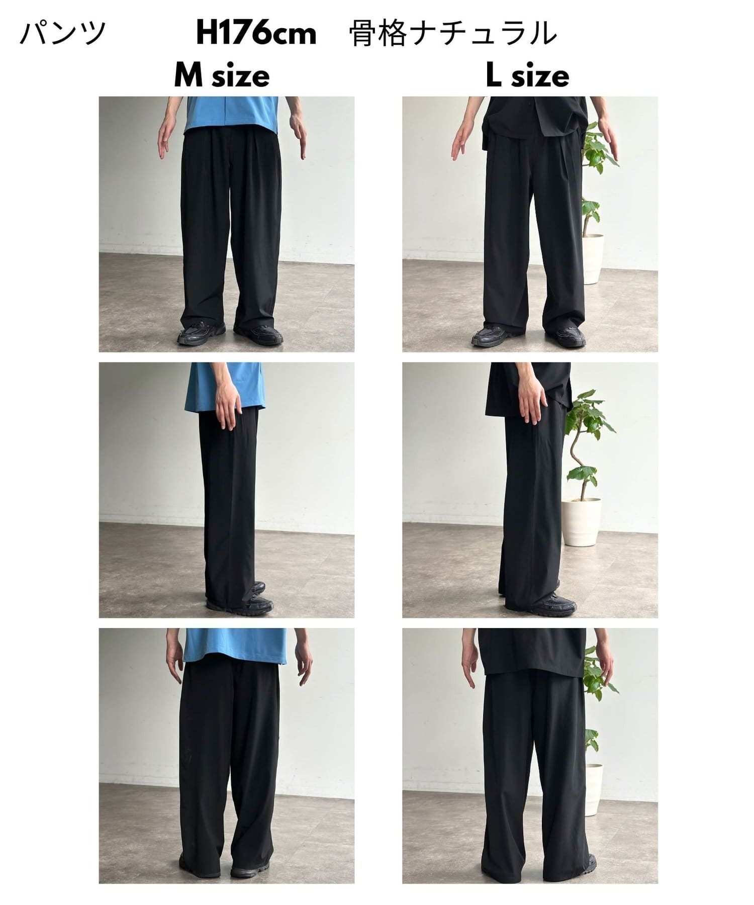 M:ウエスト70~90 ヒップ116 股上33 股下67 もも周り74 裾周り53