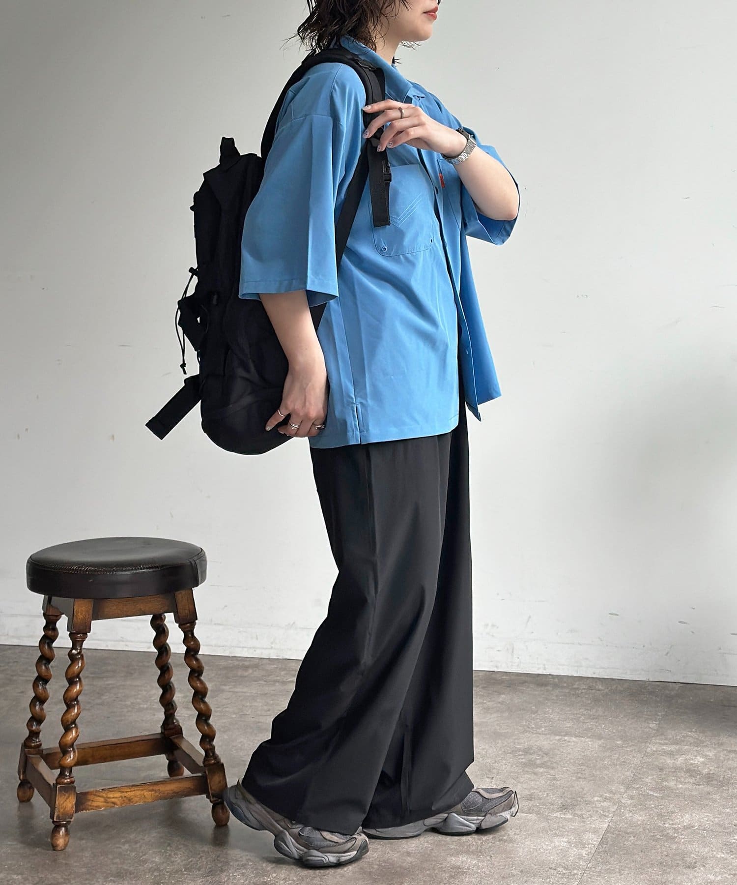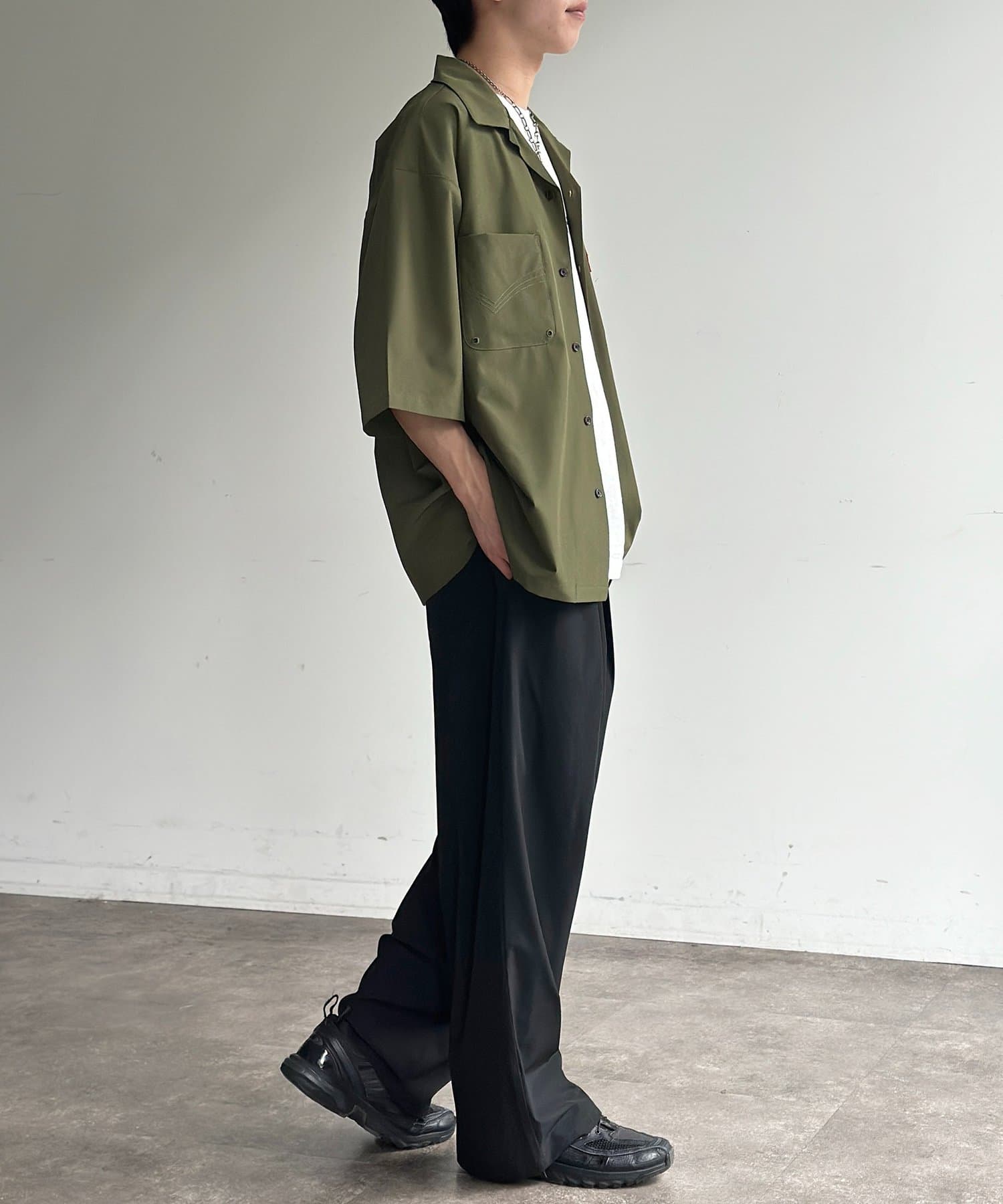 ・リラックス感のあるオーバーサイズシルエットと、美しいドレープを生む生地感