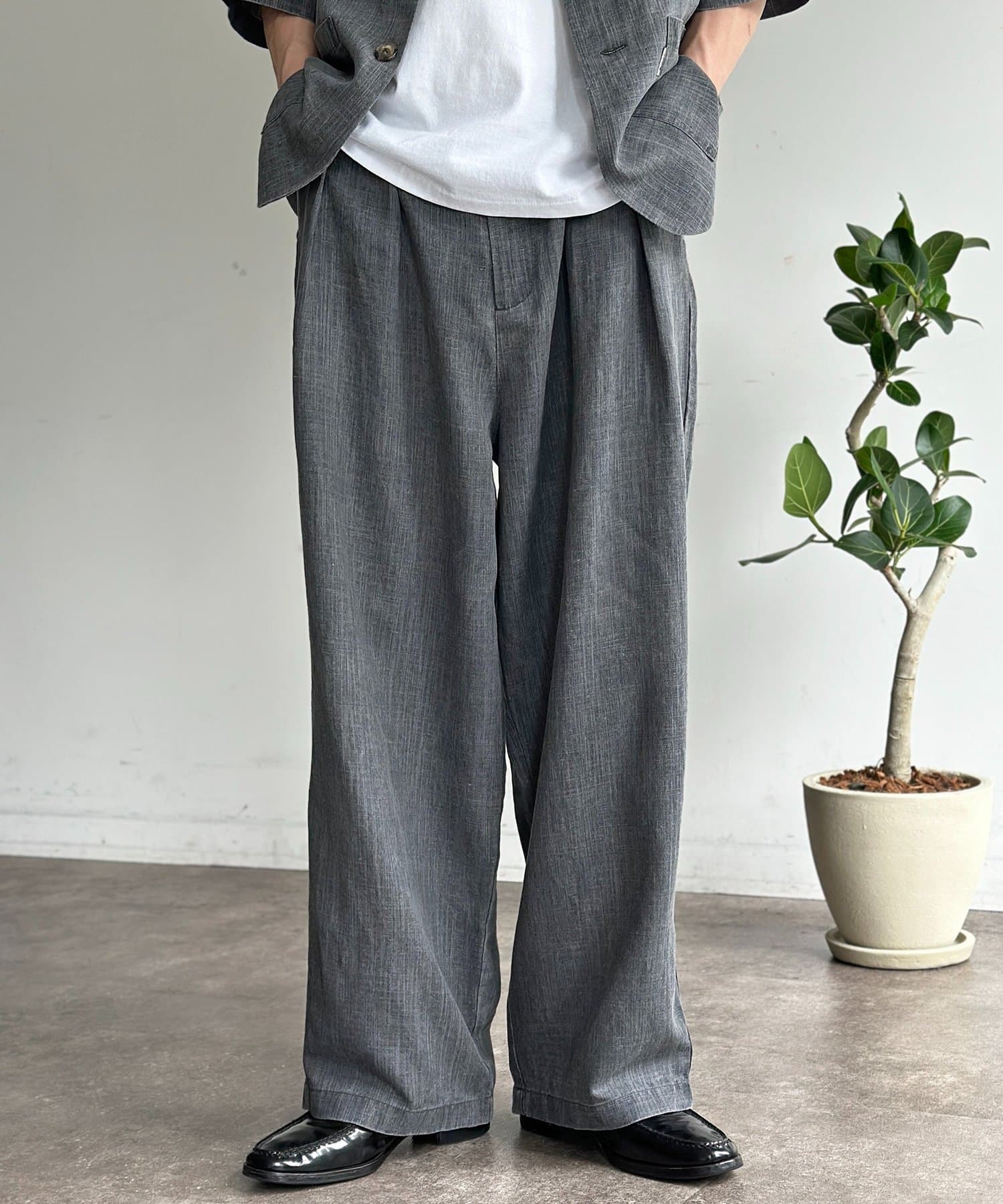 ・立体的なシルエットを作り出す2タックと、リラックス感のあるワイドシルエット。