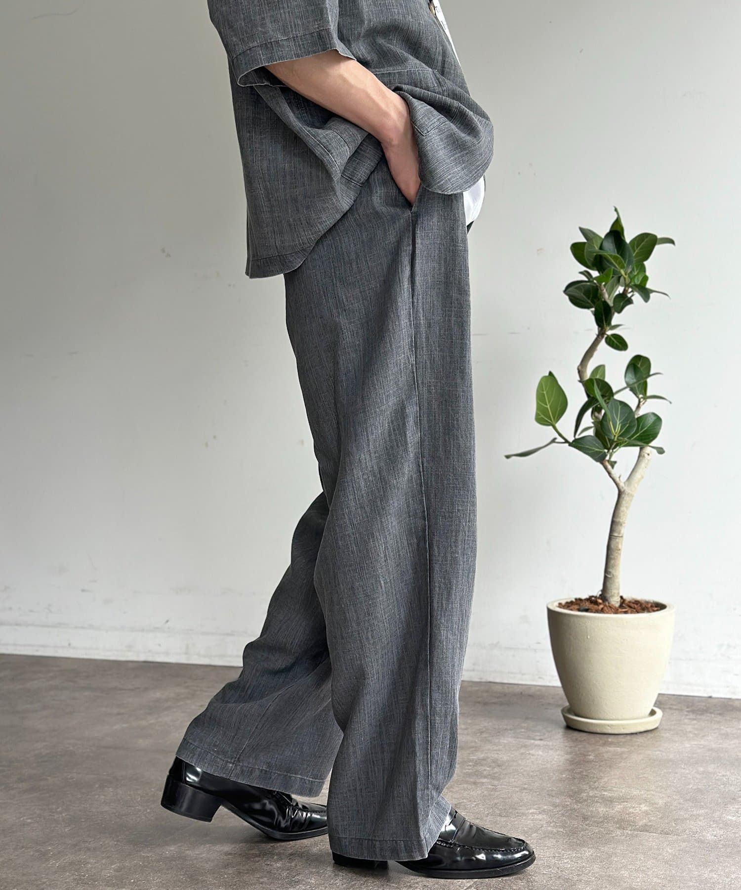 深めの2タックとワイドなシルエットが、動くたびに美しいドレープを生み出します。