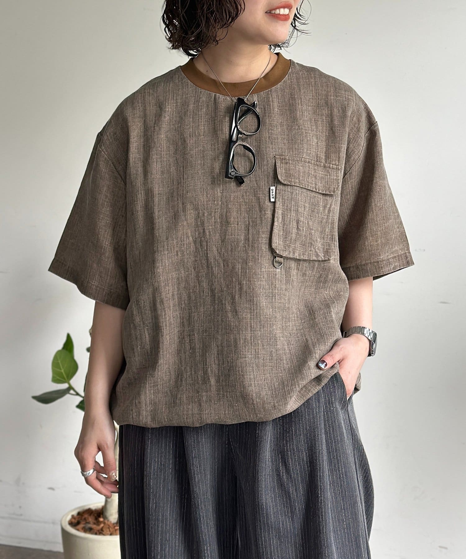 CPCM(シーピーシーエム) ピグメントリネン半袖Tブラウス