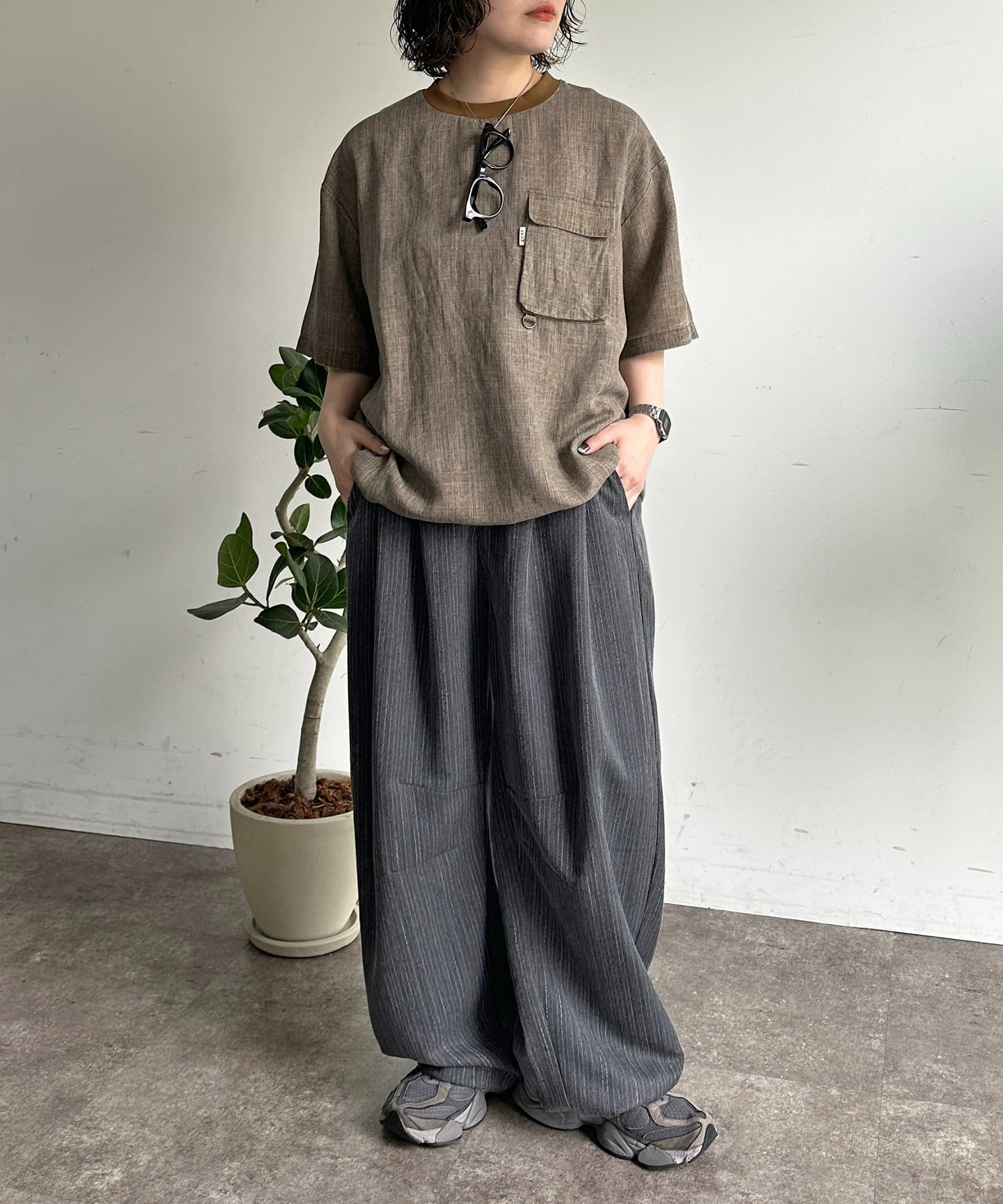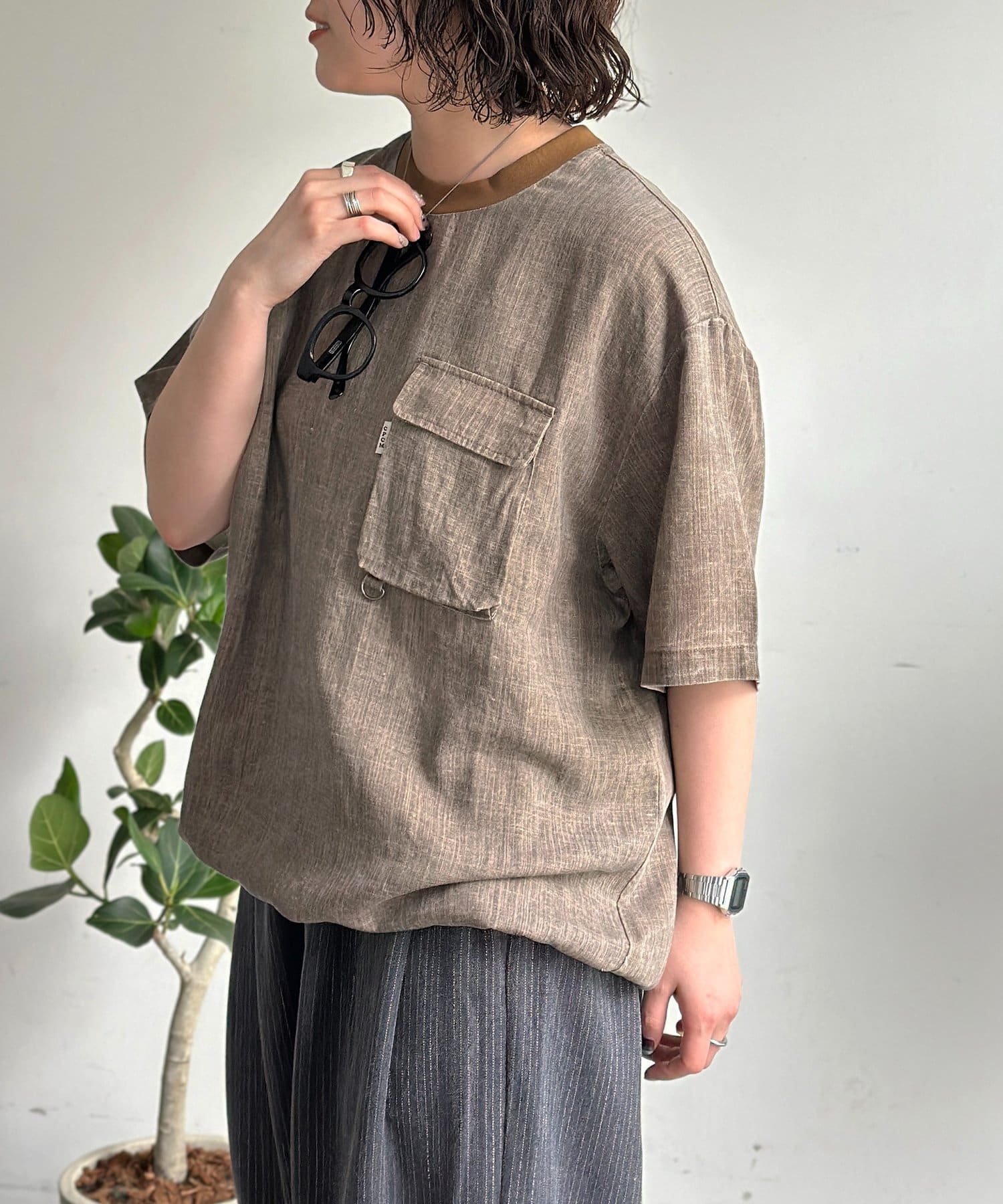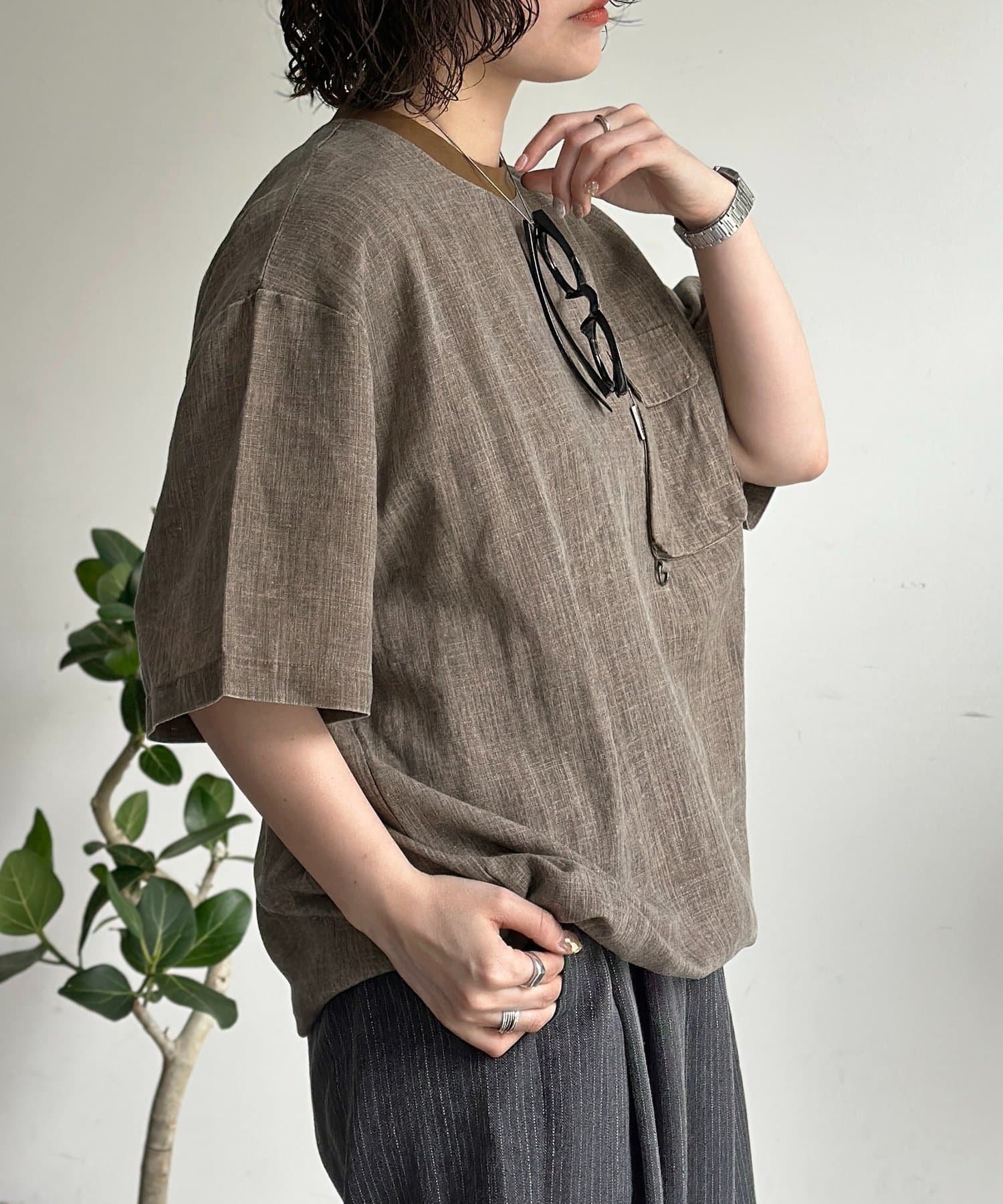 • CPCM(シーピーシーエム) ピグメントリネン半袖Tブラウス