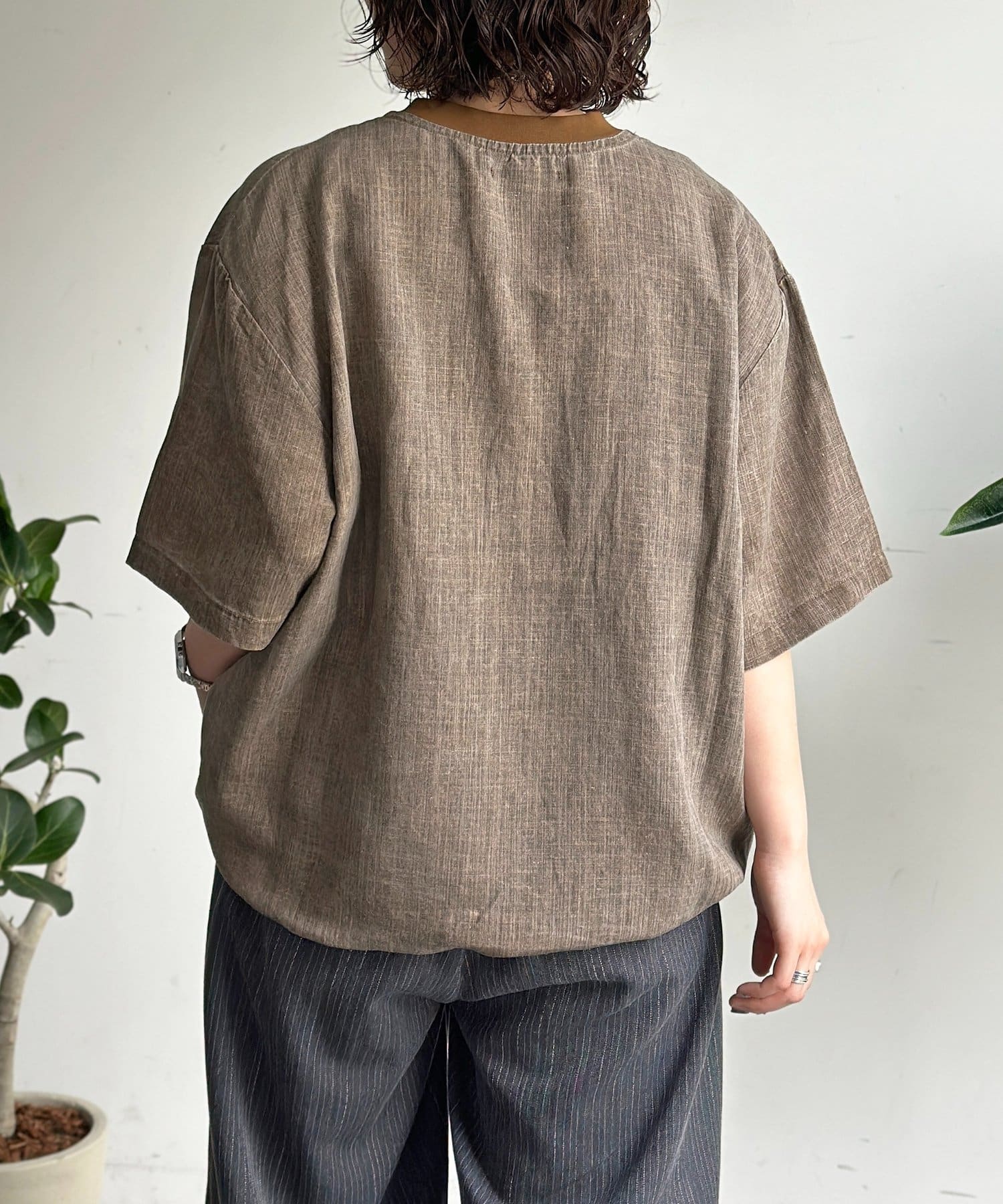 ピグメントリネン半袖Tブラウス