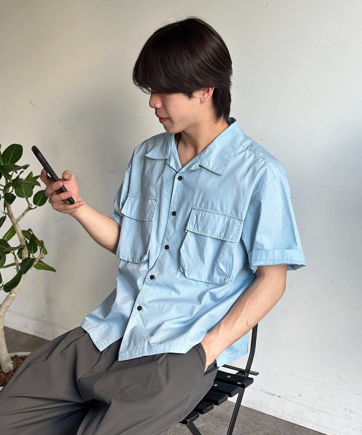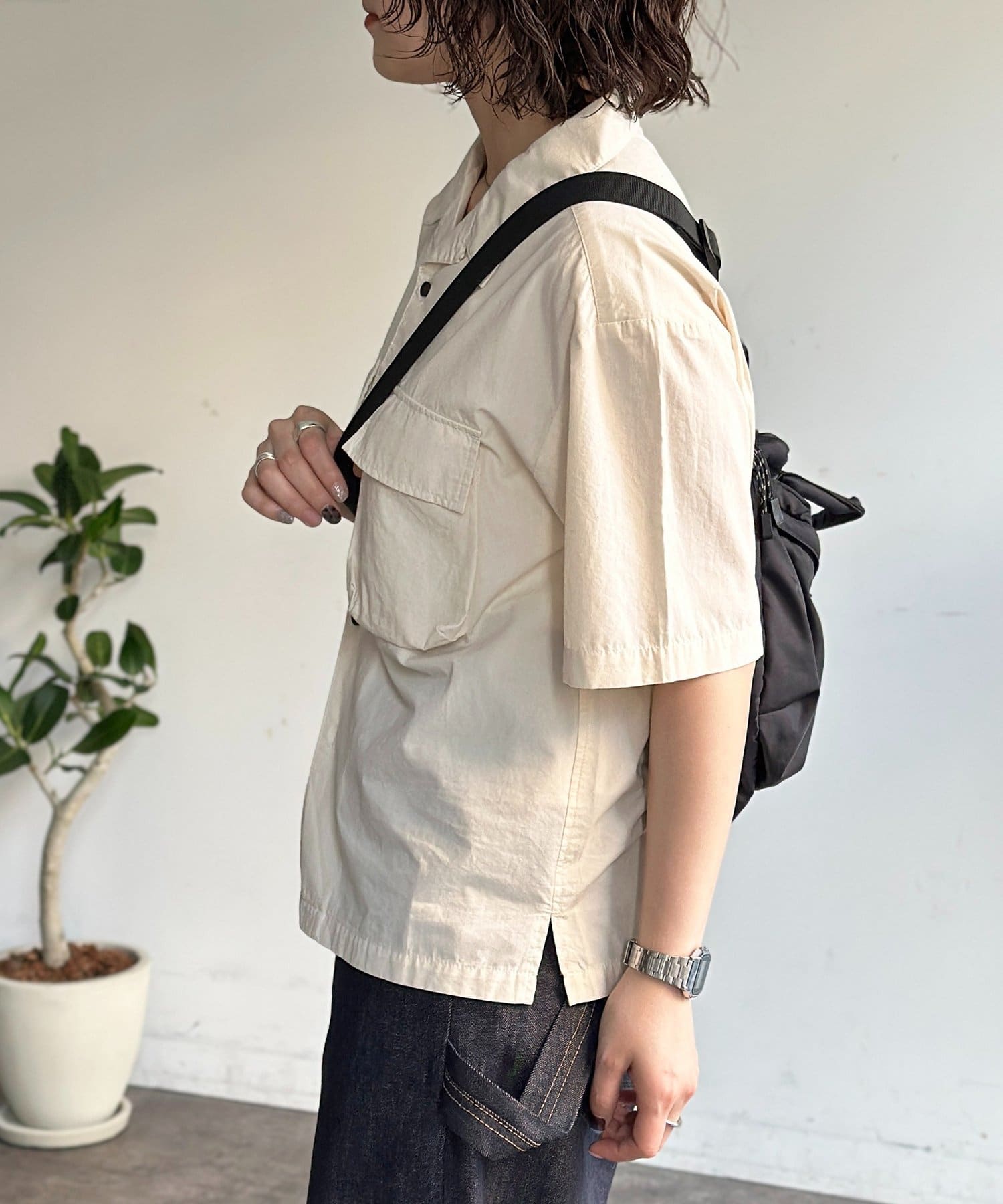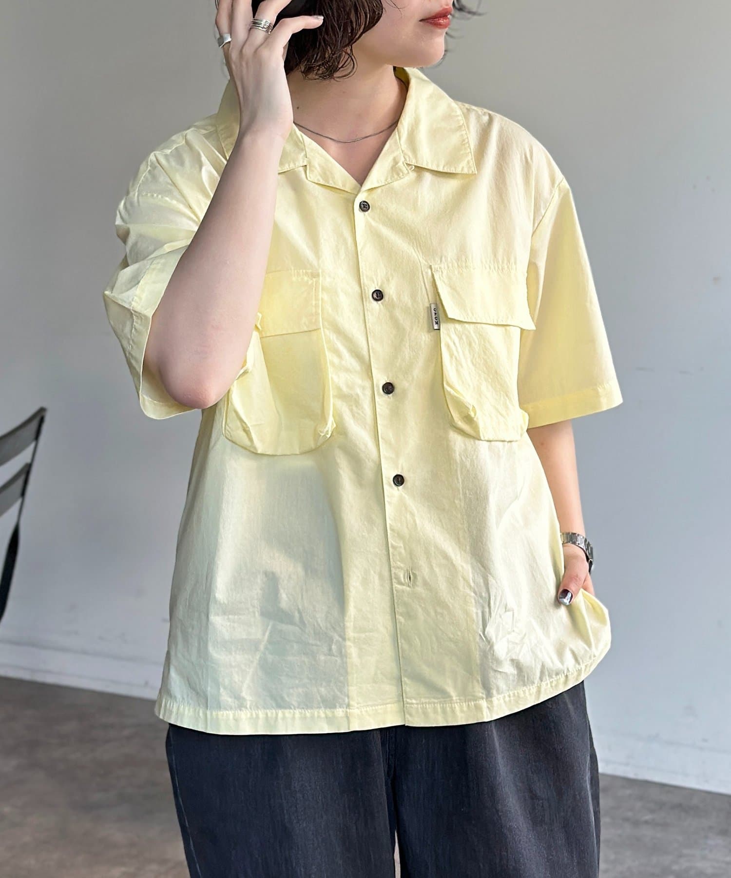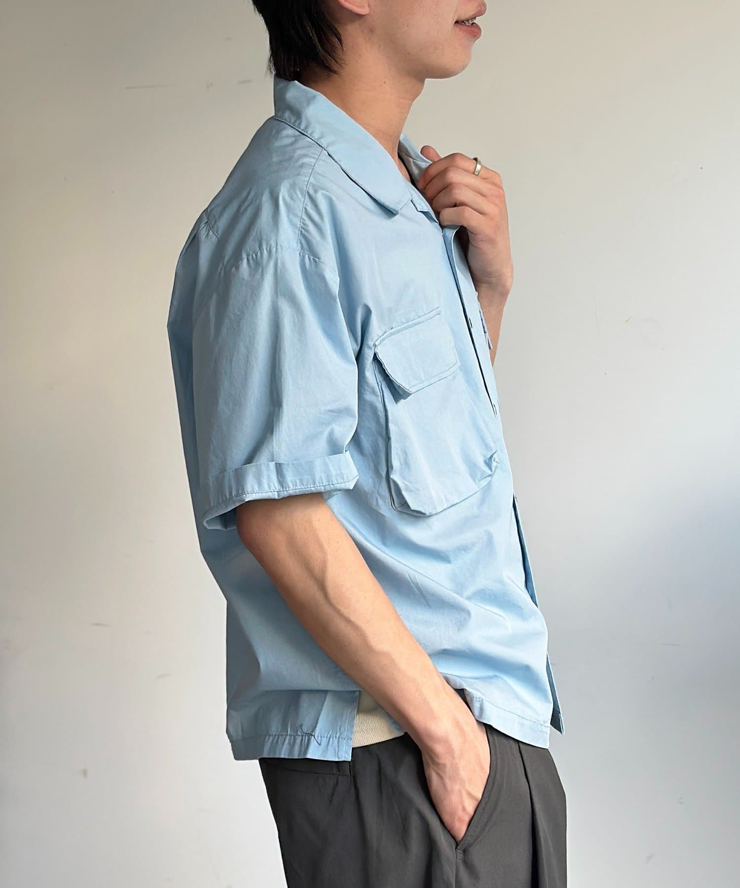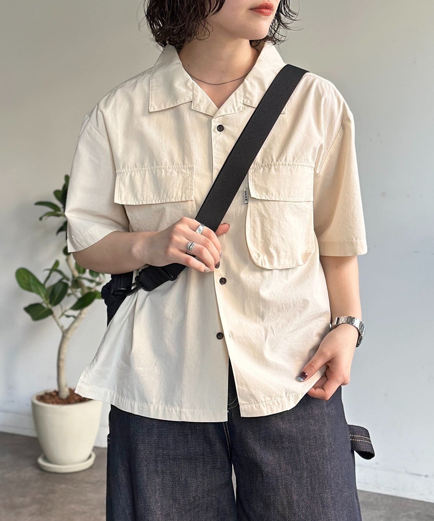 旬のクロップド丈で魅せる、ユニセックス開襟シャツ