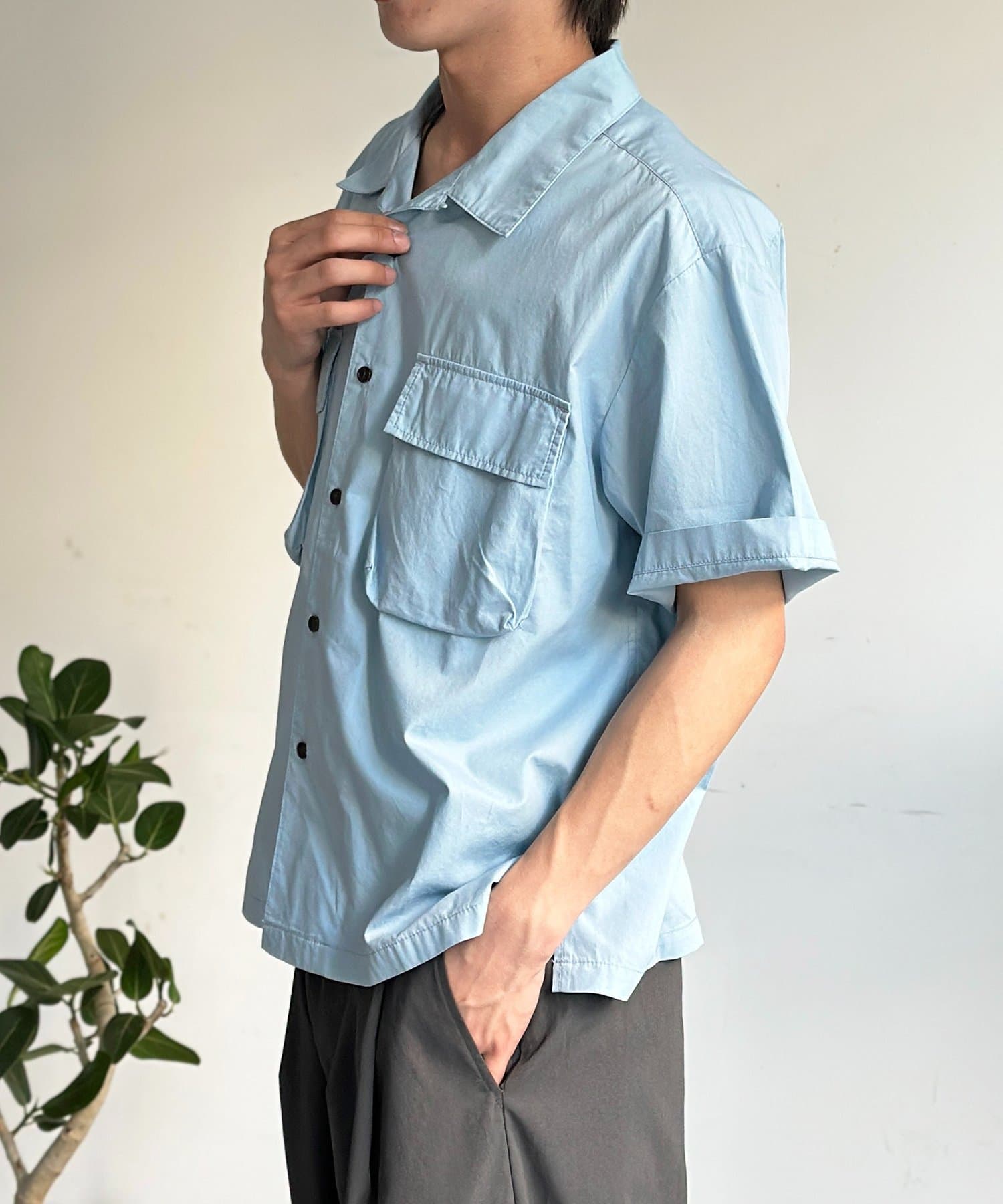 CPCM(シーピーシーエム) クロップドブロード開襟シャツ