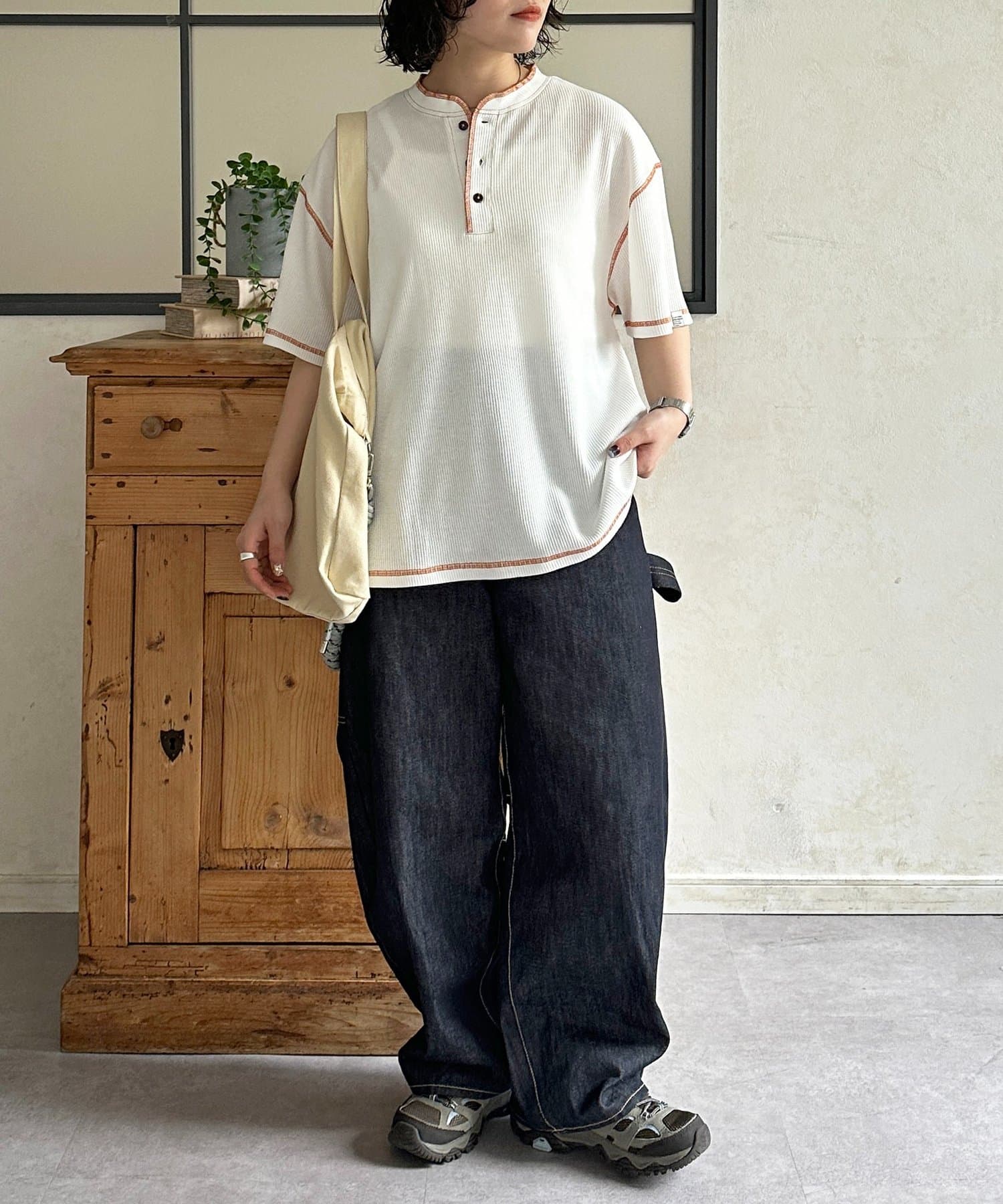 ゆったりとしたシルエットは体型を拾わず、ジェンダーレスで楽しめる一着です◎