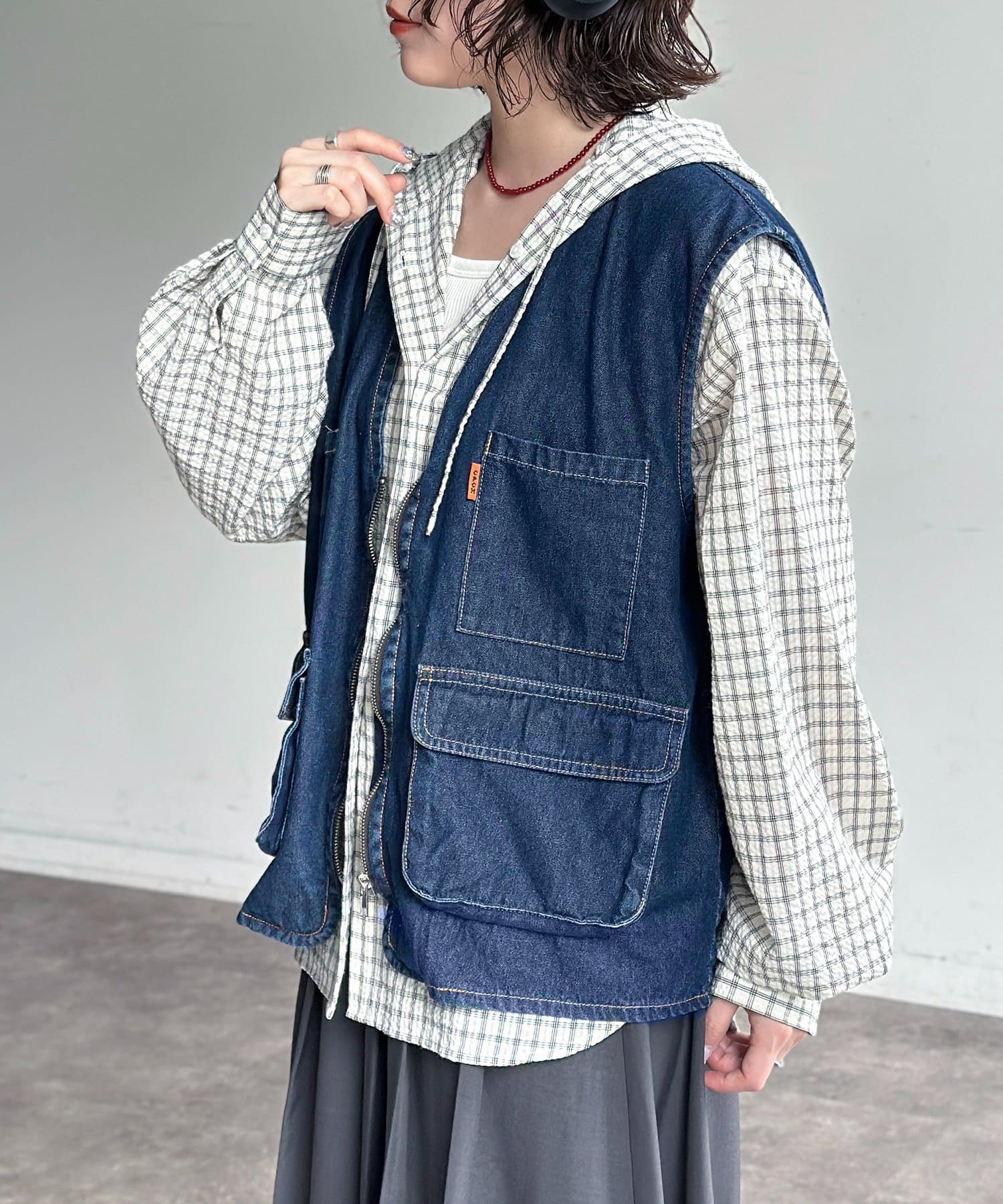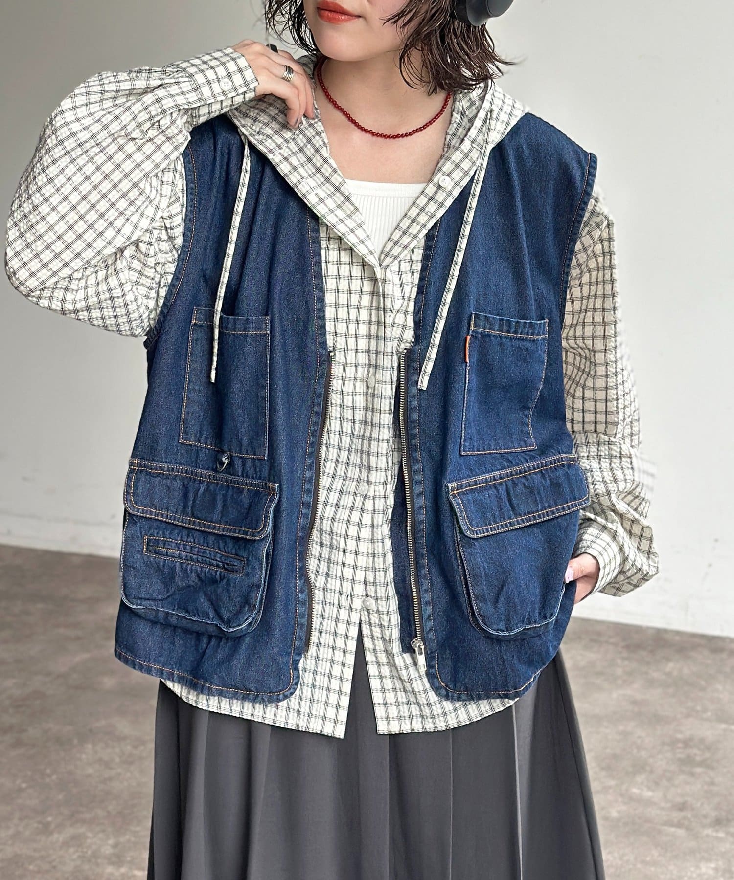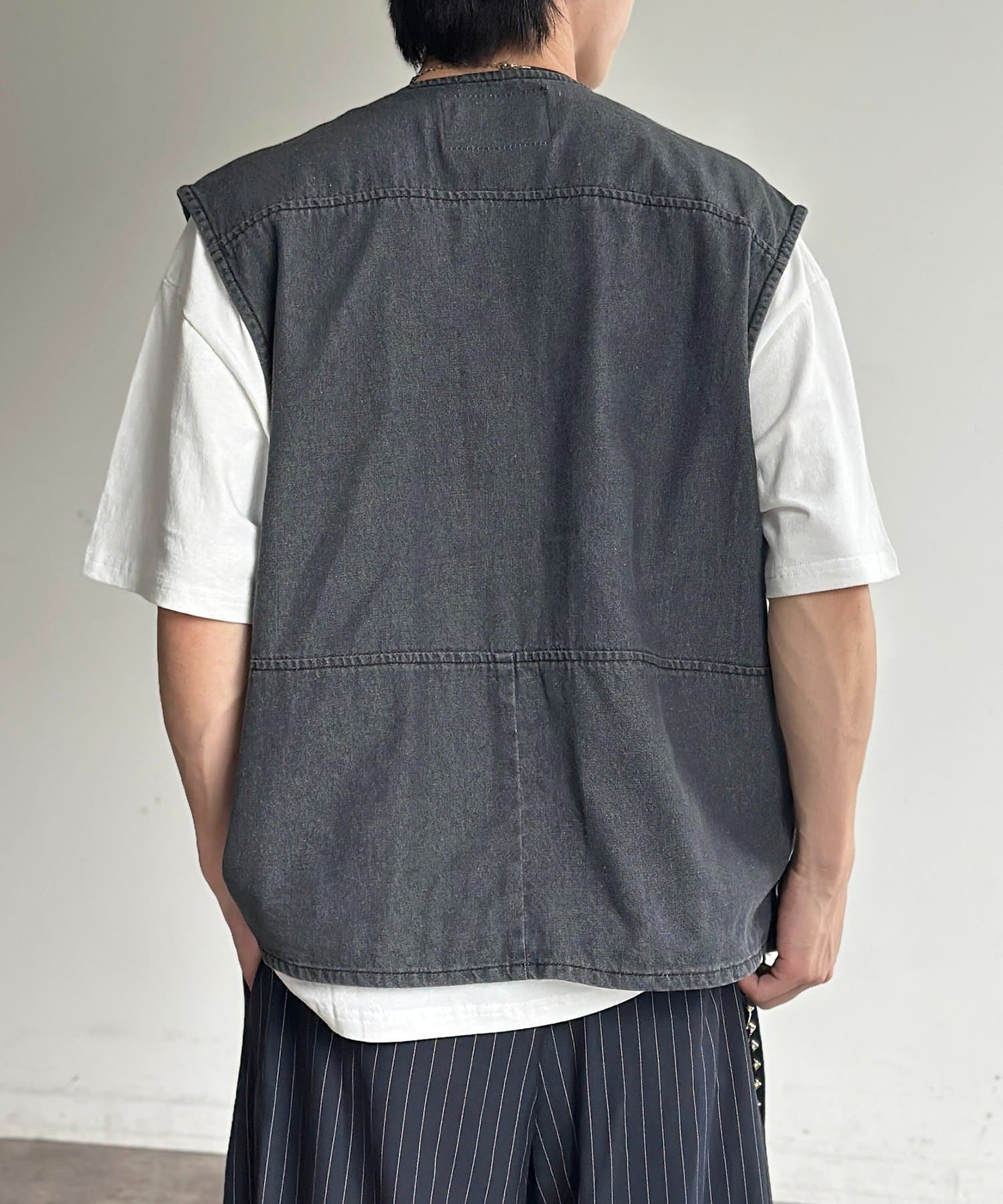 重ねるだけで旬顔に!こなれ感漂うデニムフィッシングベスト