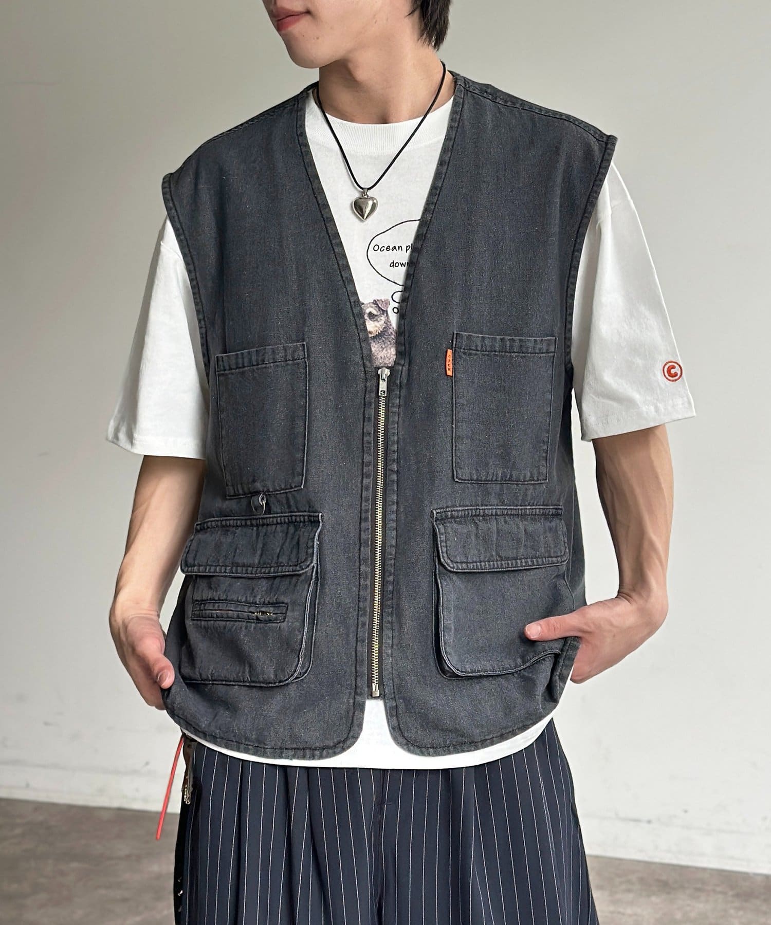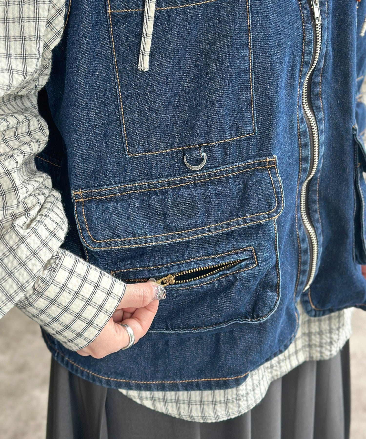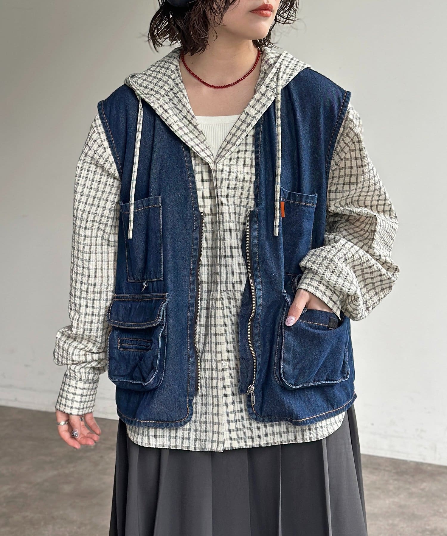 重ねるだけで旬顔に!こなれ感漂うデニムフィッシングベスト