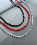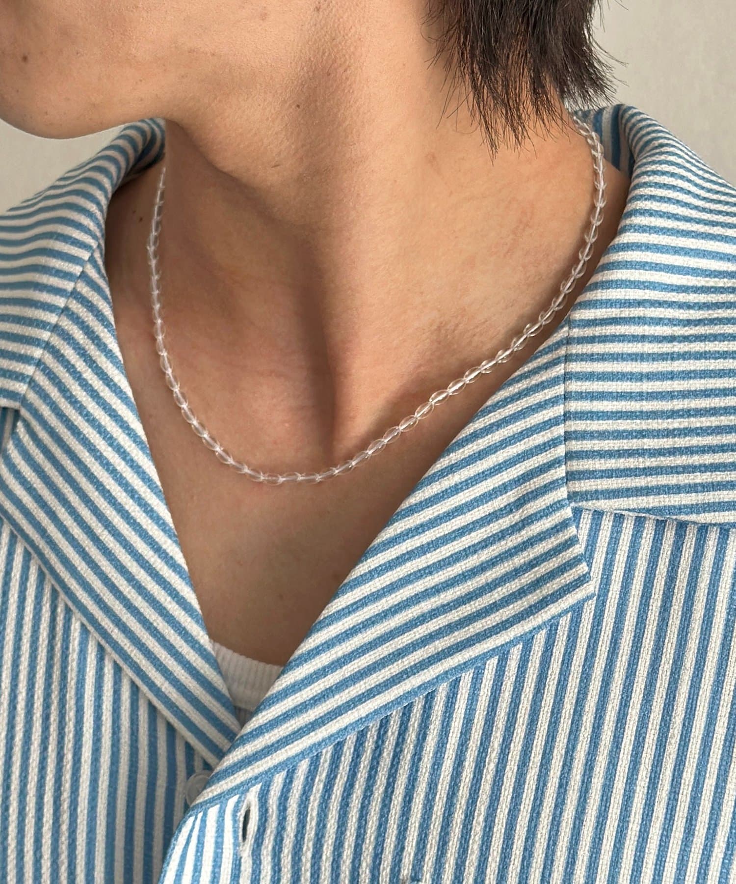シンプルながらも、程よい存在感で首元を飾るグラスビーズネックレス。