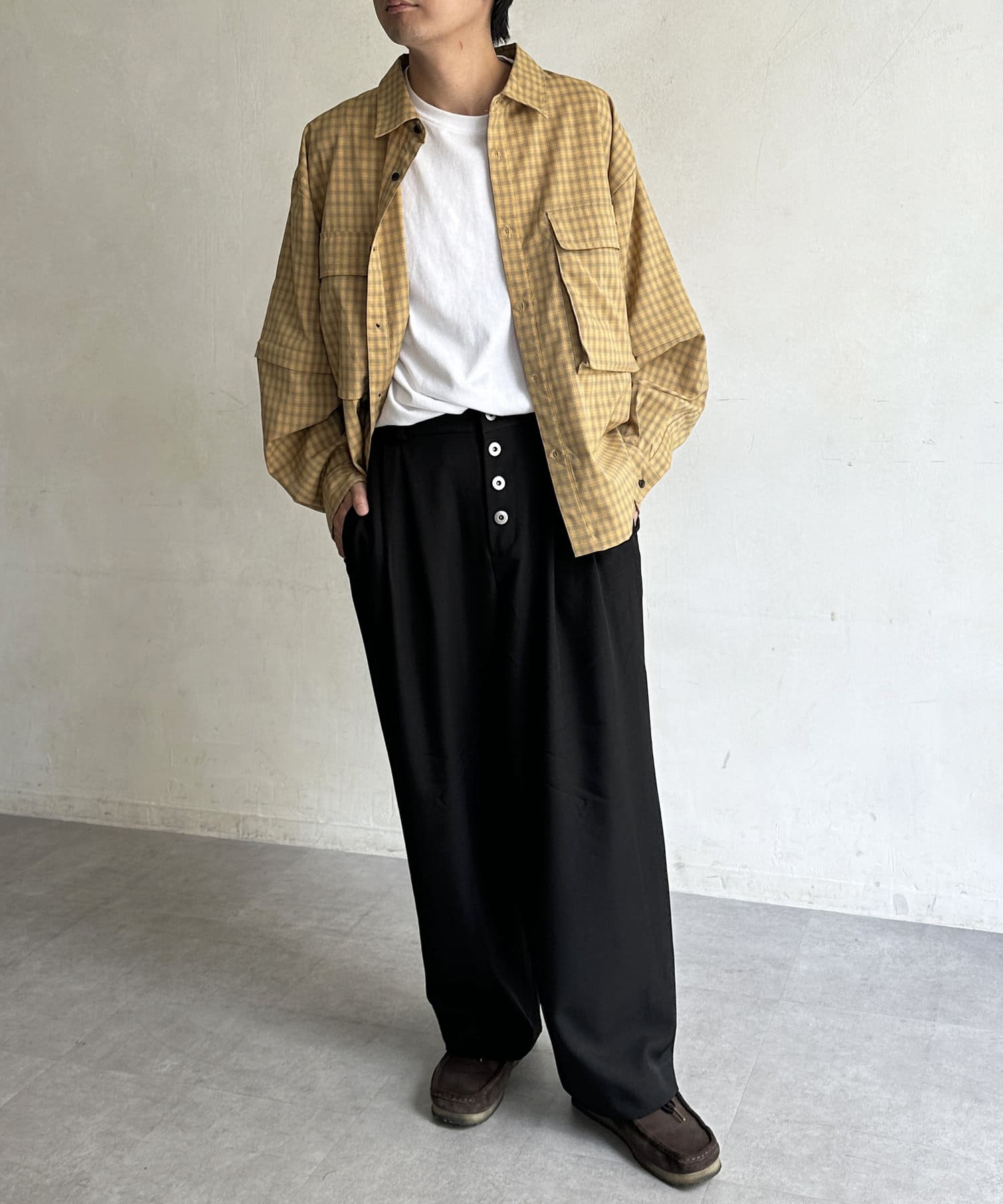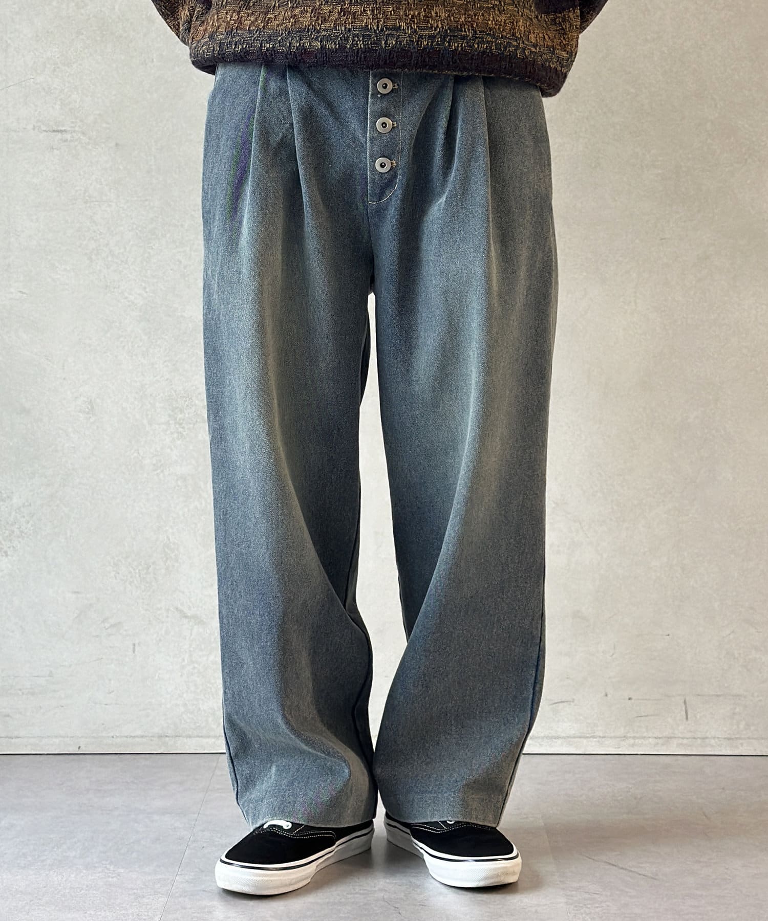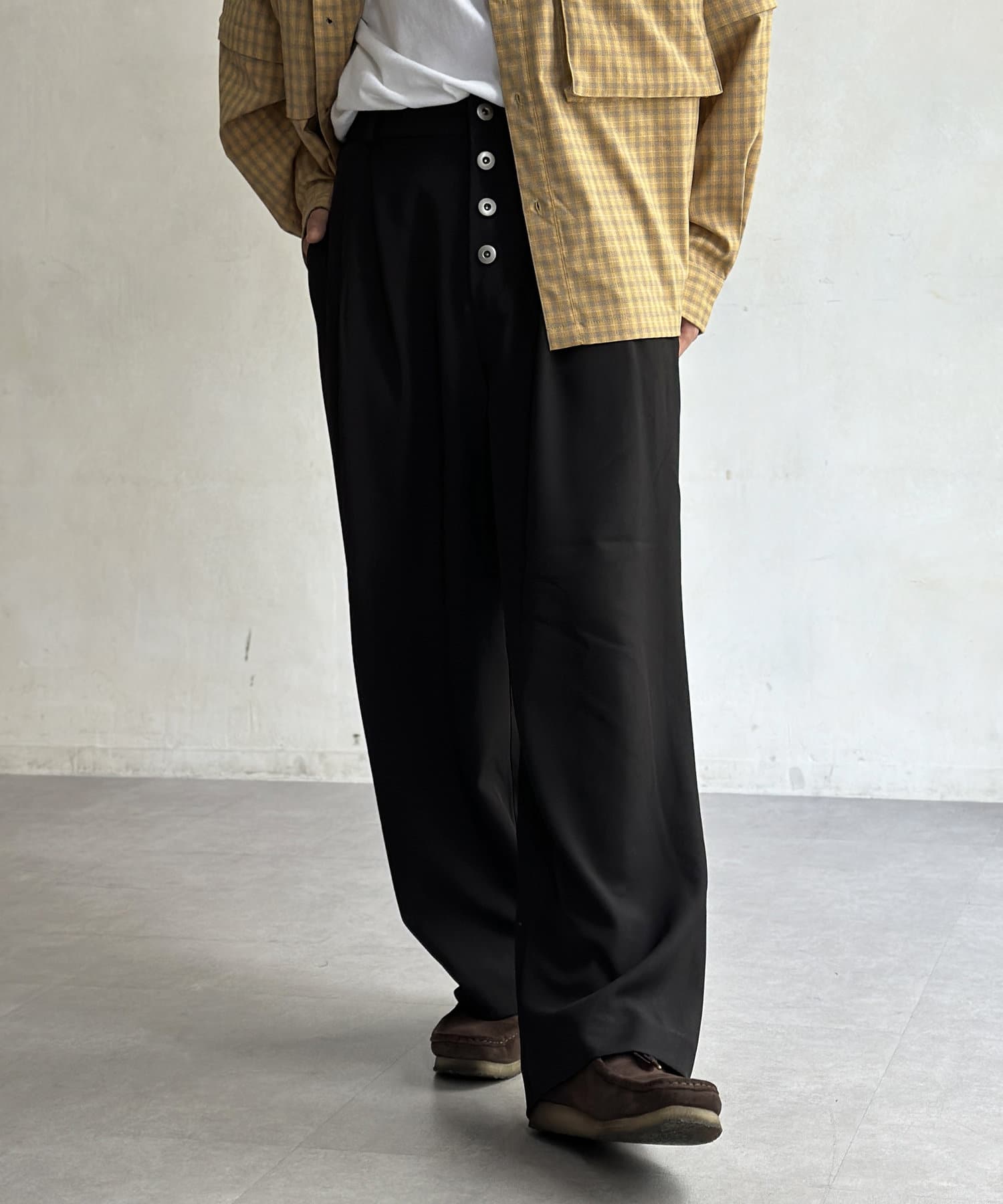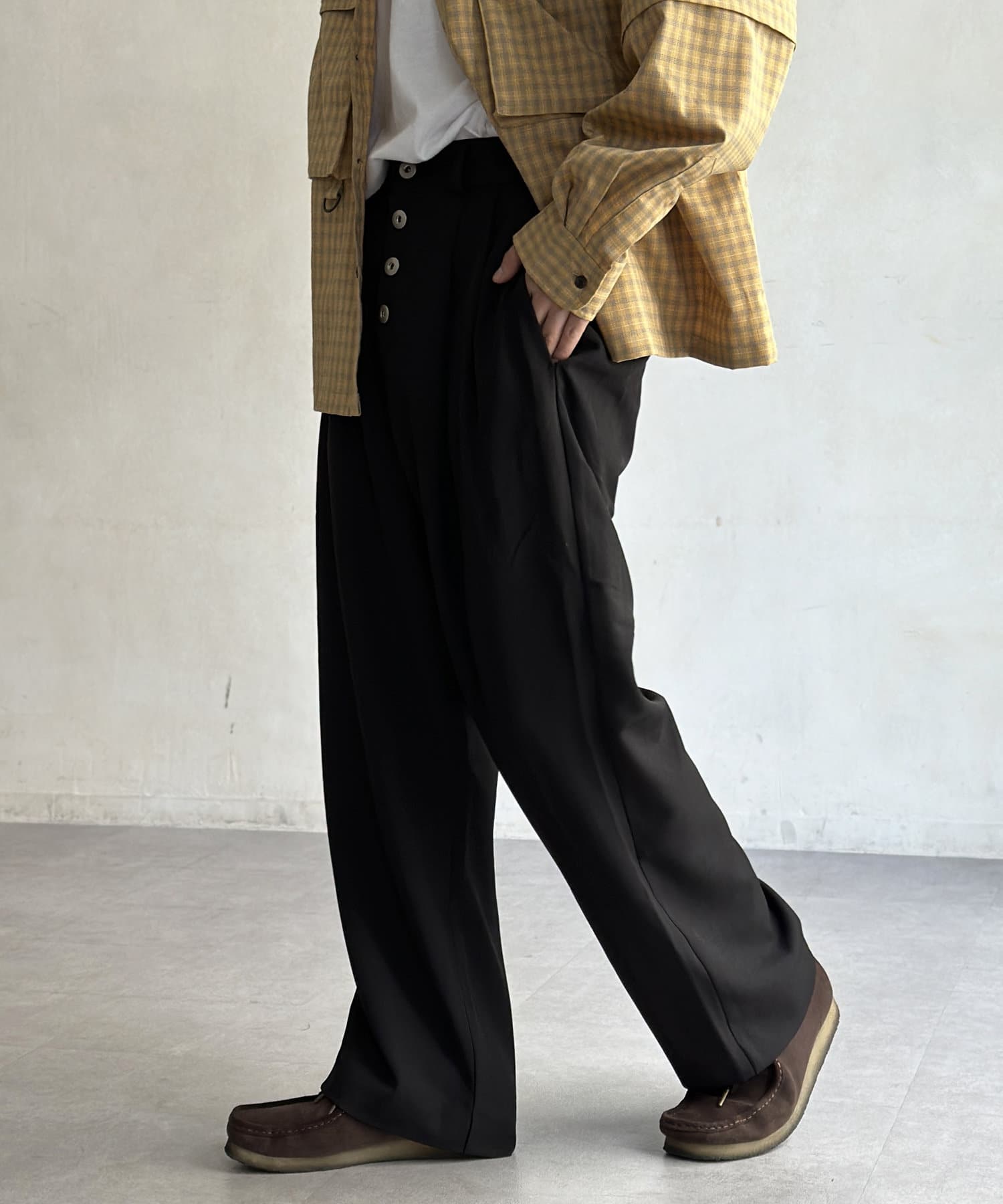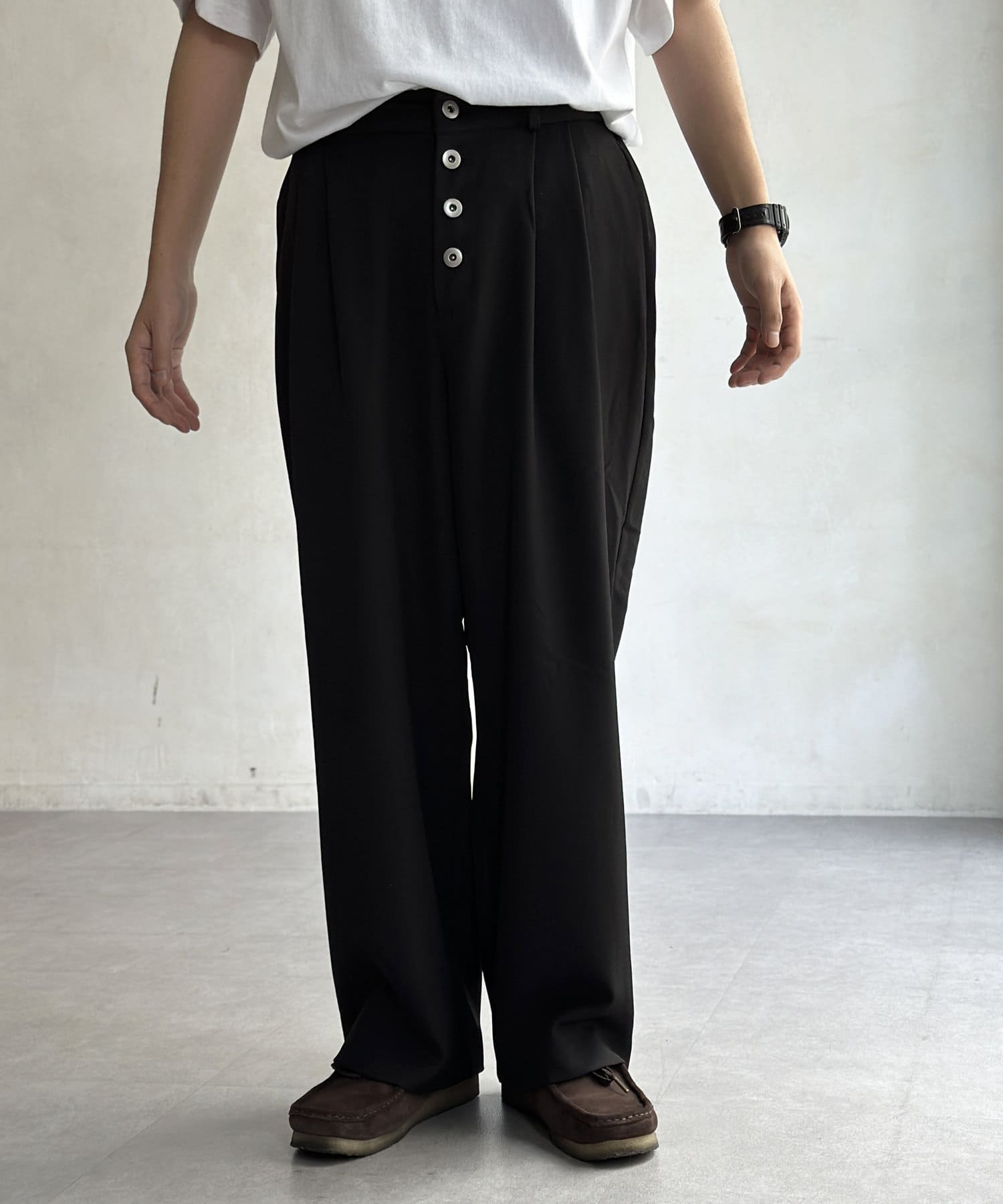 フロントボタンがアクセントの履き心地抜群なパンツ