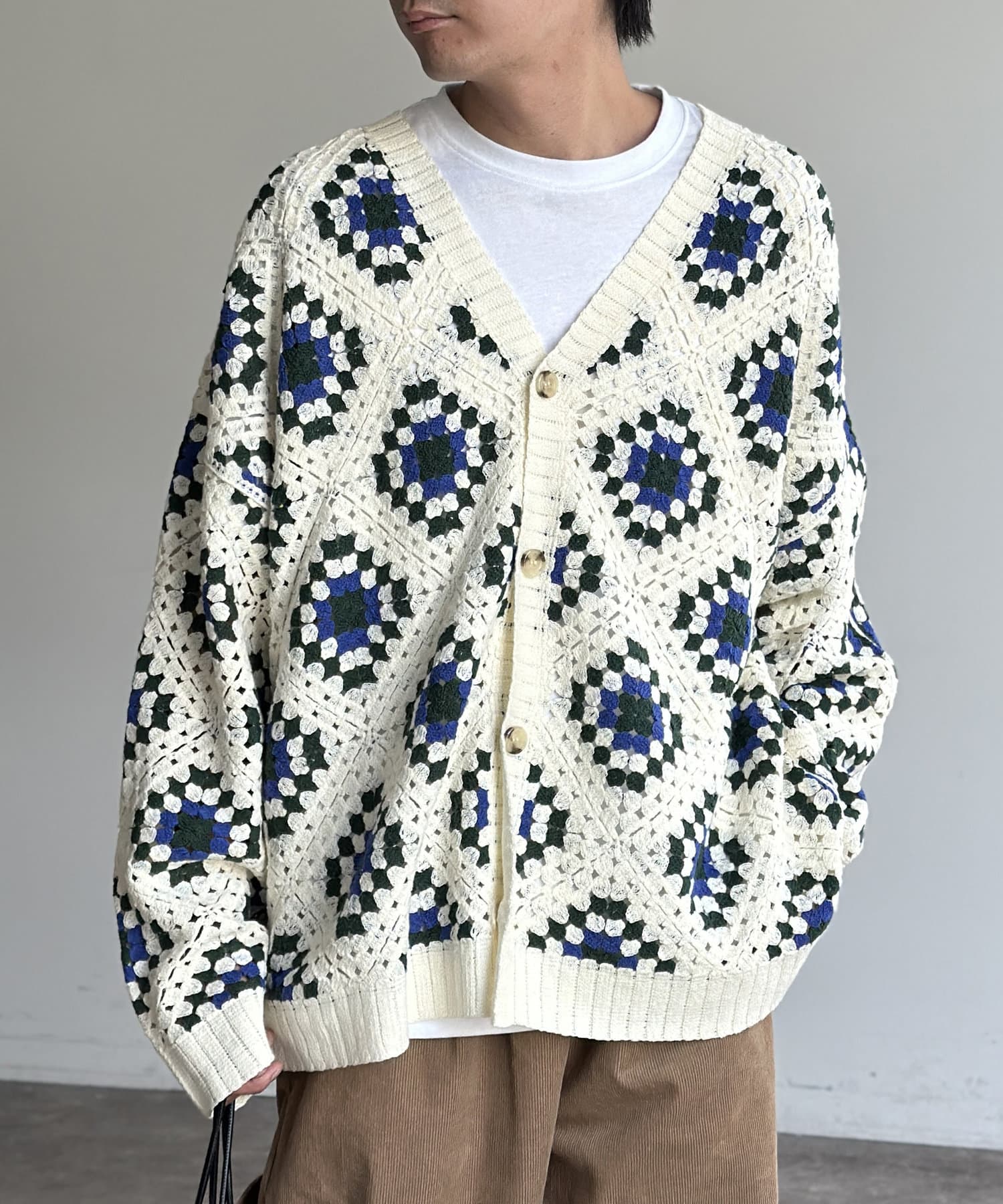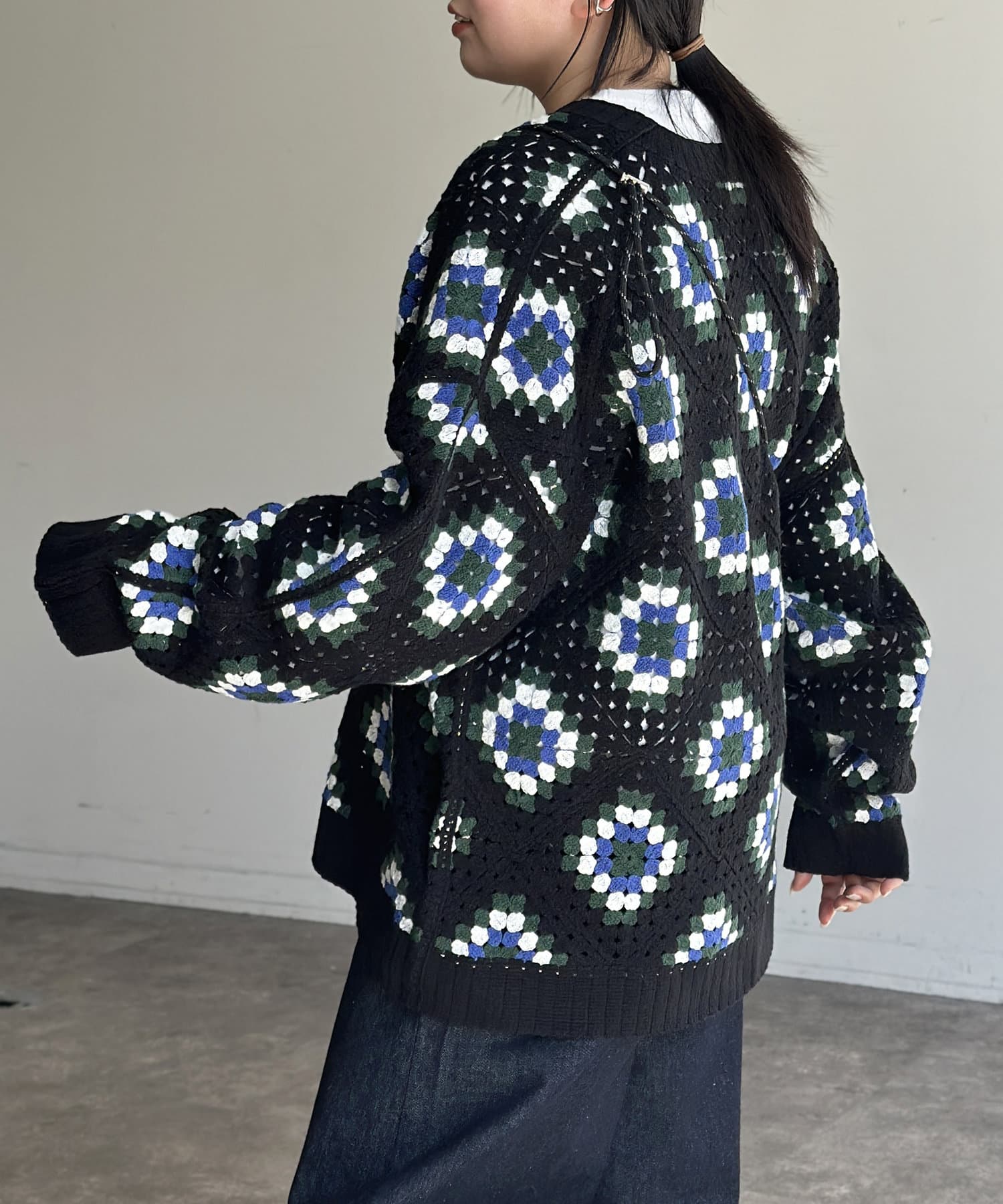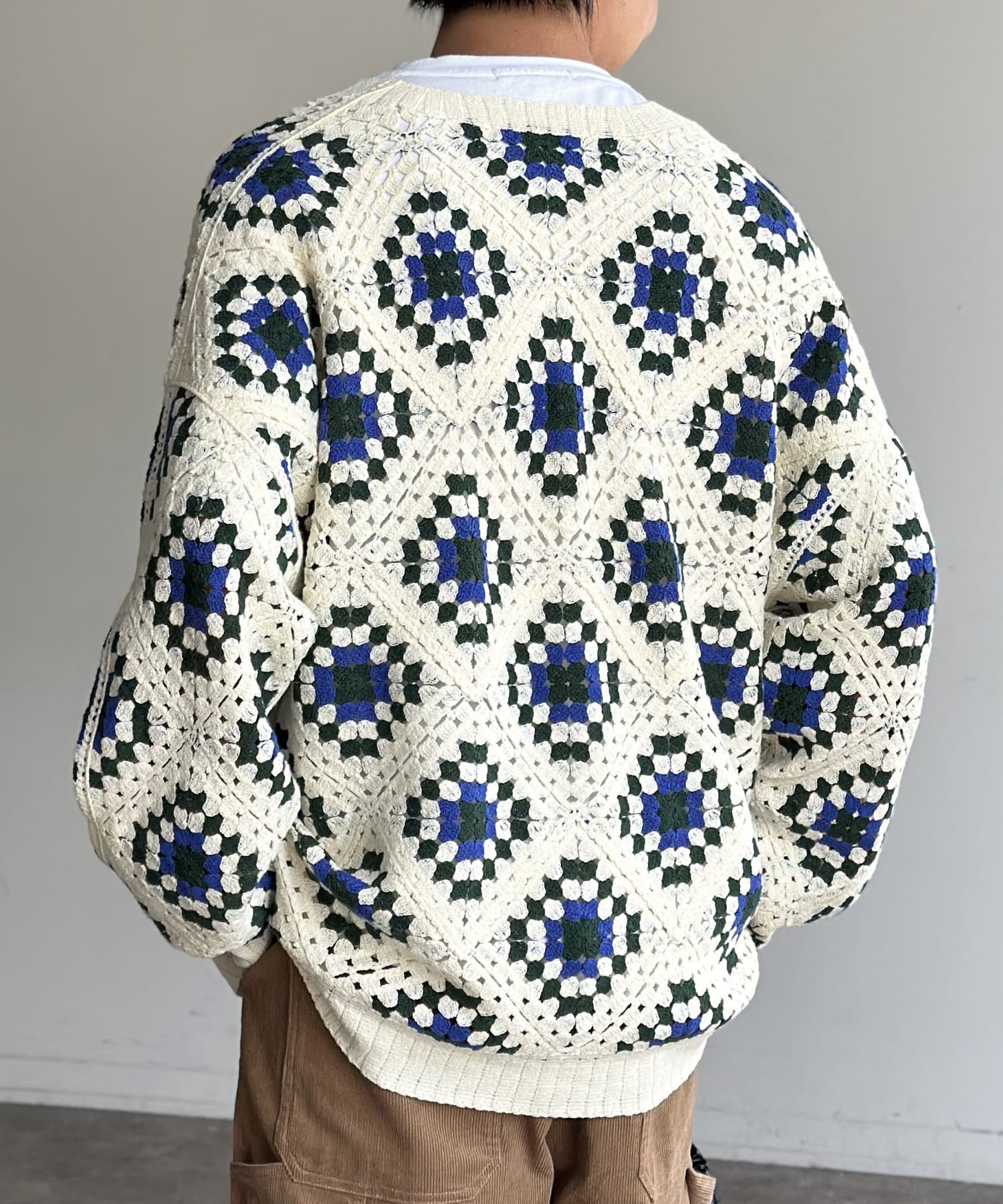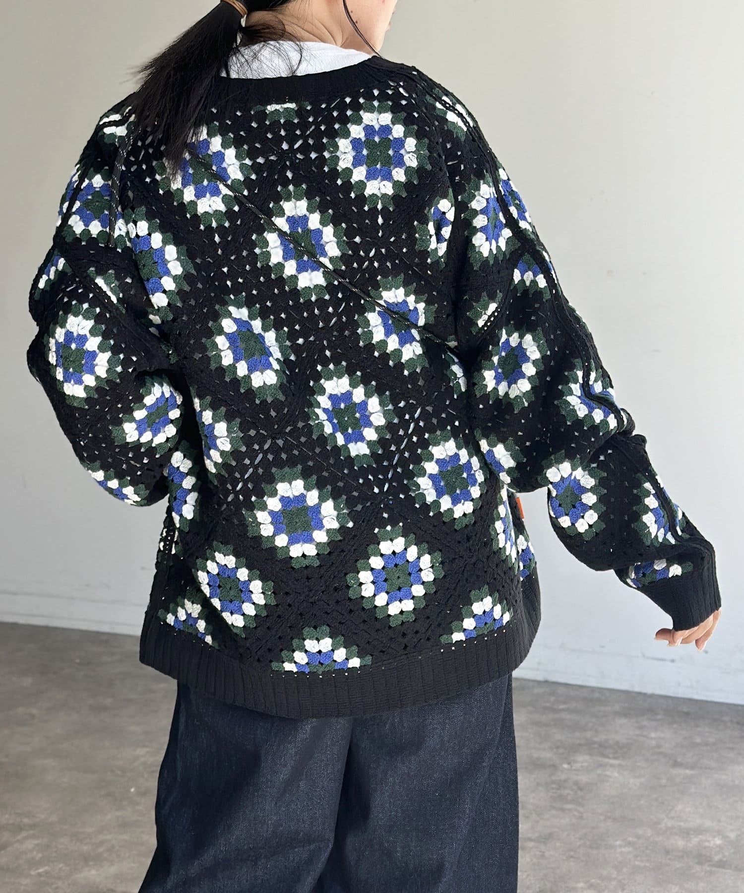 #クロシェ#カーディガン#総柄