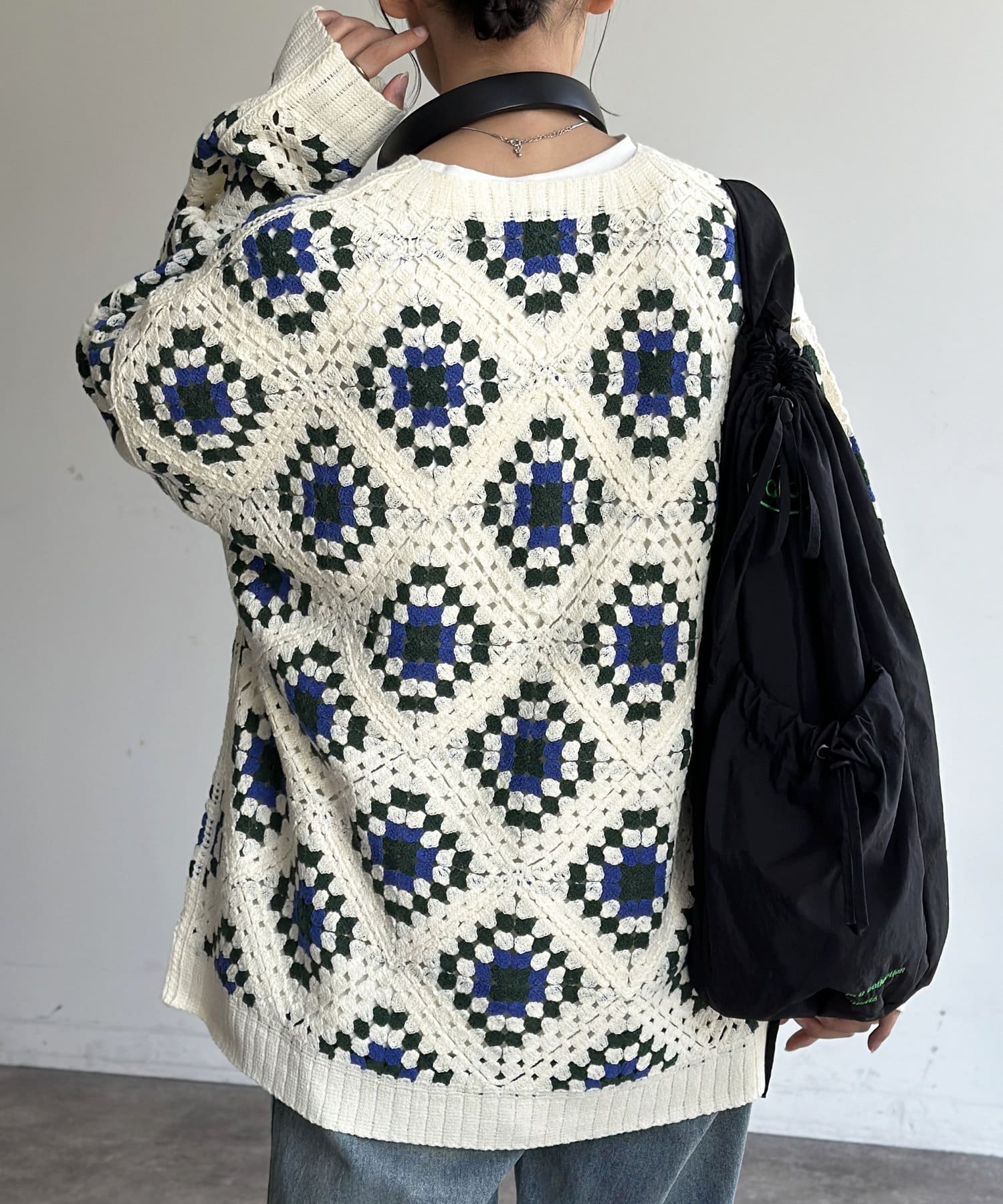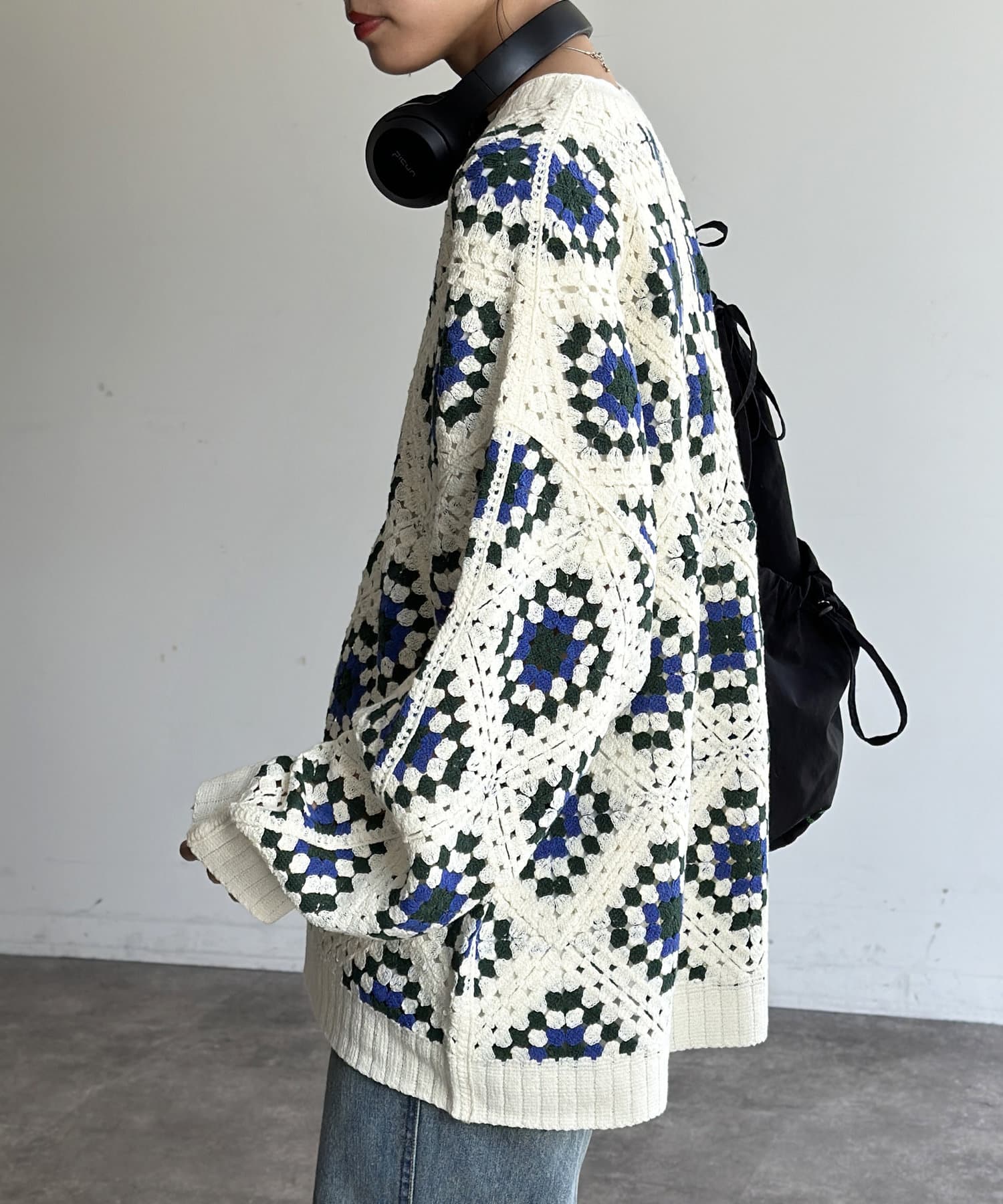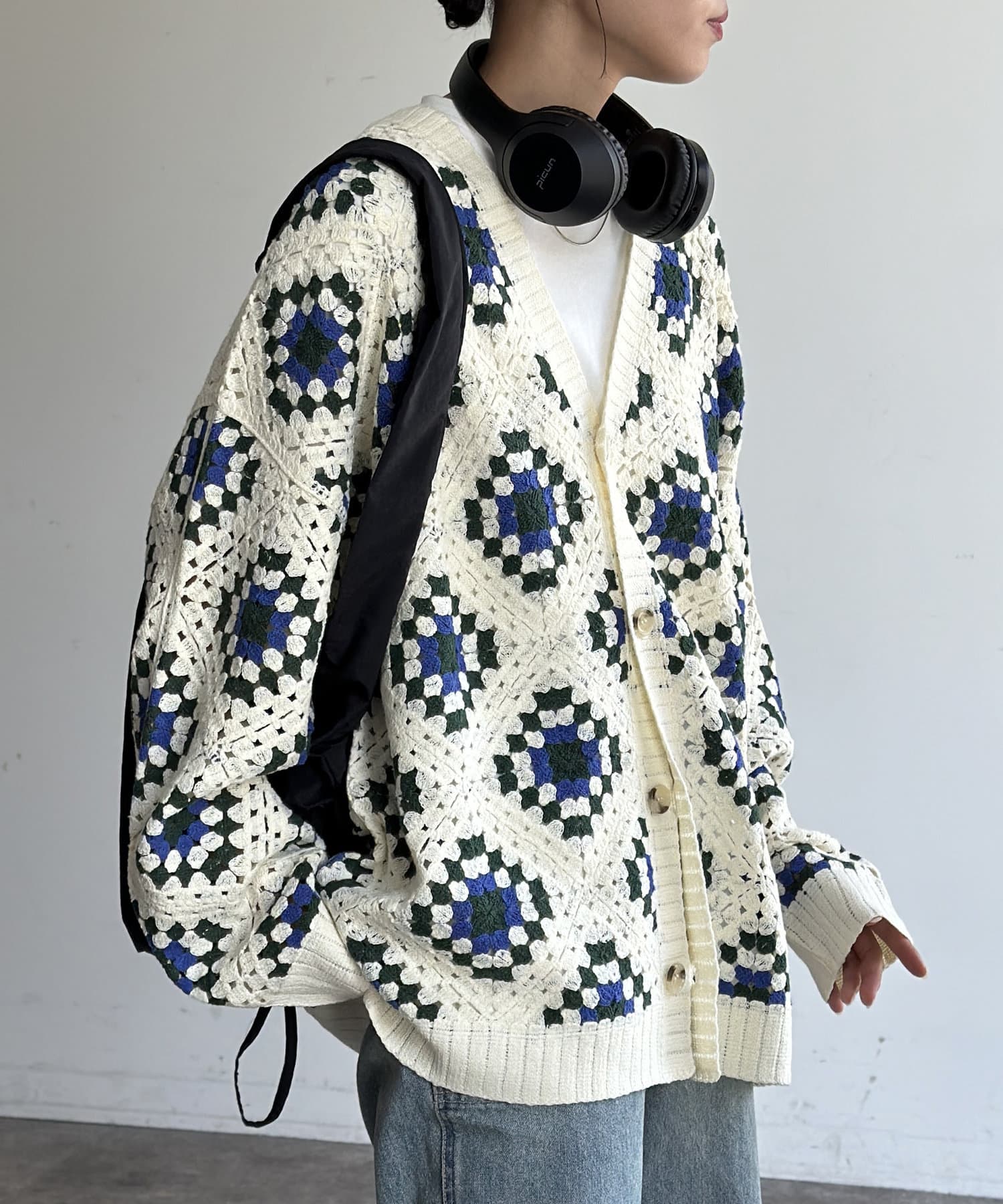 #クロシェ#カーディガン#総柄