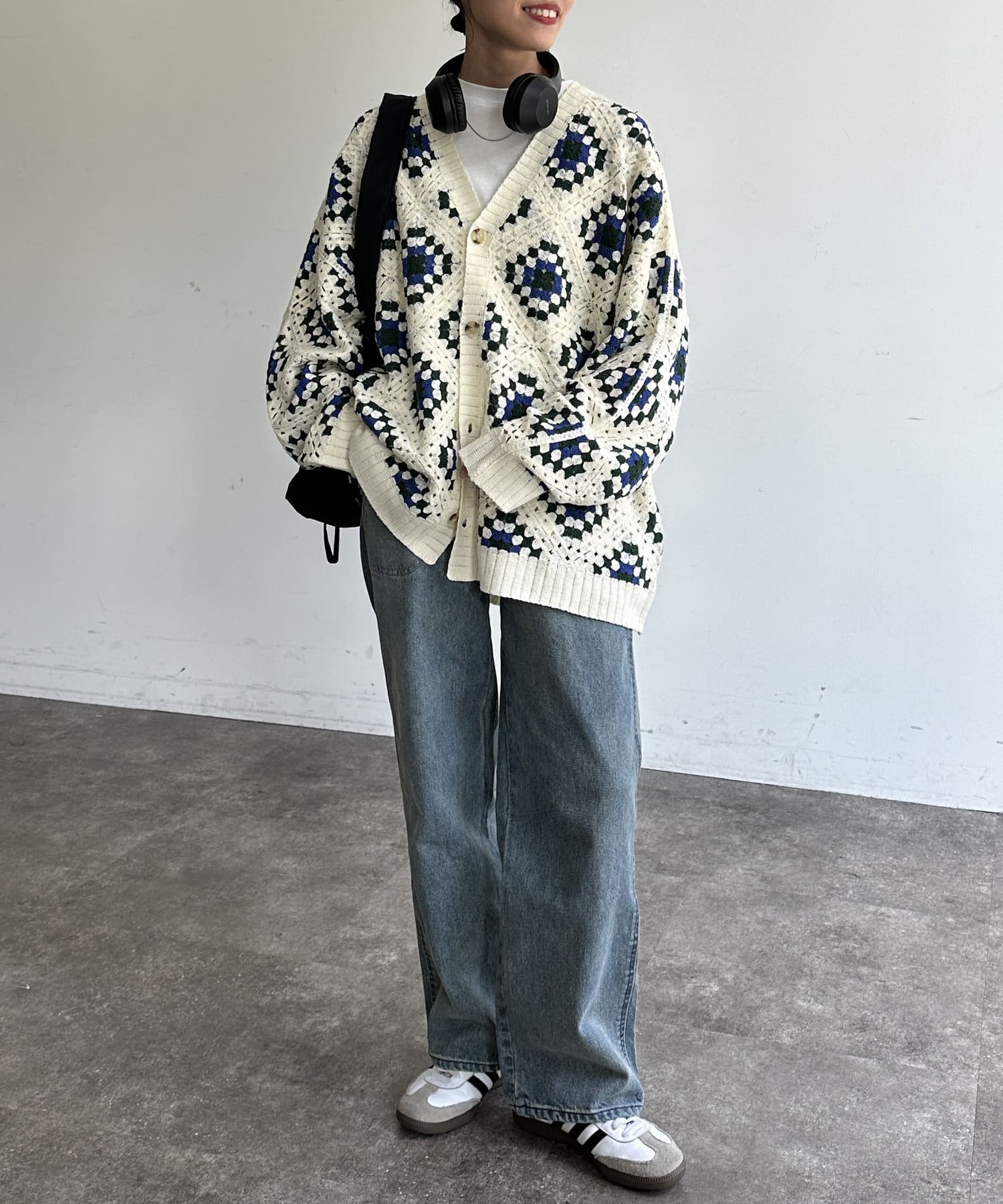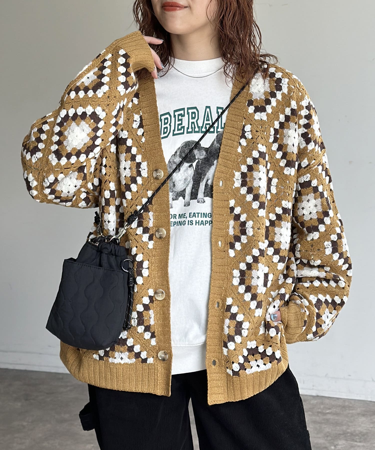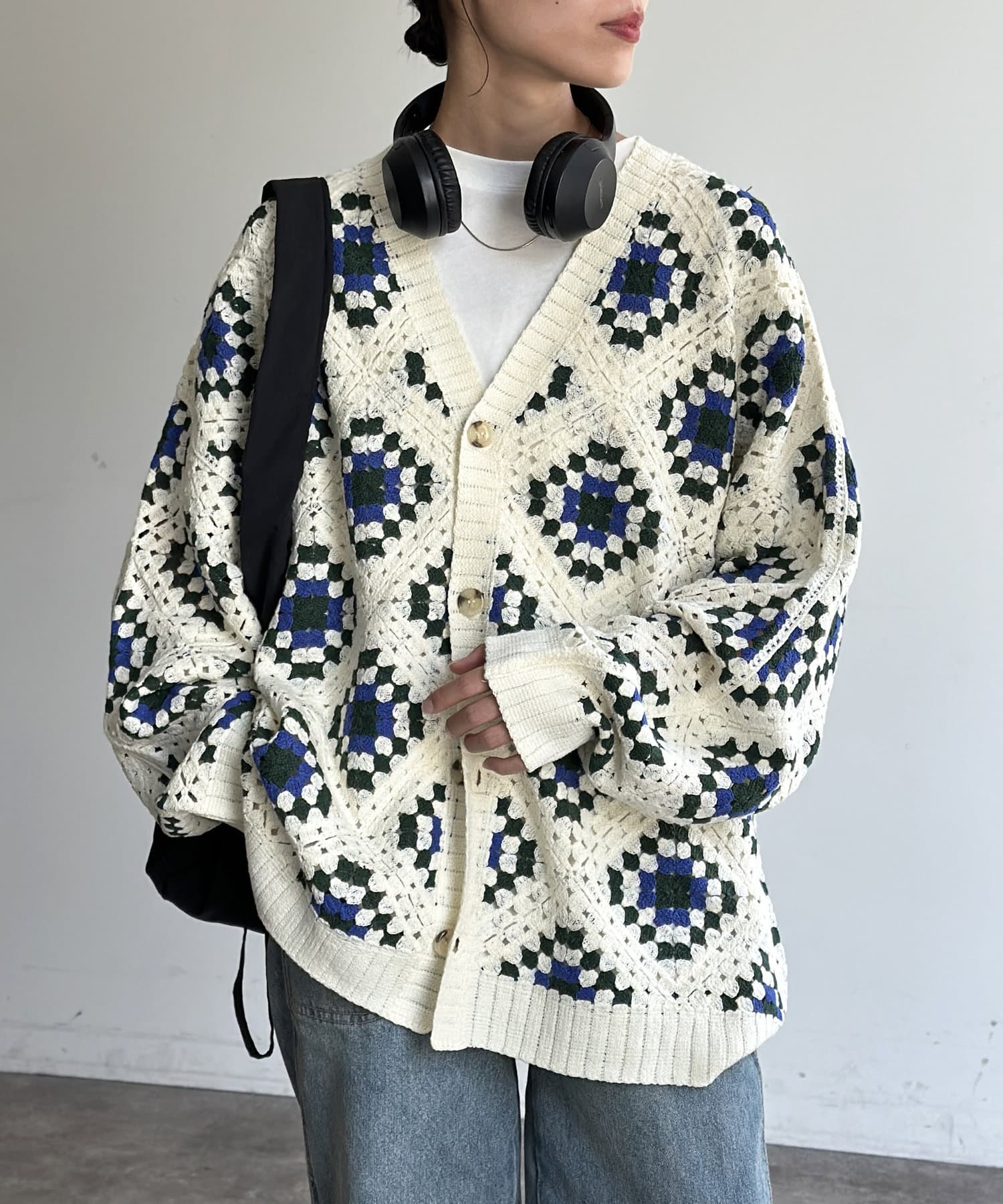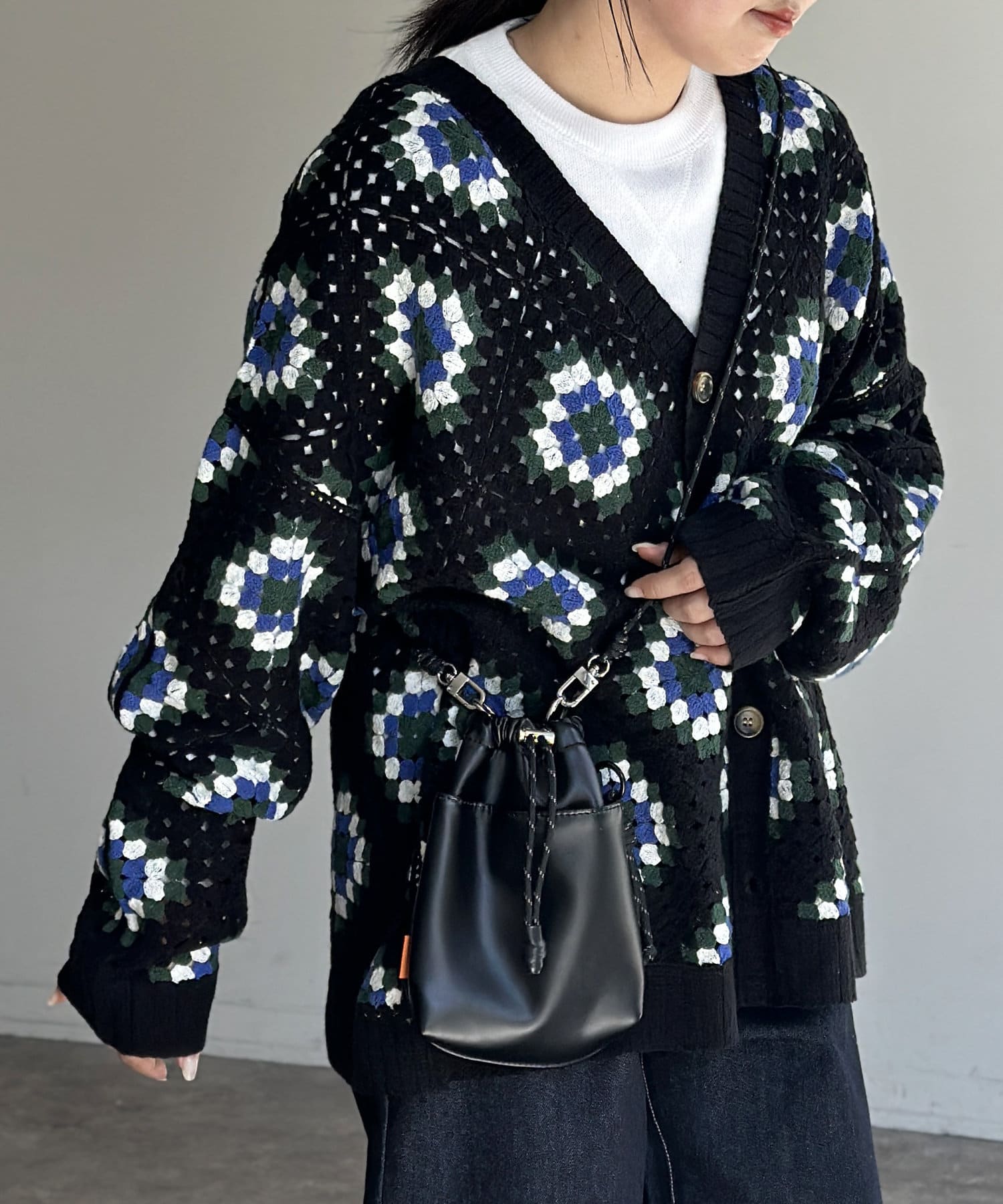 #クロシェ#カーディガン#総柄