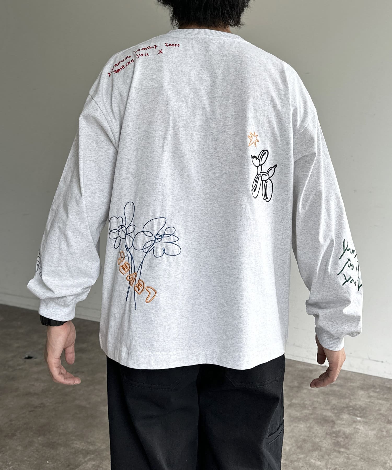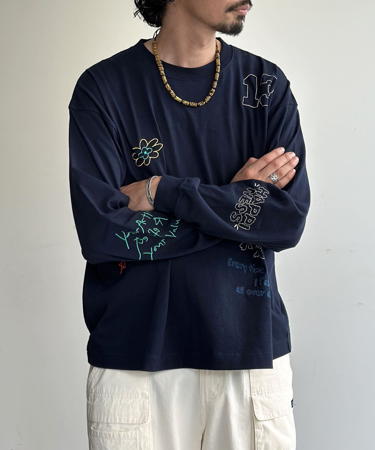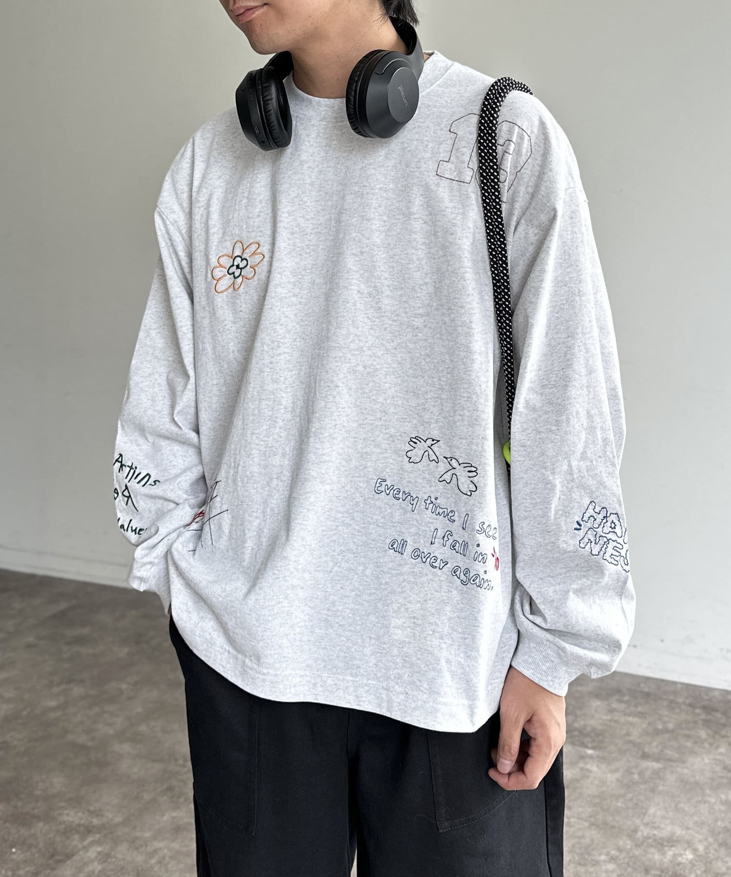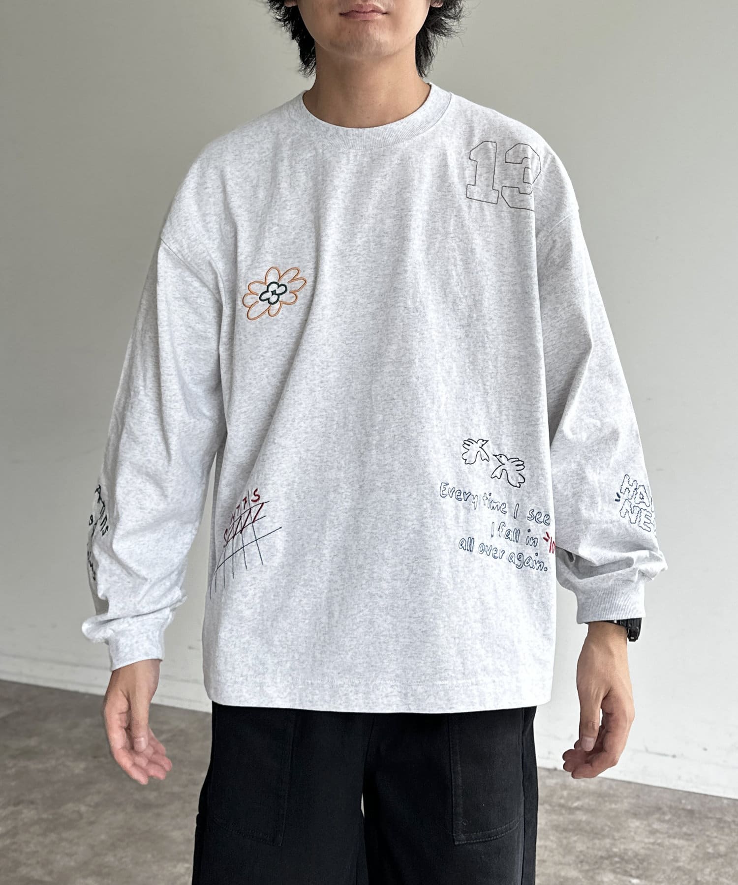 #ラクガキ#メンズライク#落書き刺繍ロンT