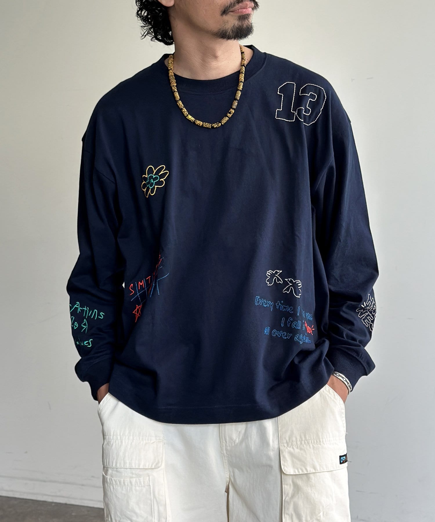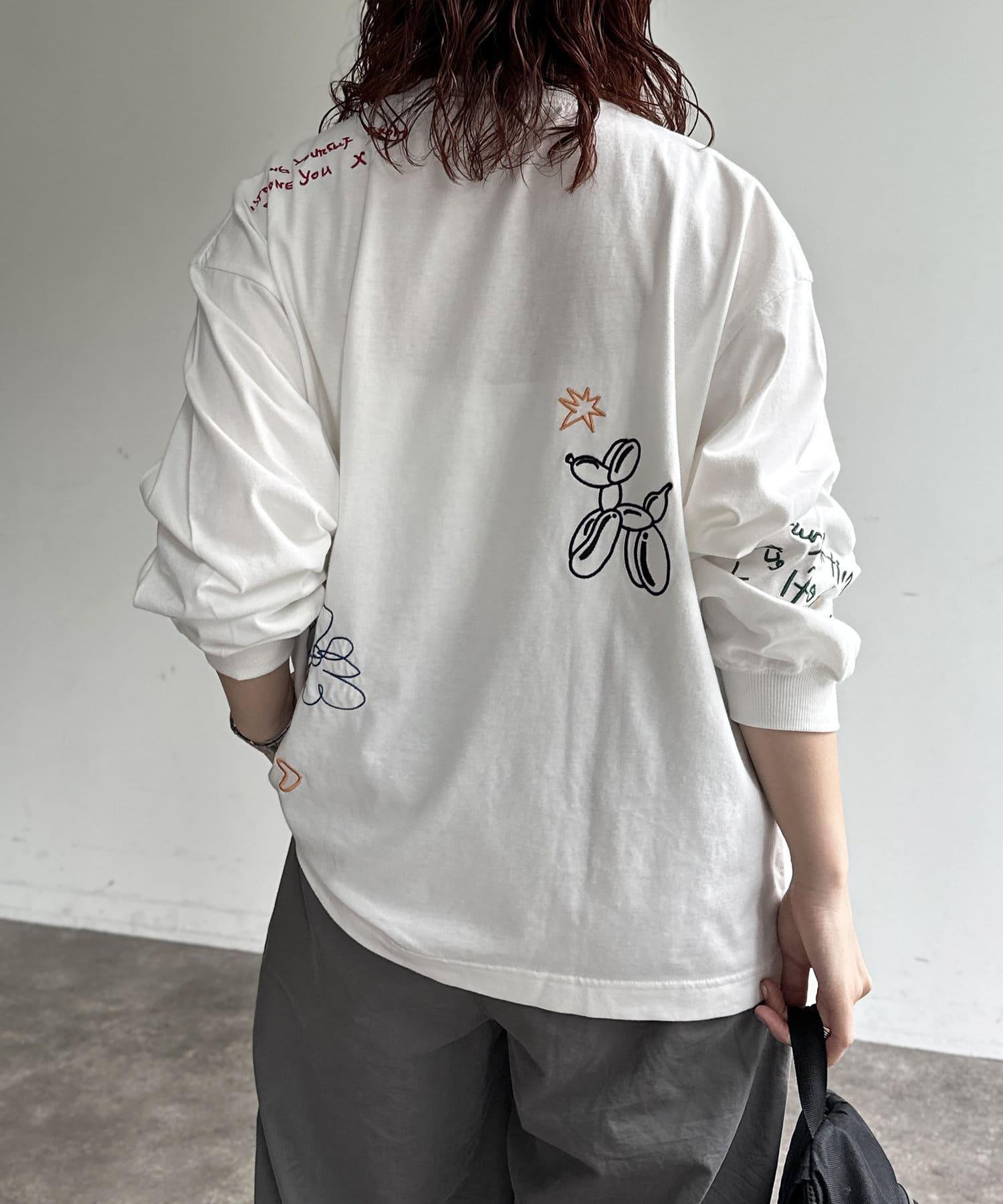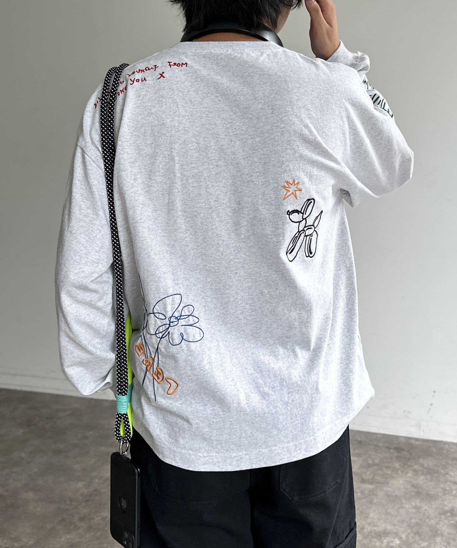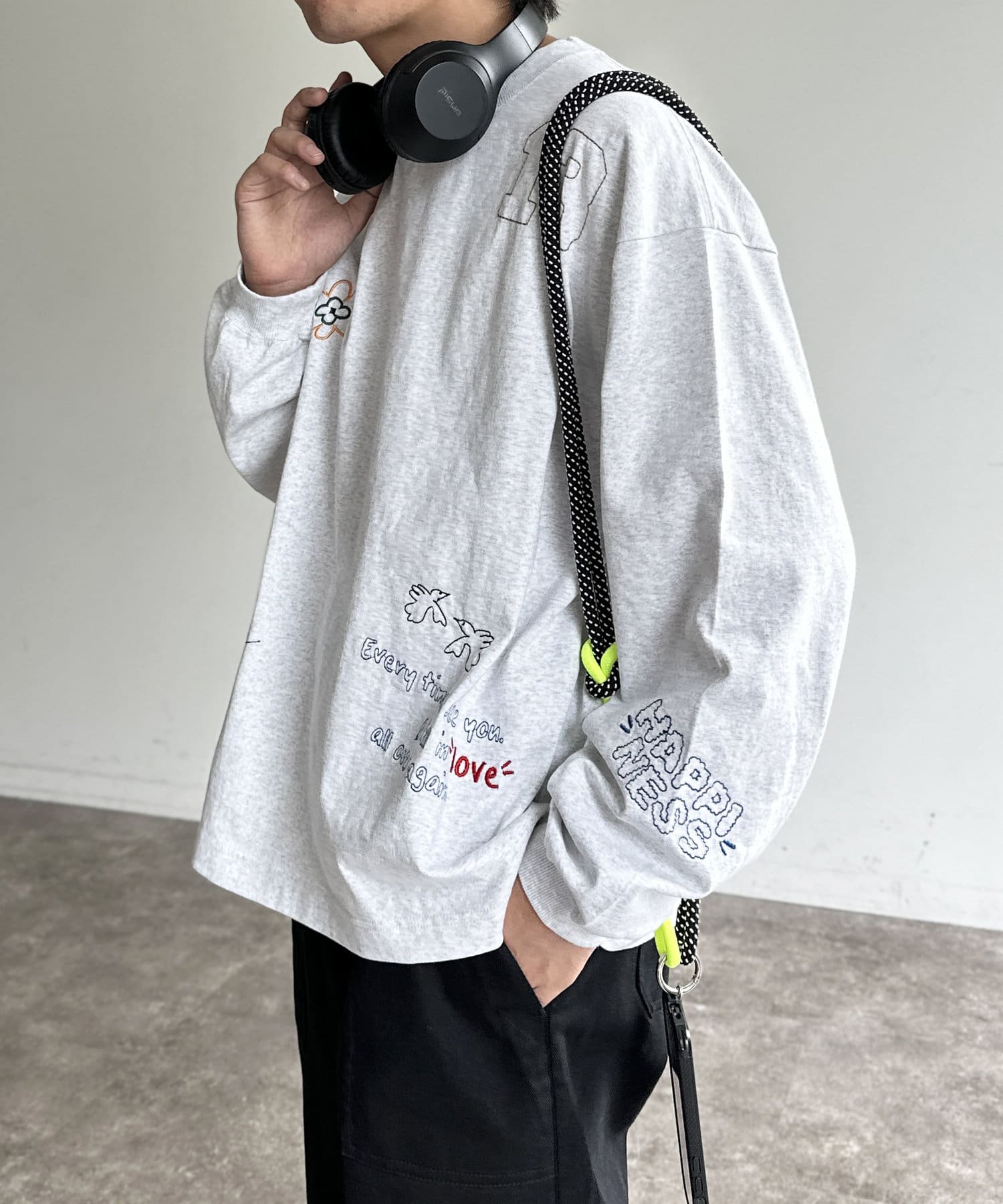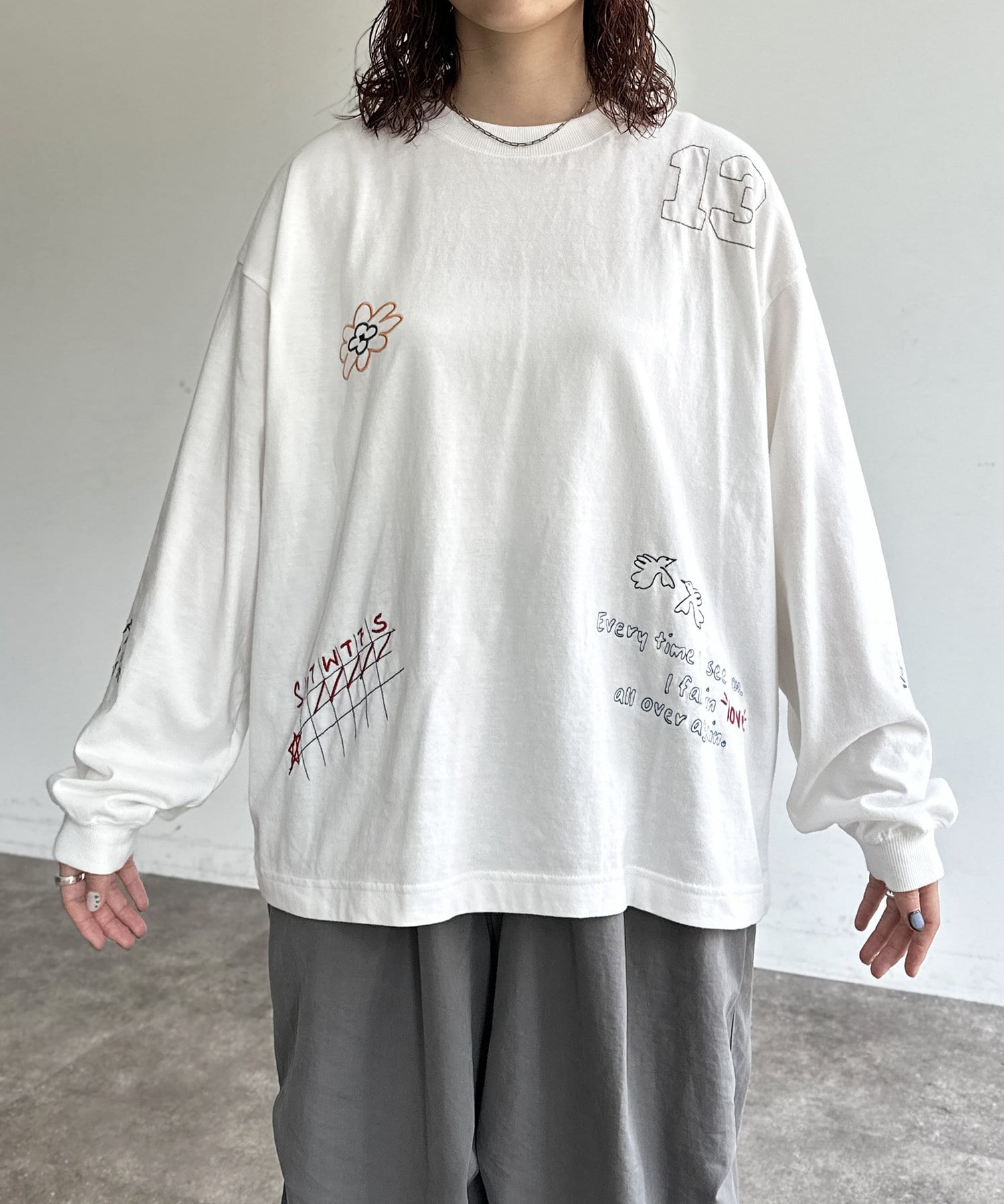 #ラクガキ#メンズライク#落書き刺繍ロンT