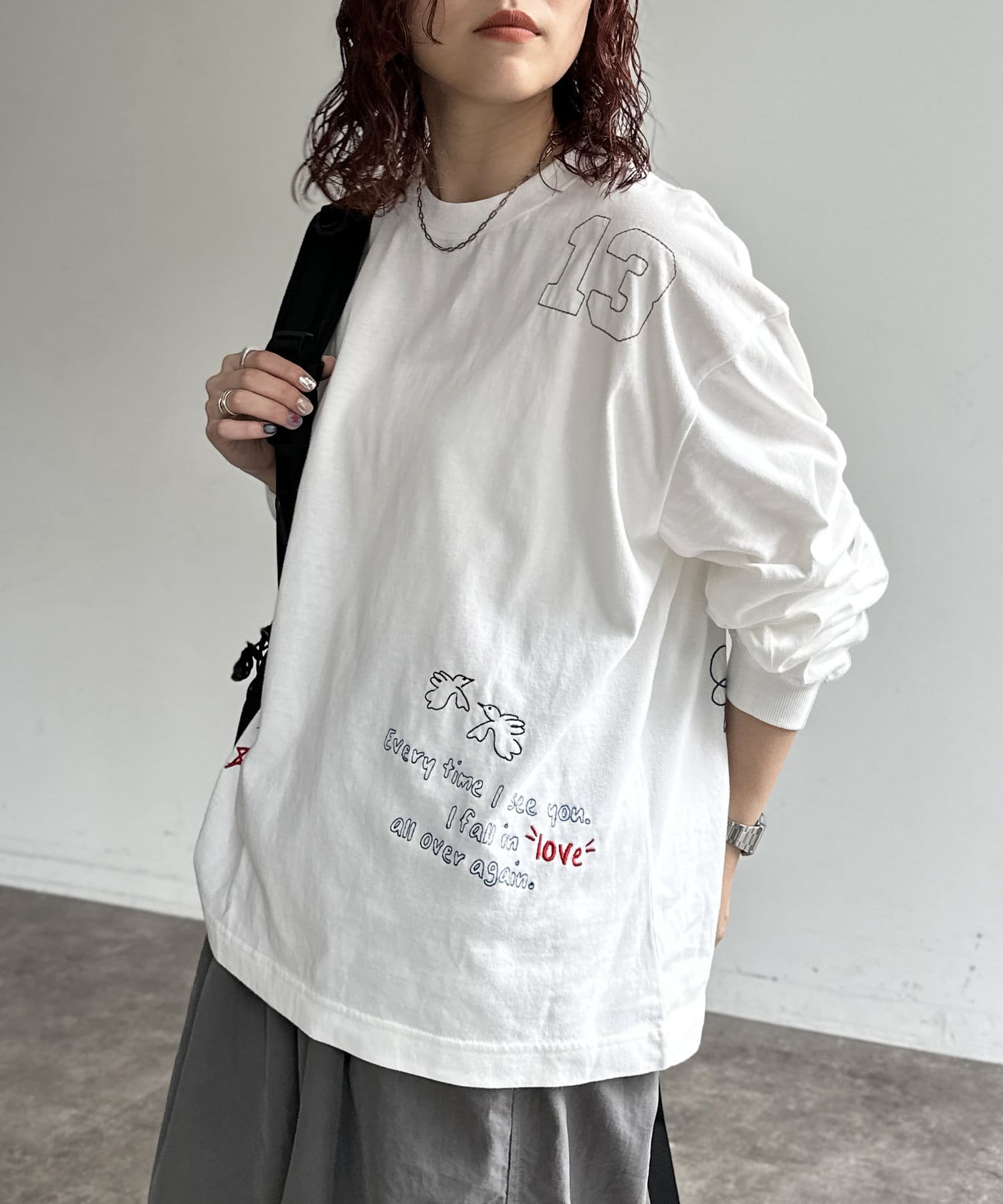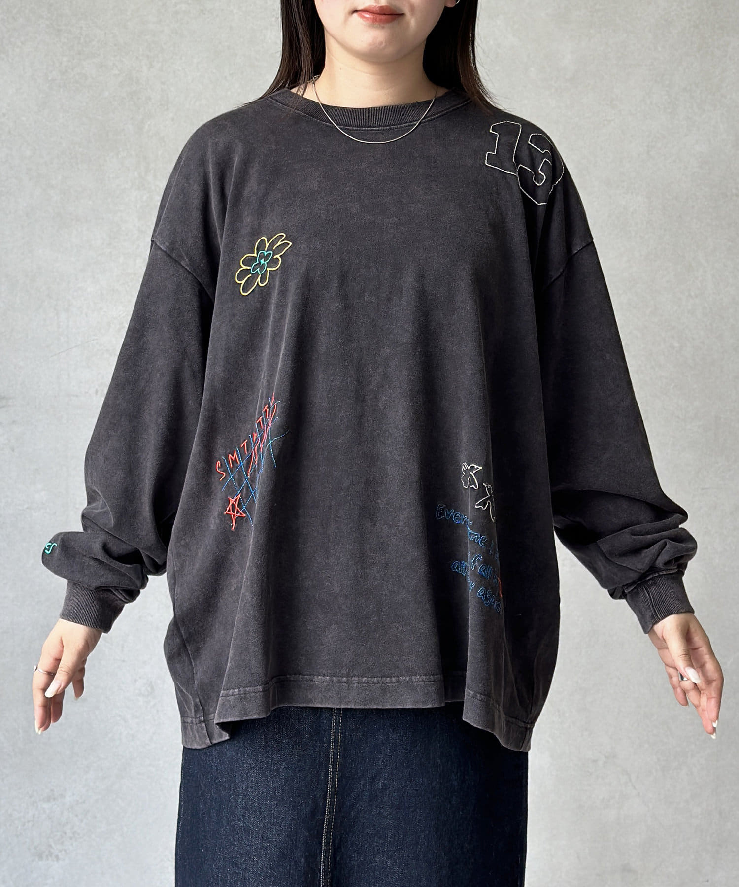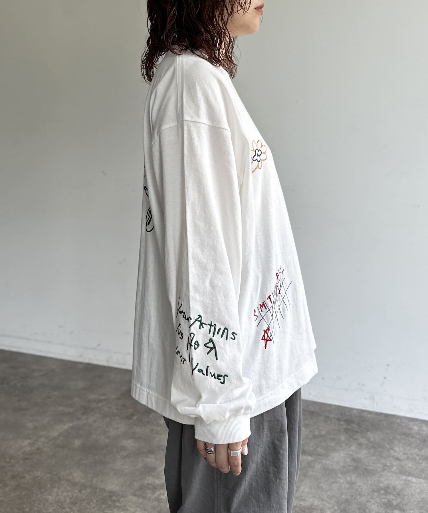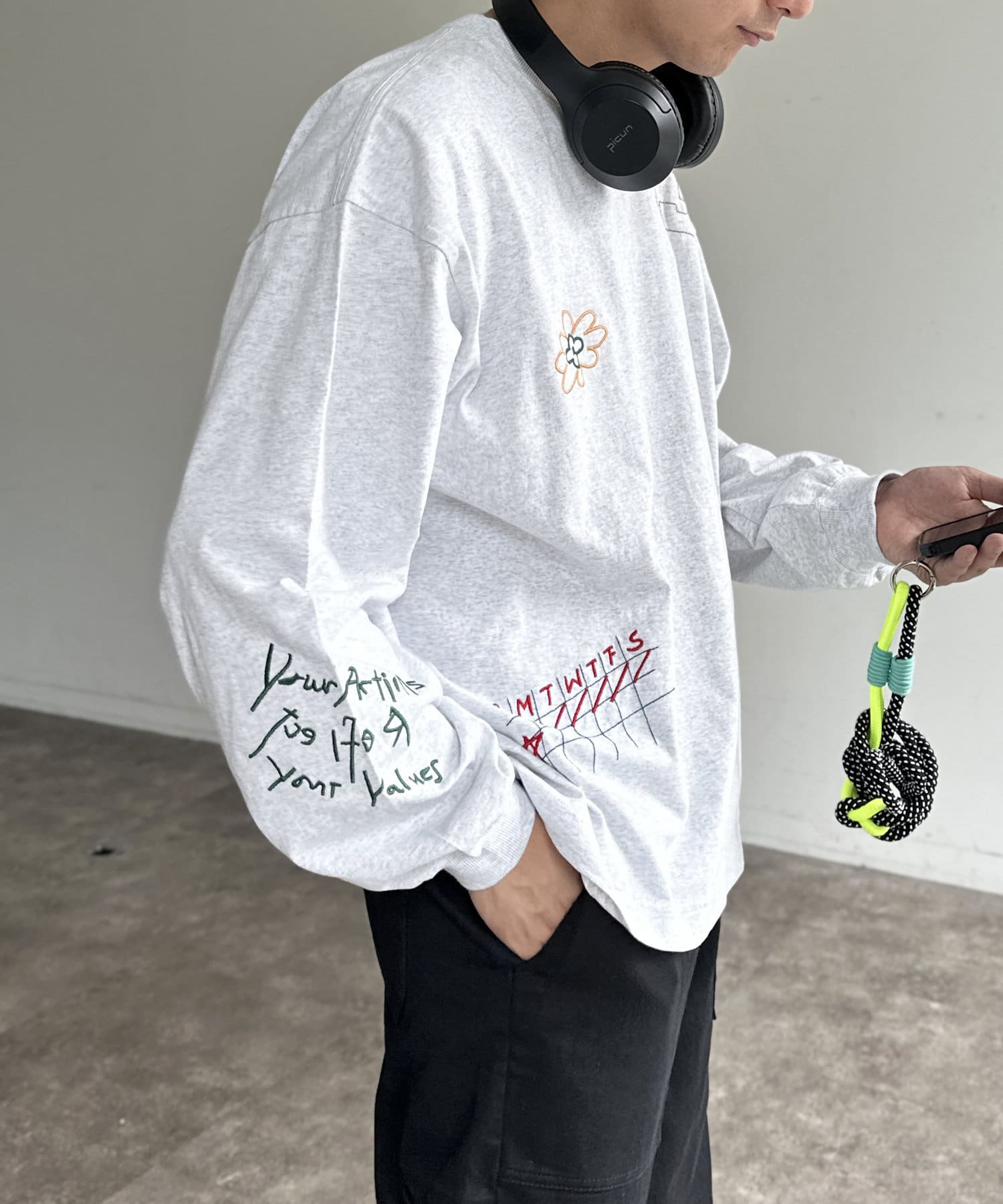 #ラクガキ#メンズライク#落書き刺繍ロンT