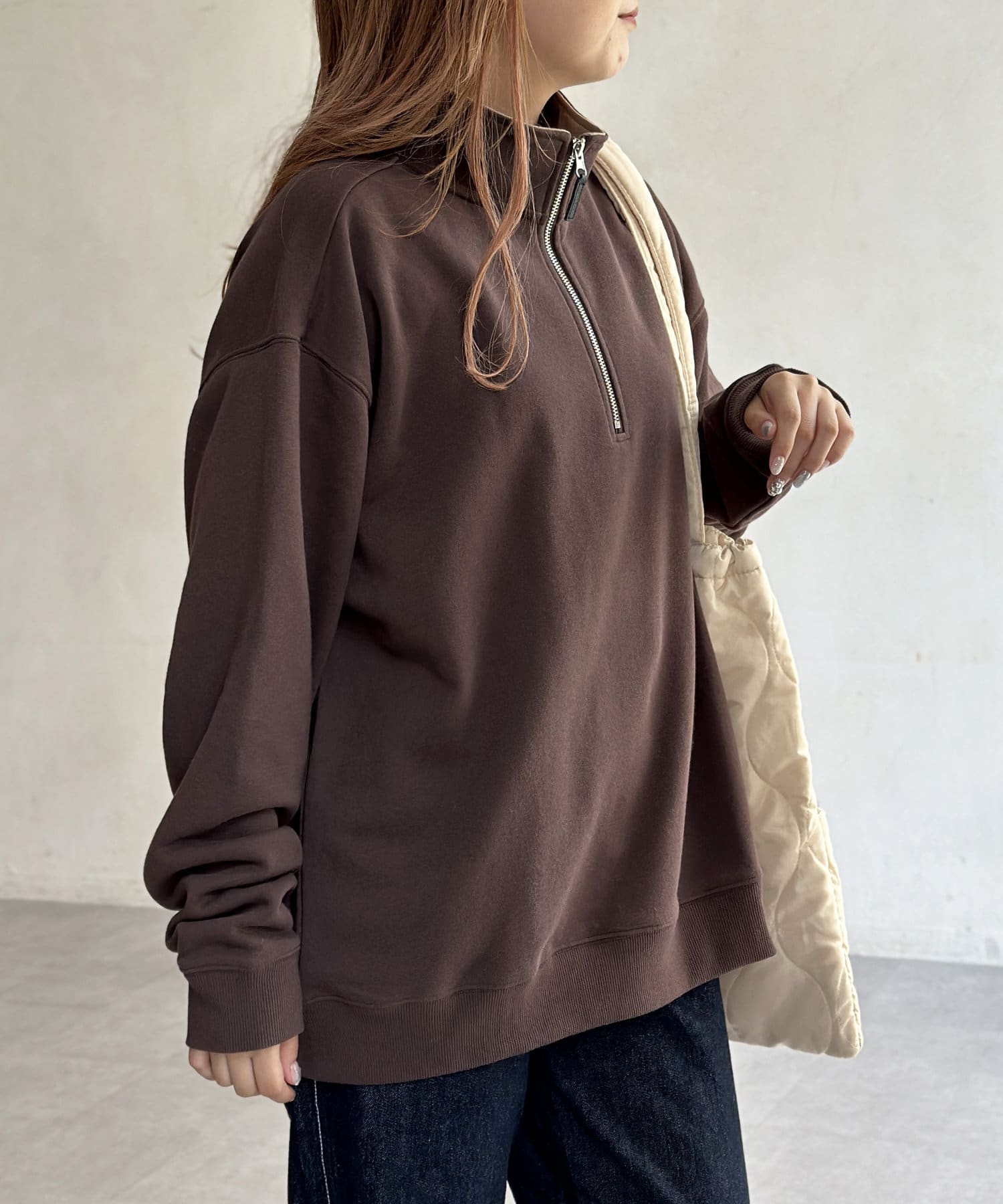 裏毛素材でロングシーズン愛用できるハーフジップスウェット