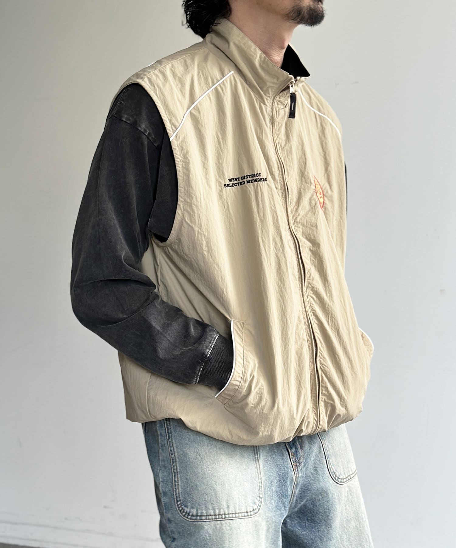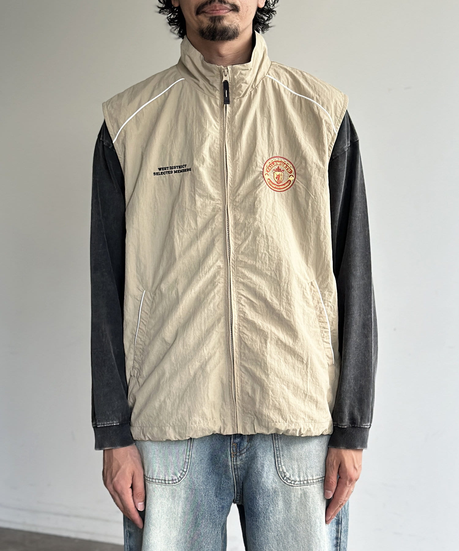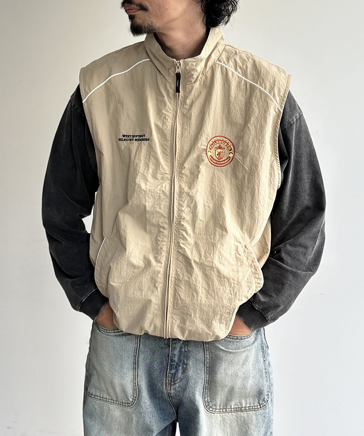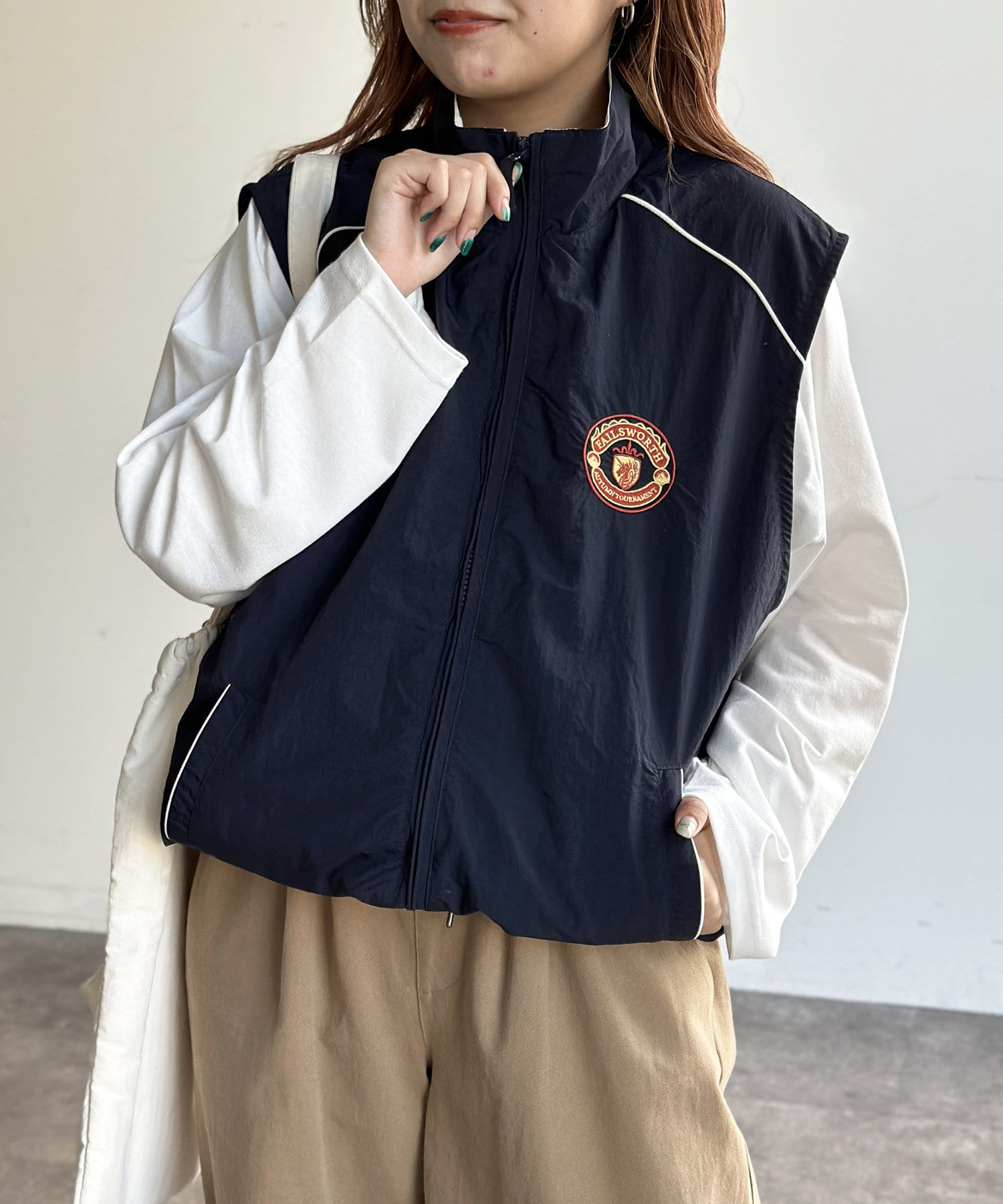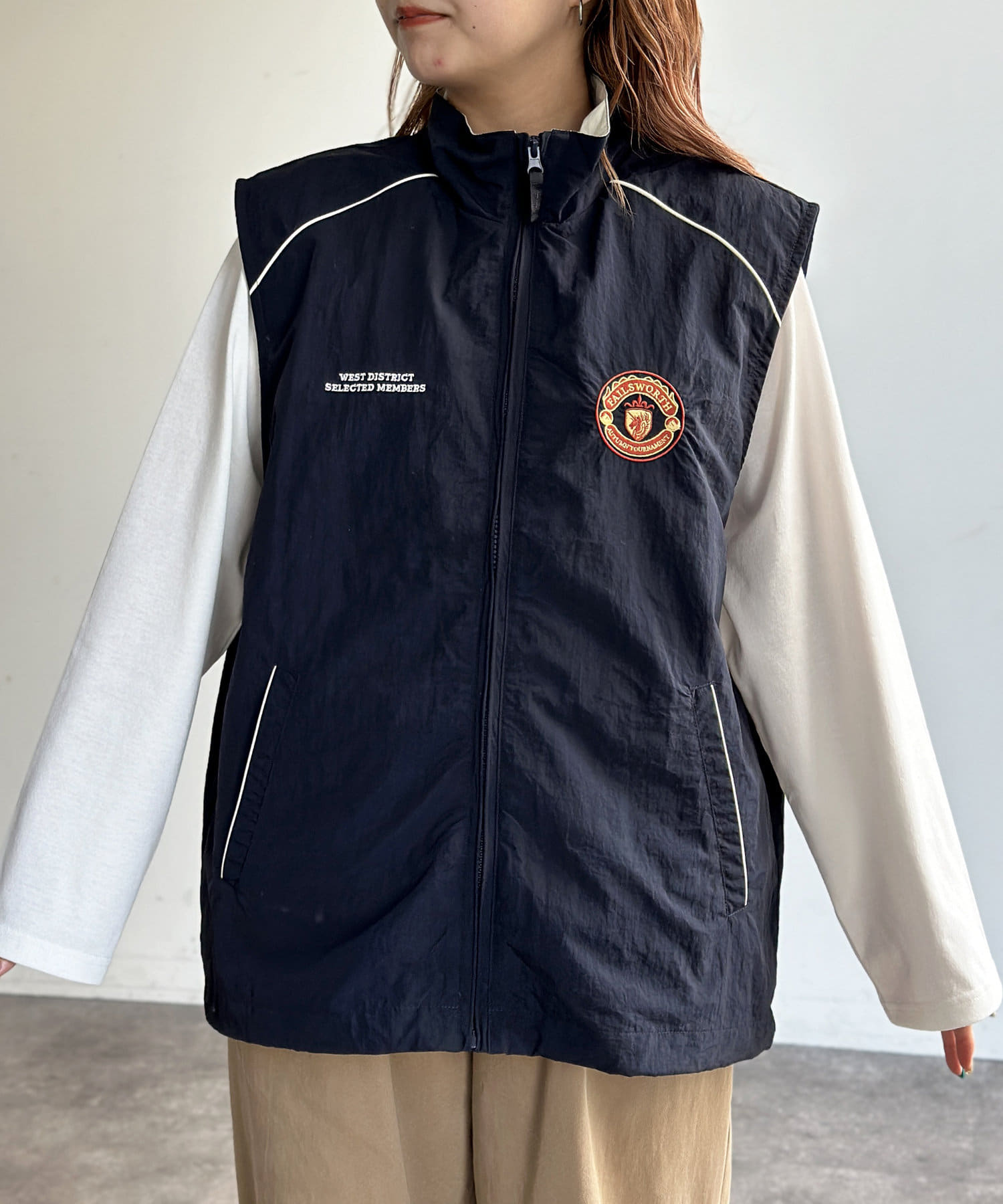 胸刺繍ナイロンベスト