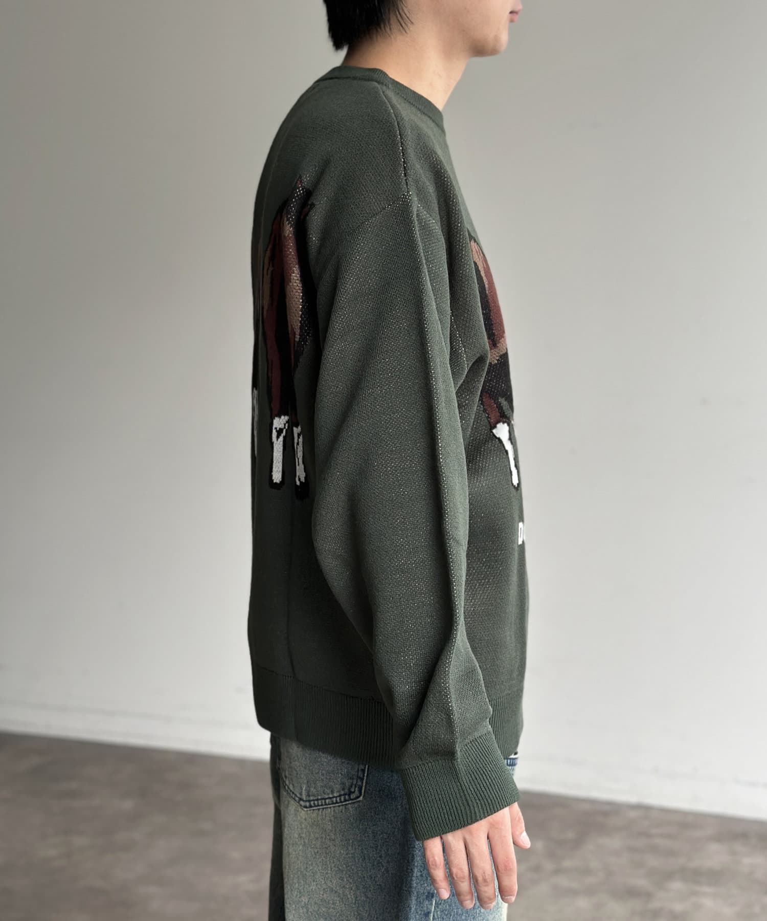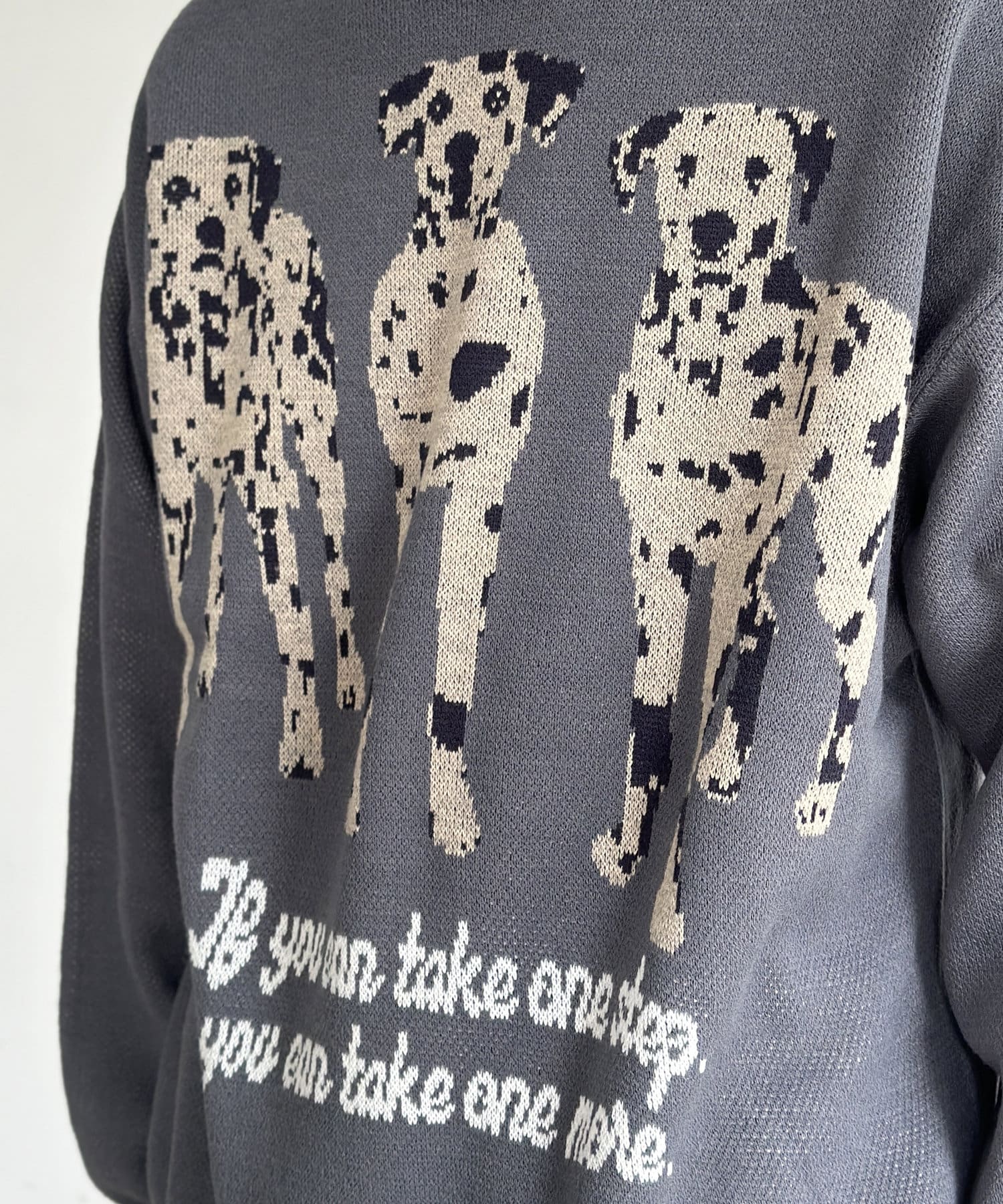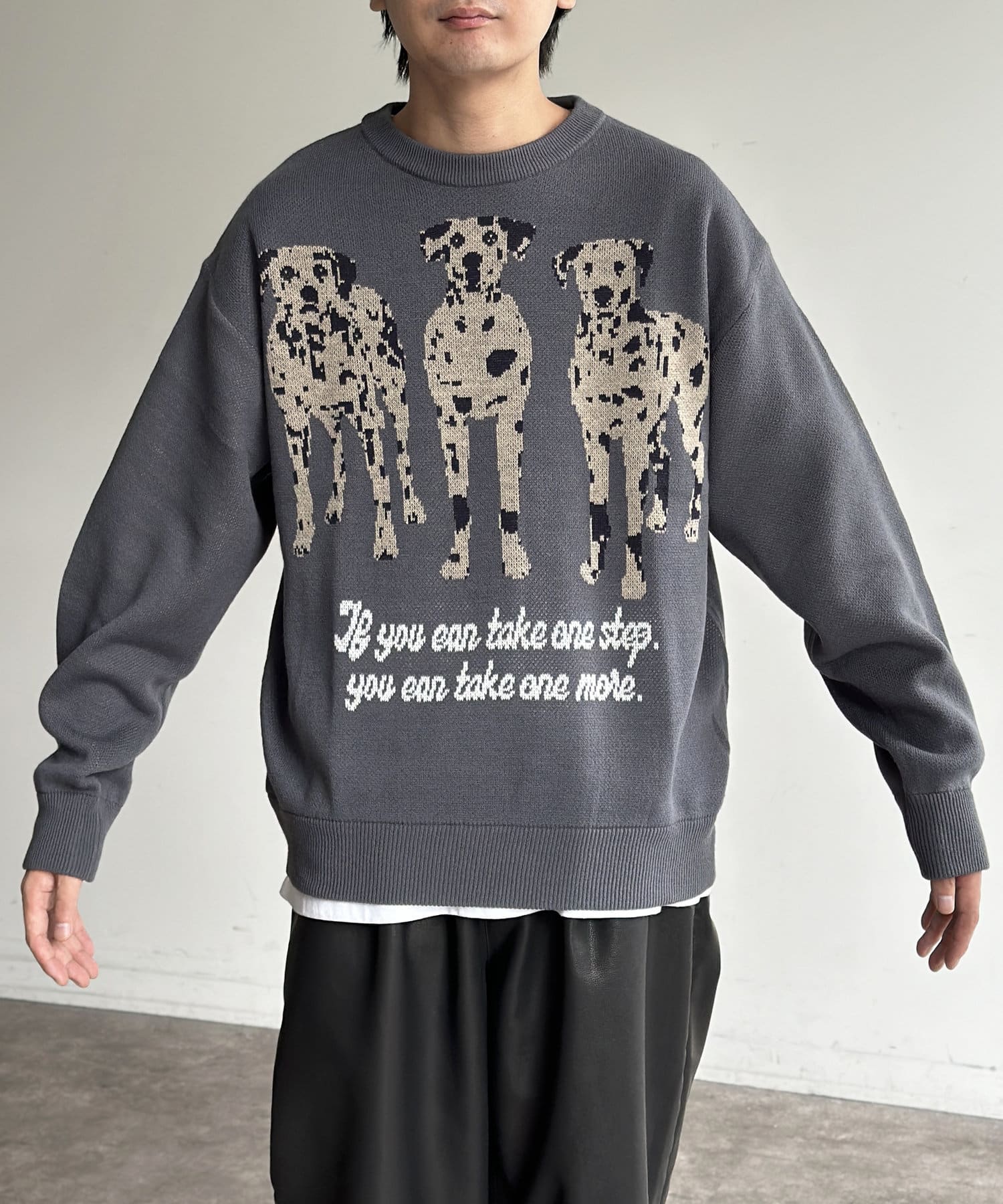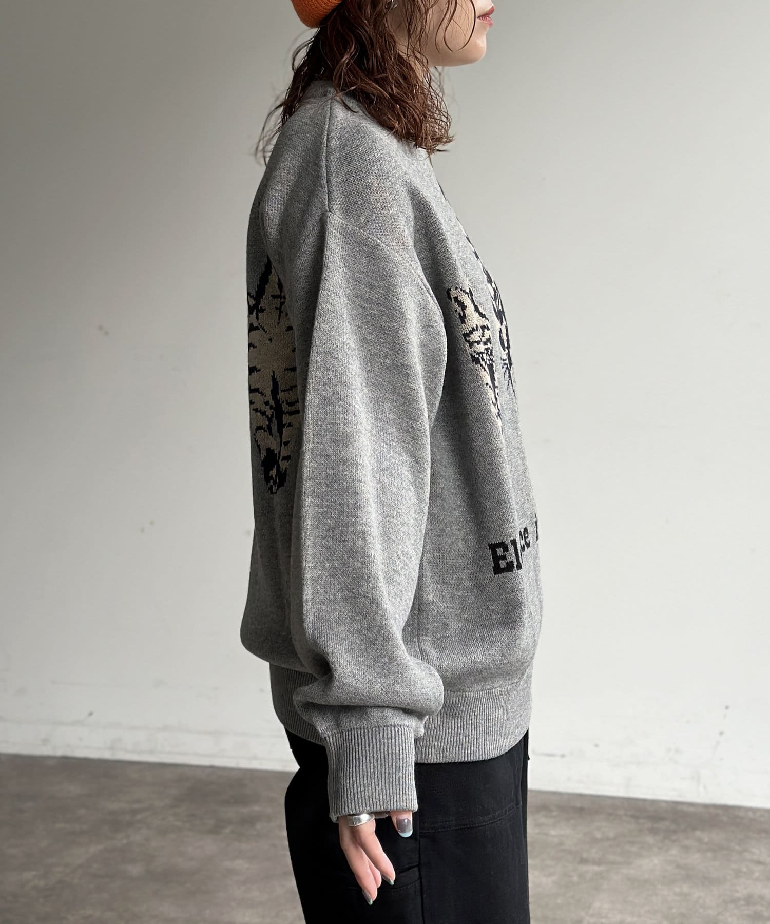 キャッチーなモチーフと秋冬らしい渋めカラーが魅力的なスウェットライクニット