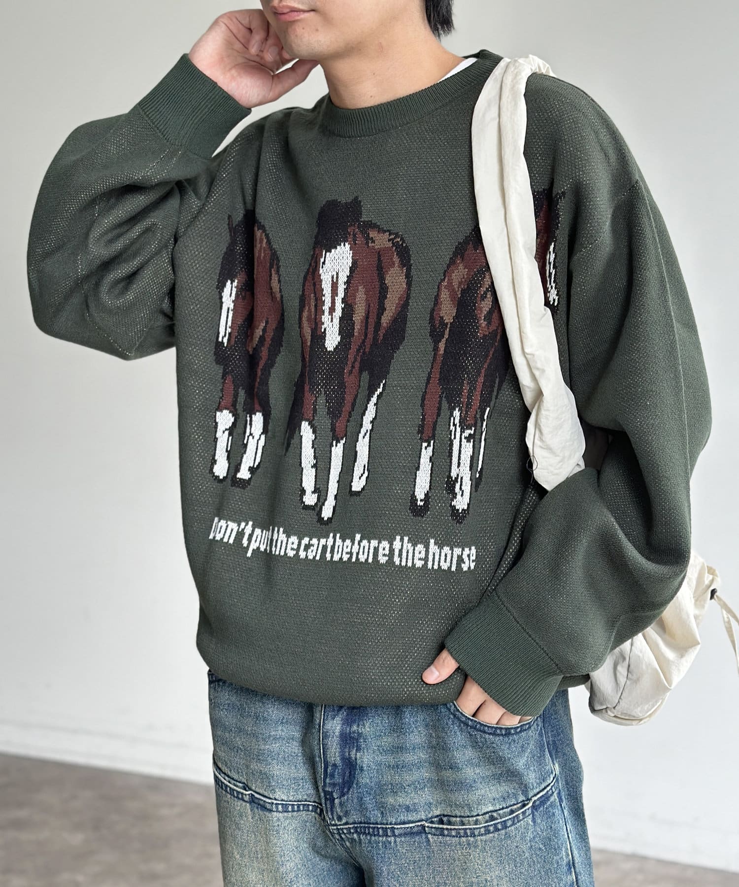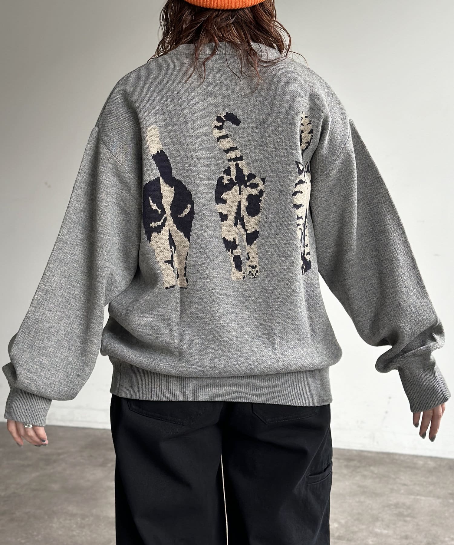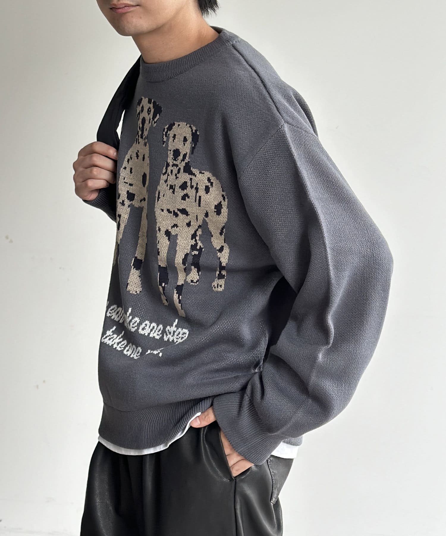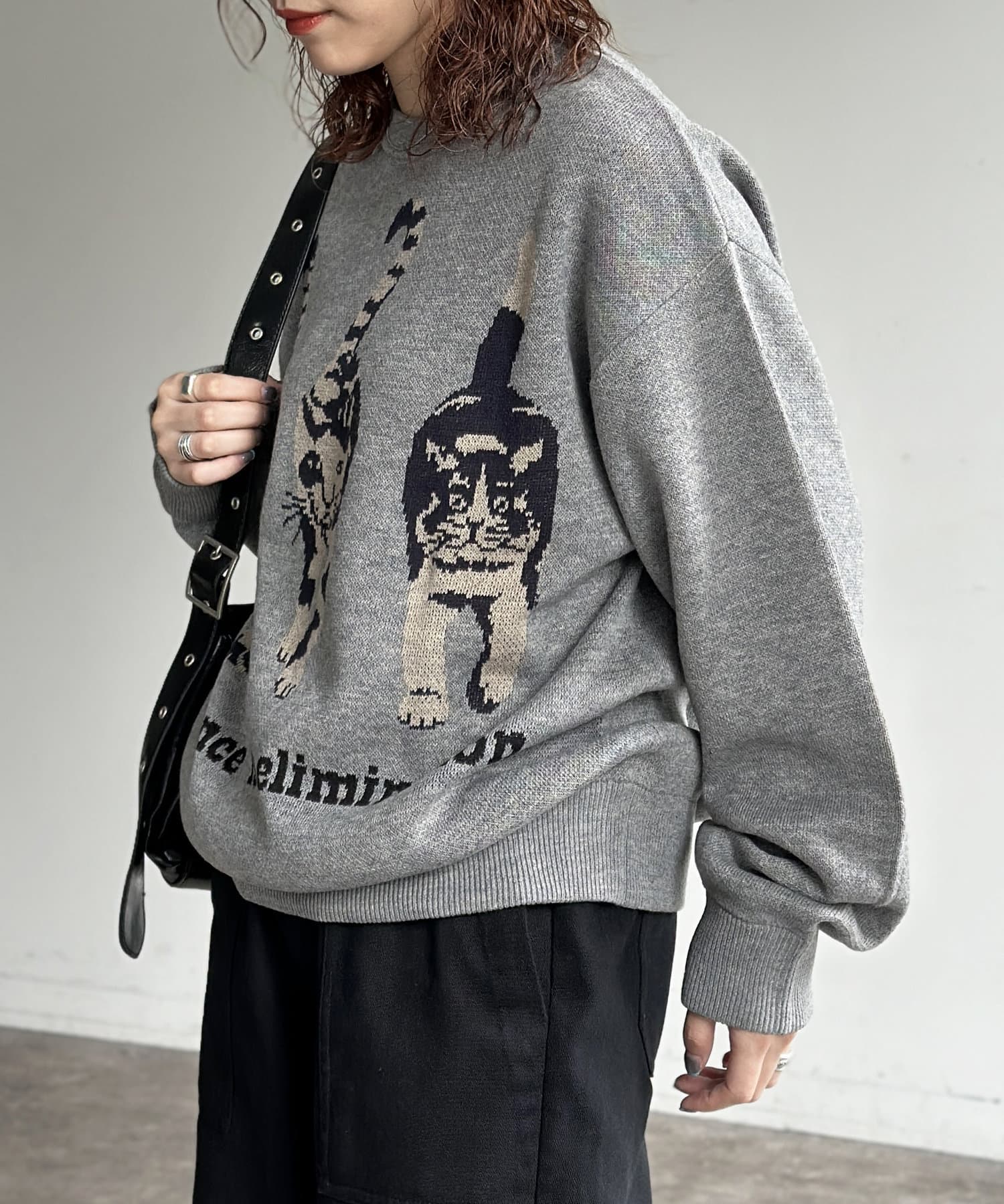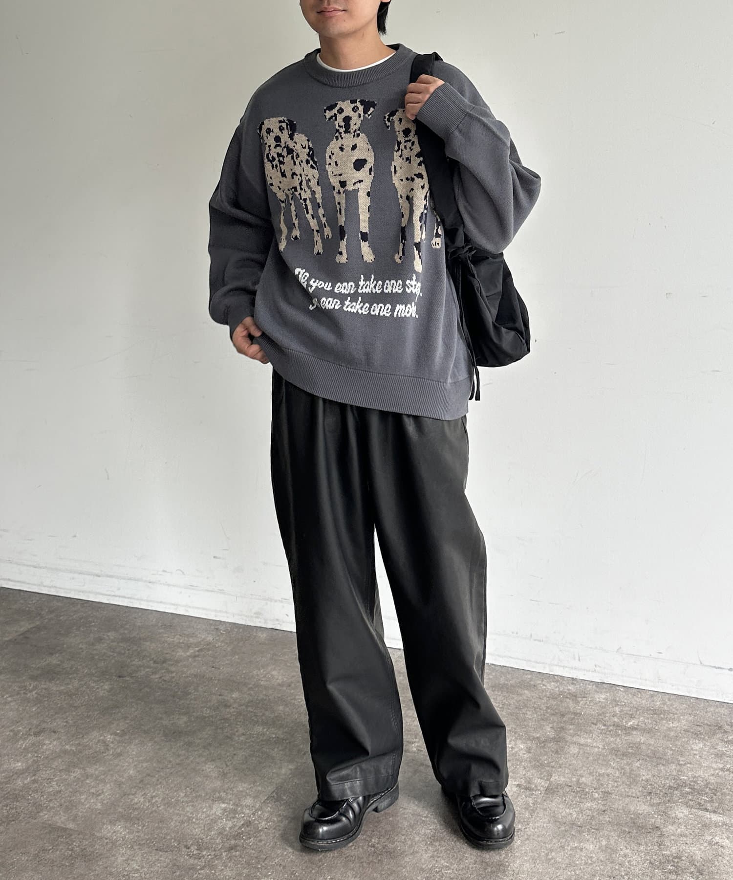キャッチーなモチーフと秋冬らしい渋めカラーが魅力的なスウェットライクニット