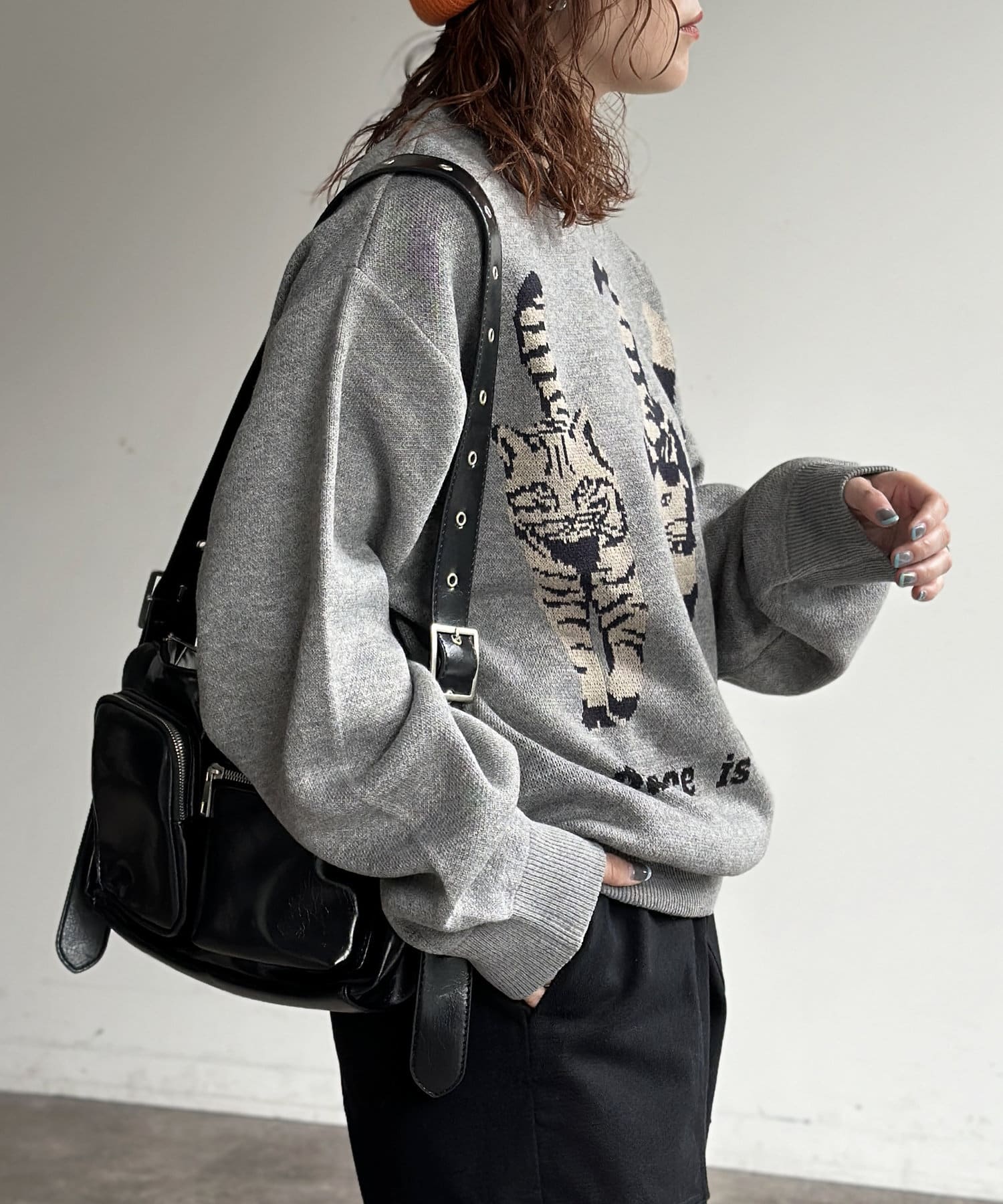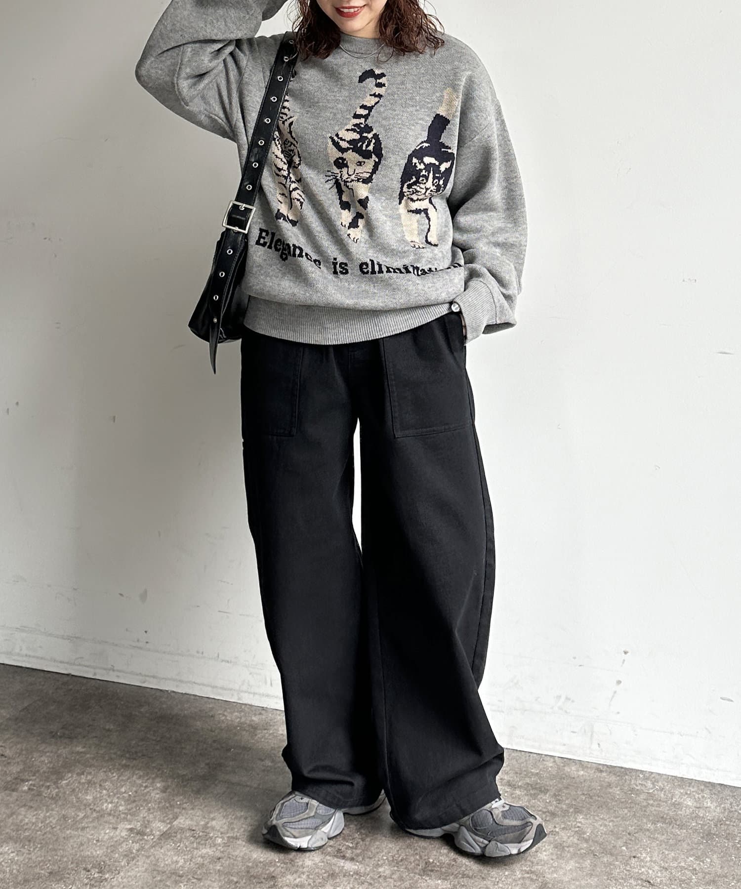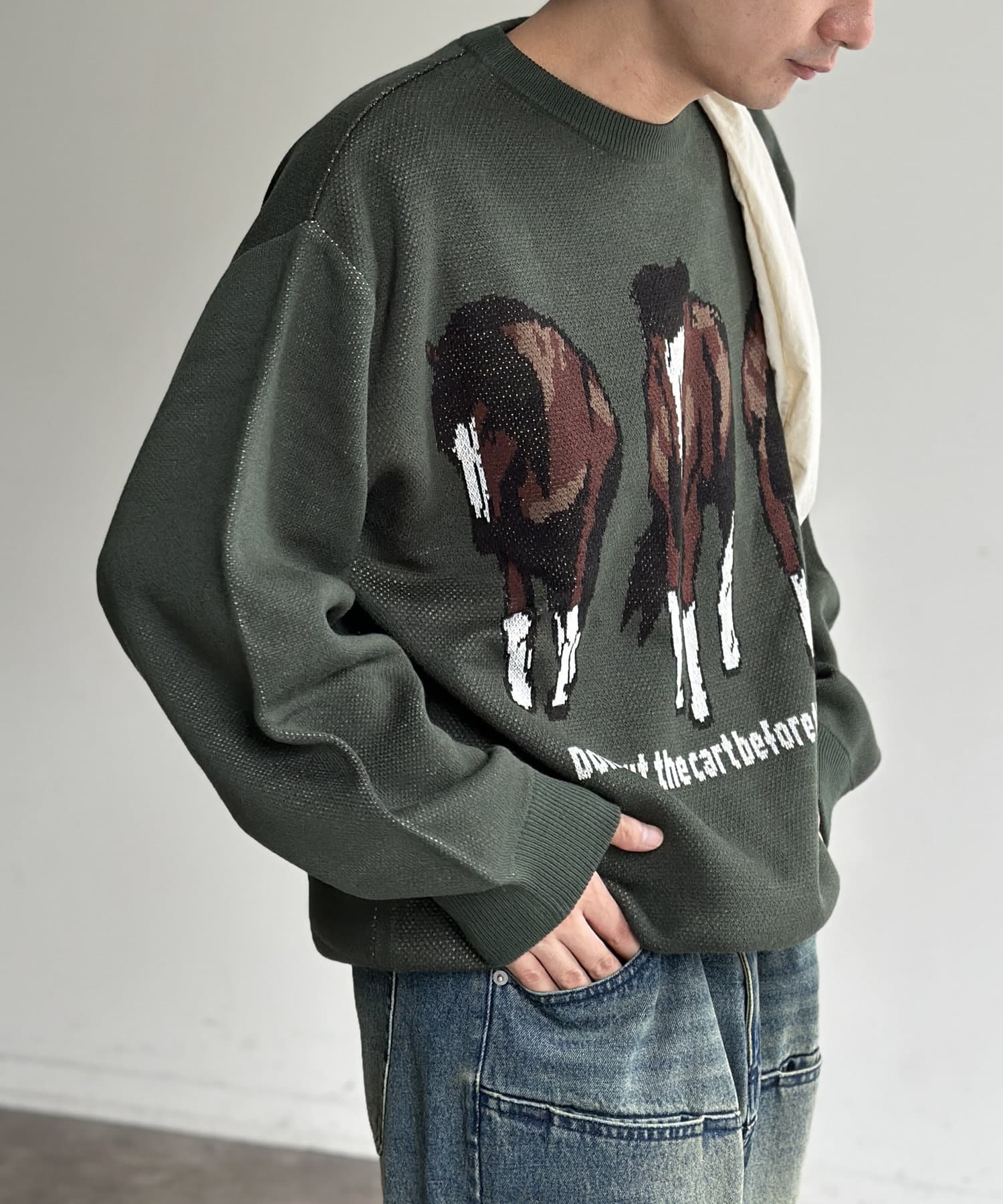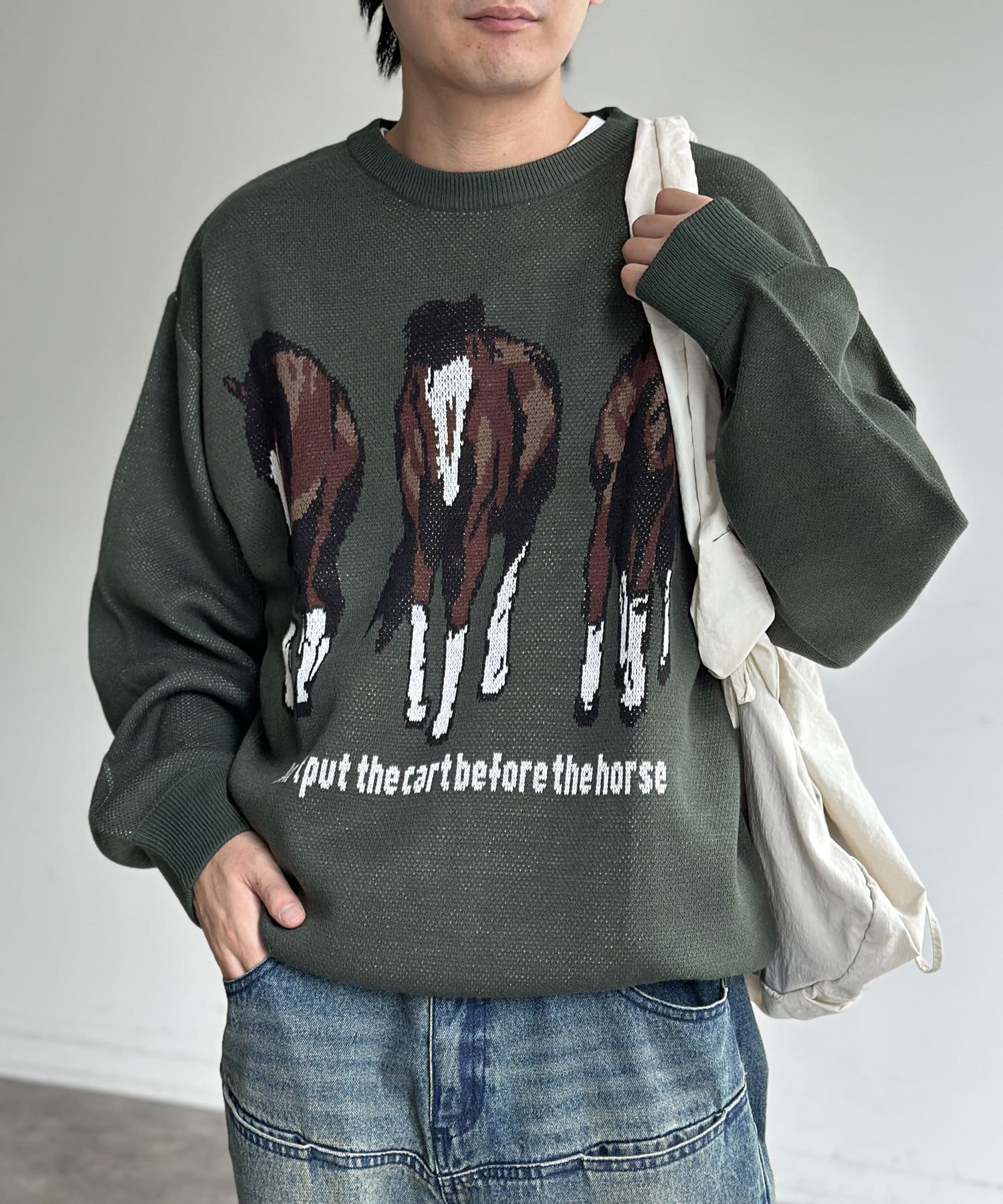 キャッチーなモチーフと秋冬らしい渋めカラーが魅力的なスウェットライクニット