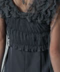 ・華やかなフリルデザインで女性らしさを引き立てる一枚