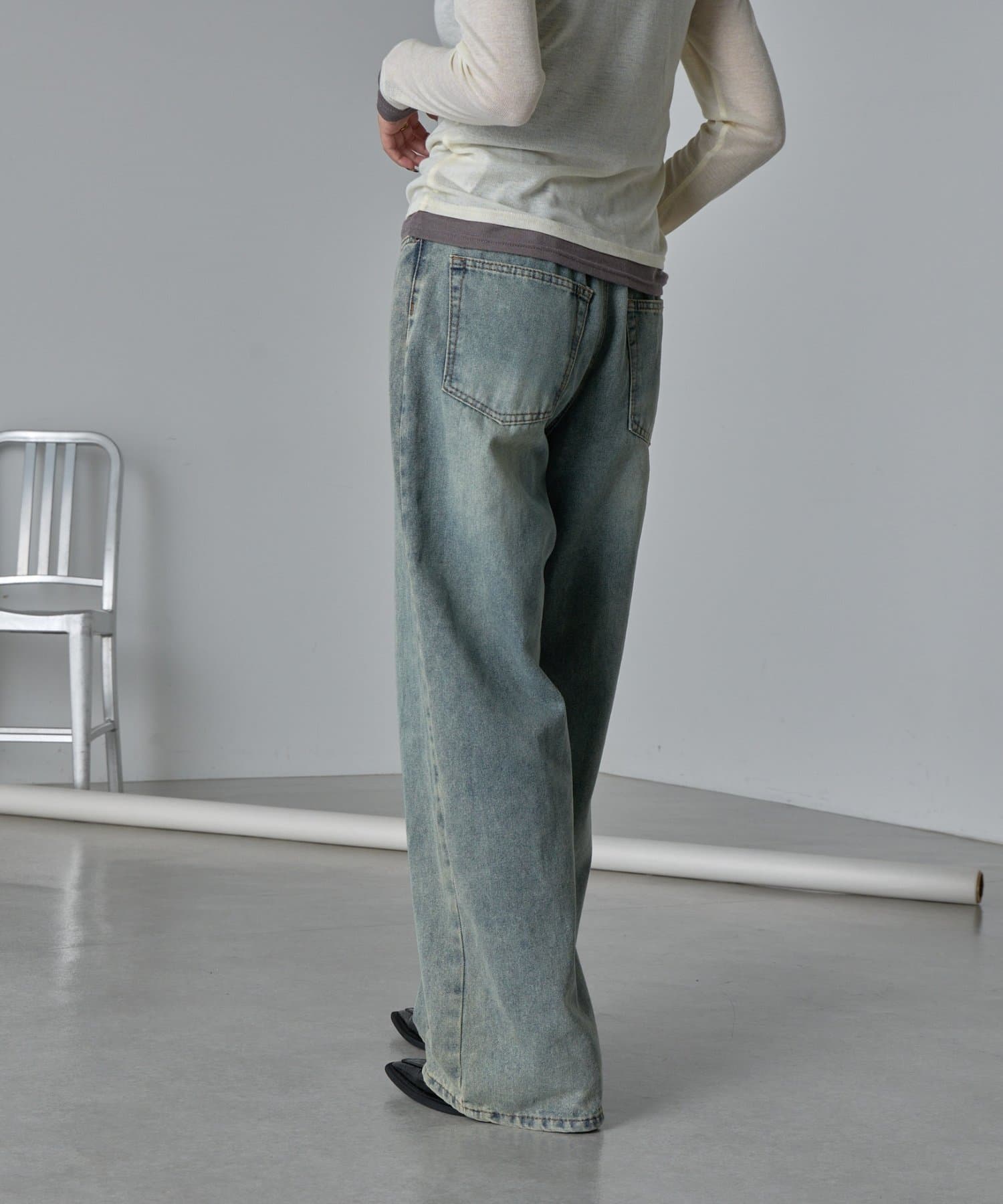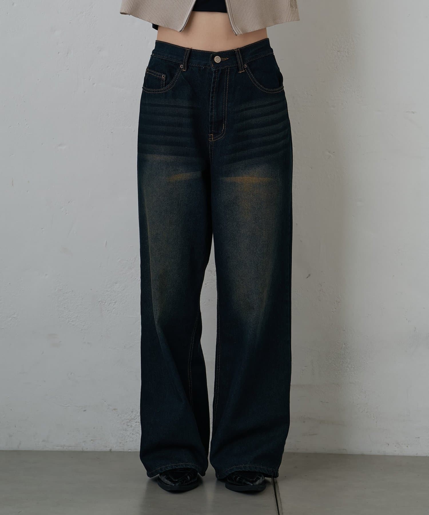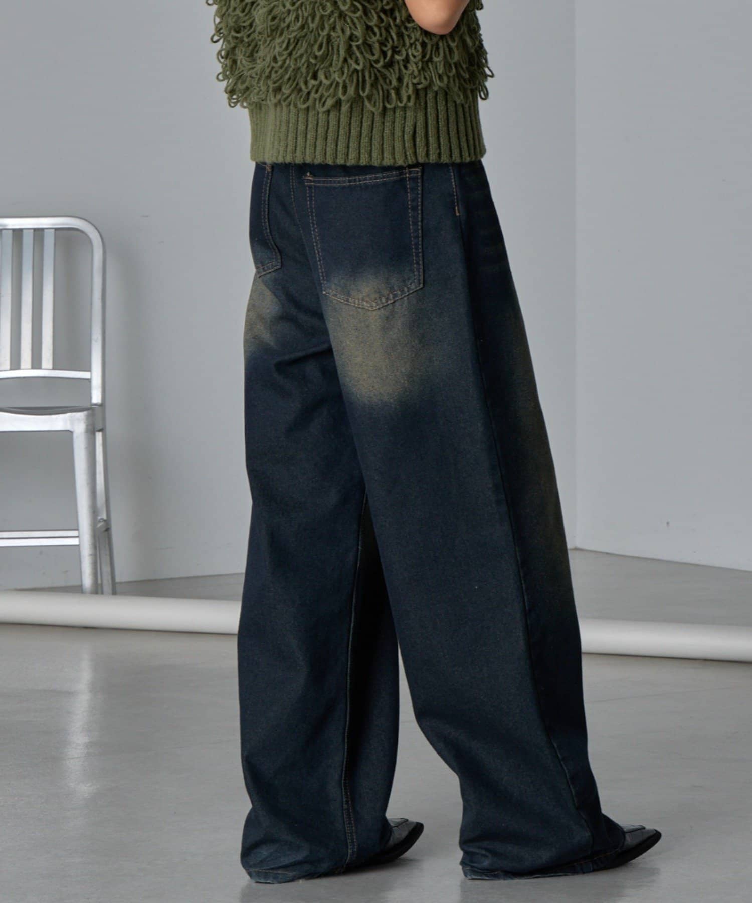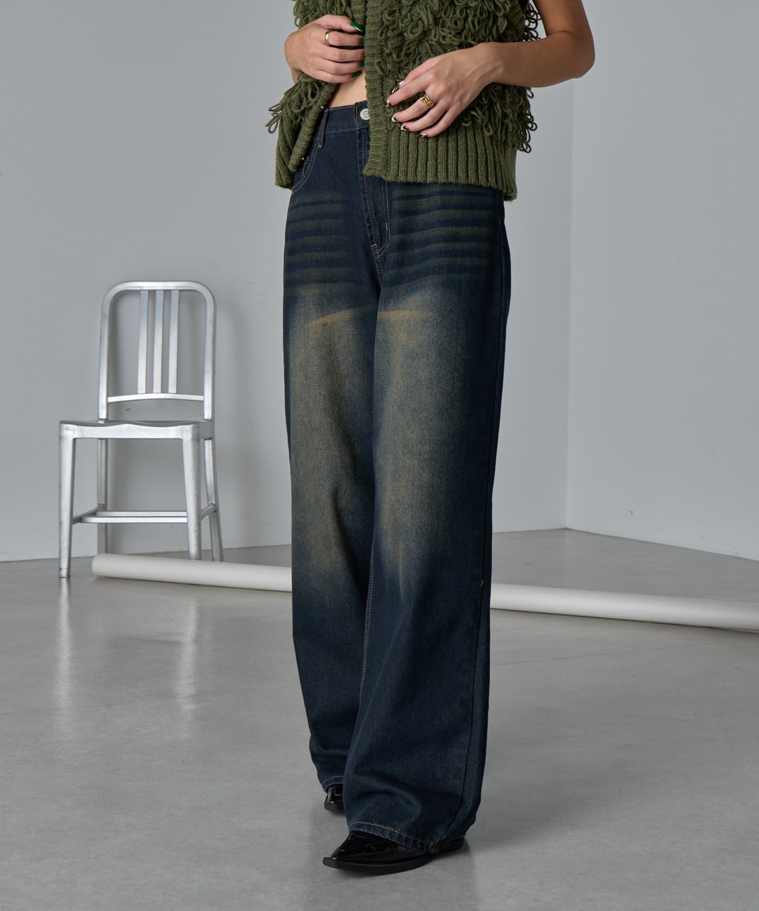 ・オーバーダイ加工でビンテージ感の溢れるデニムパンツ