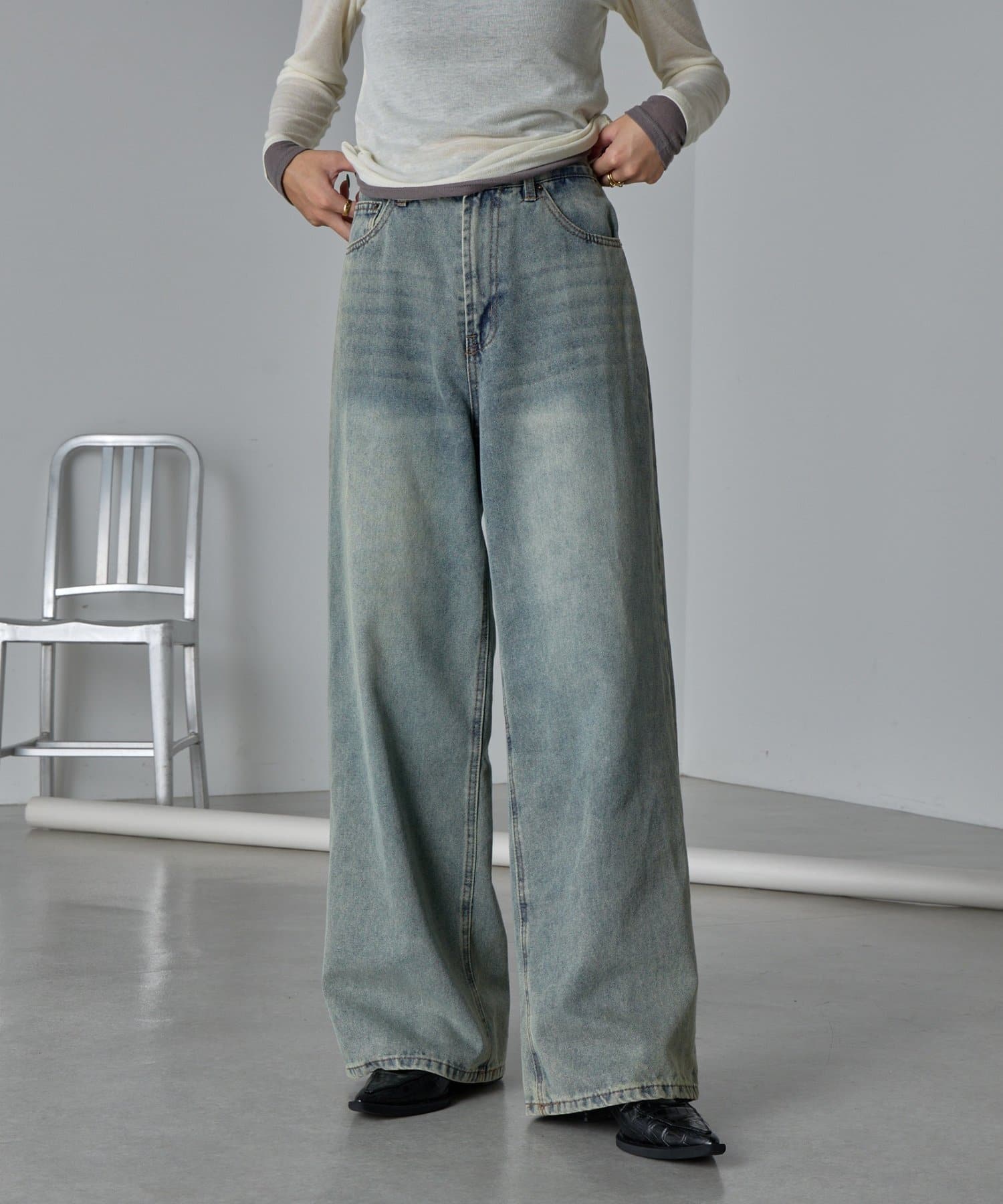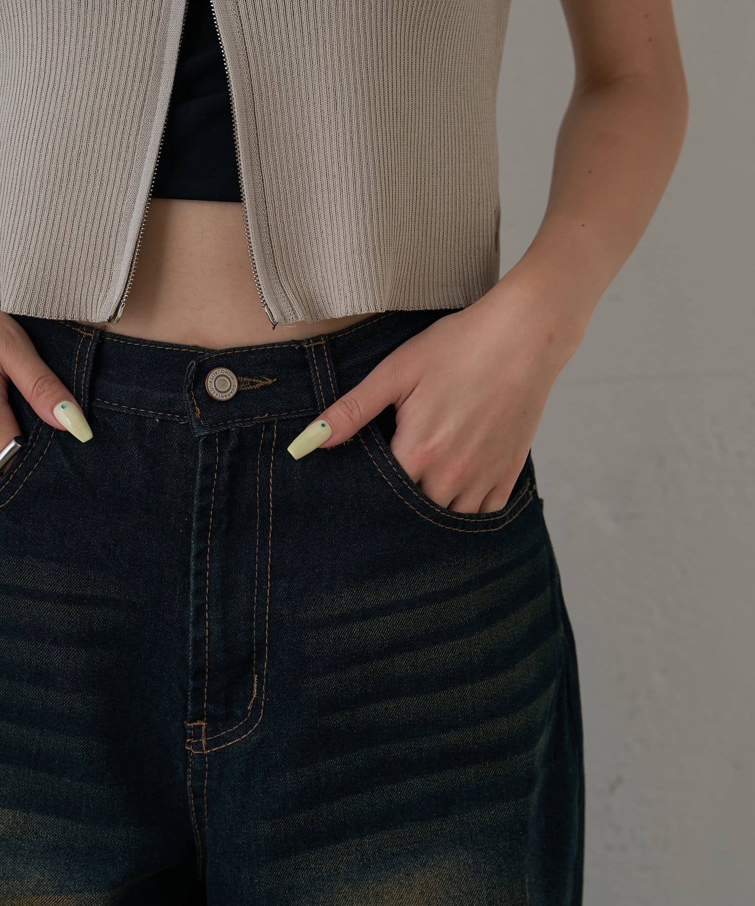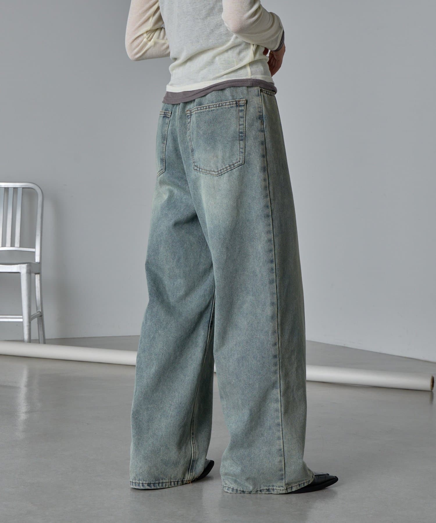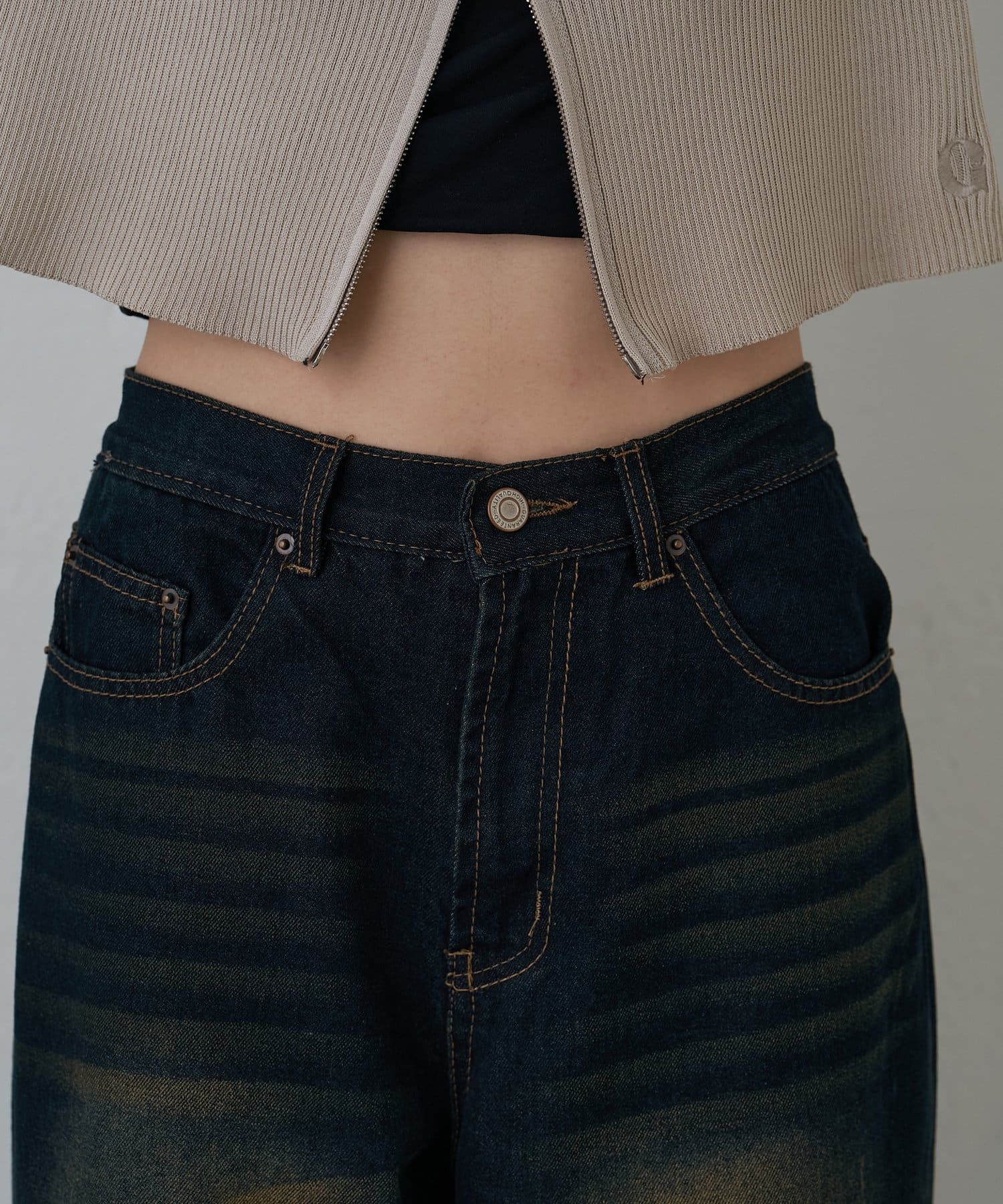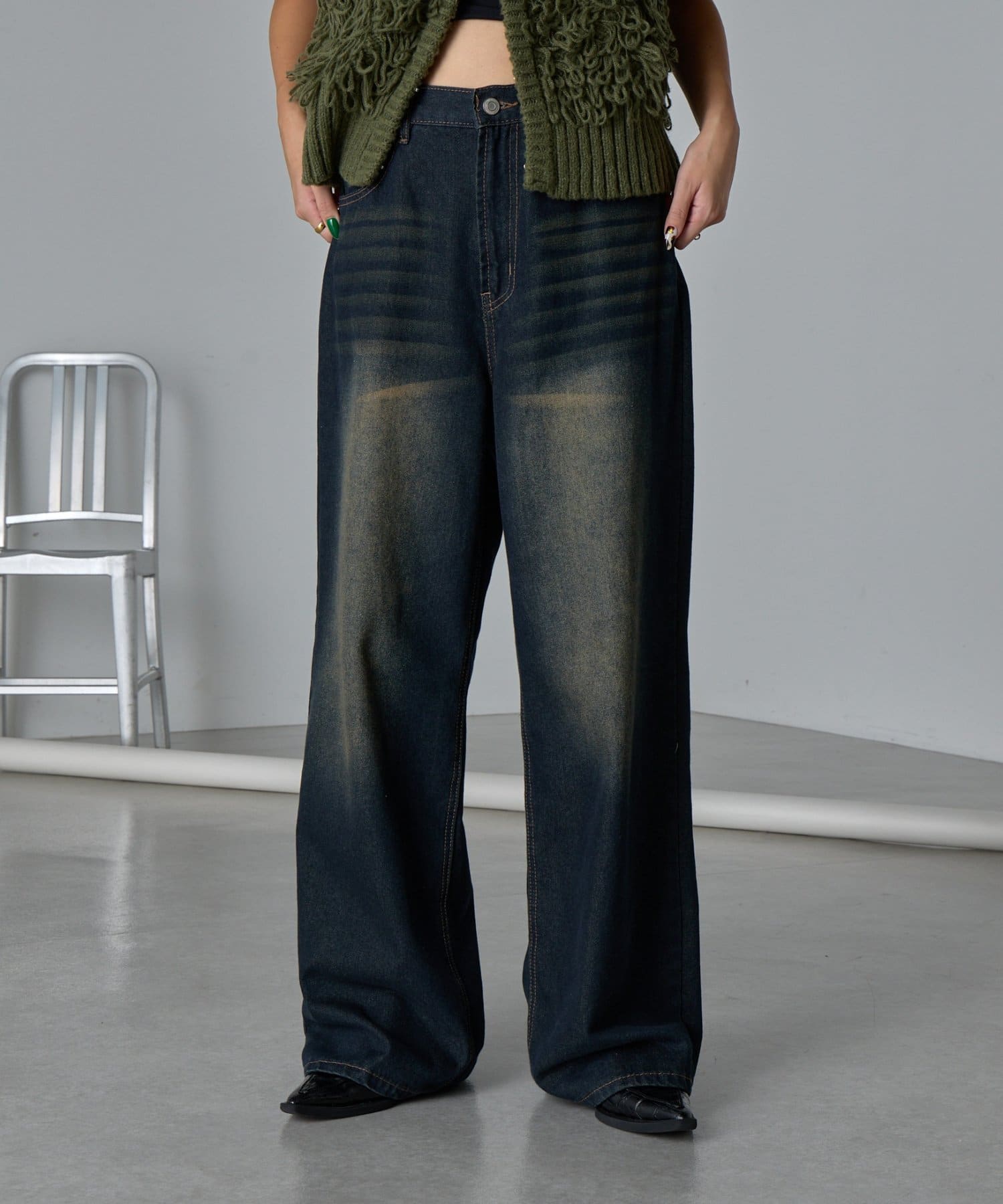 ・オーバーダイ加工でビンテージ感の溢れるデニムパンツ