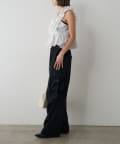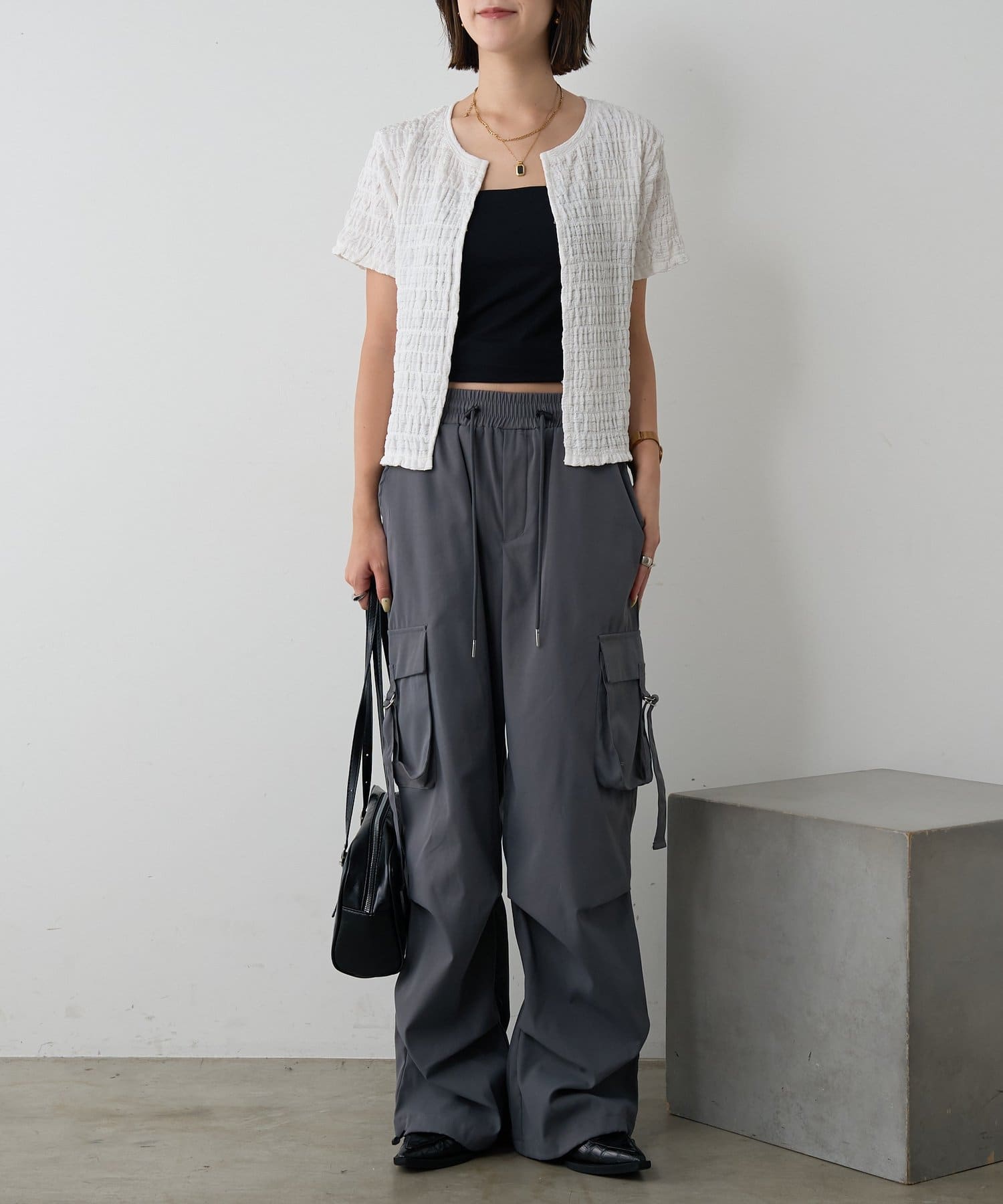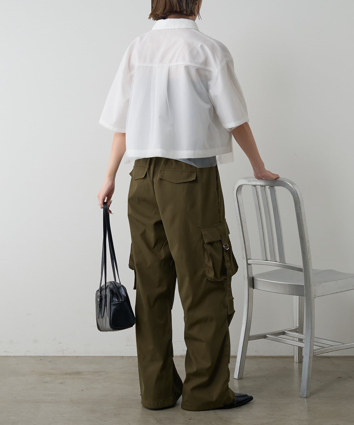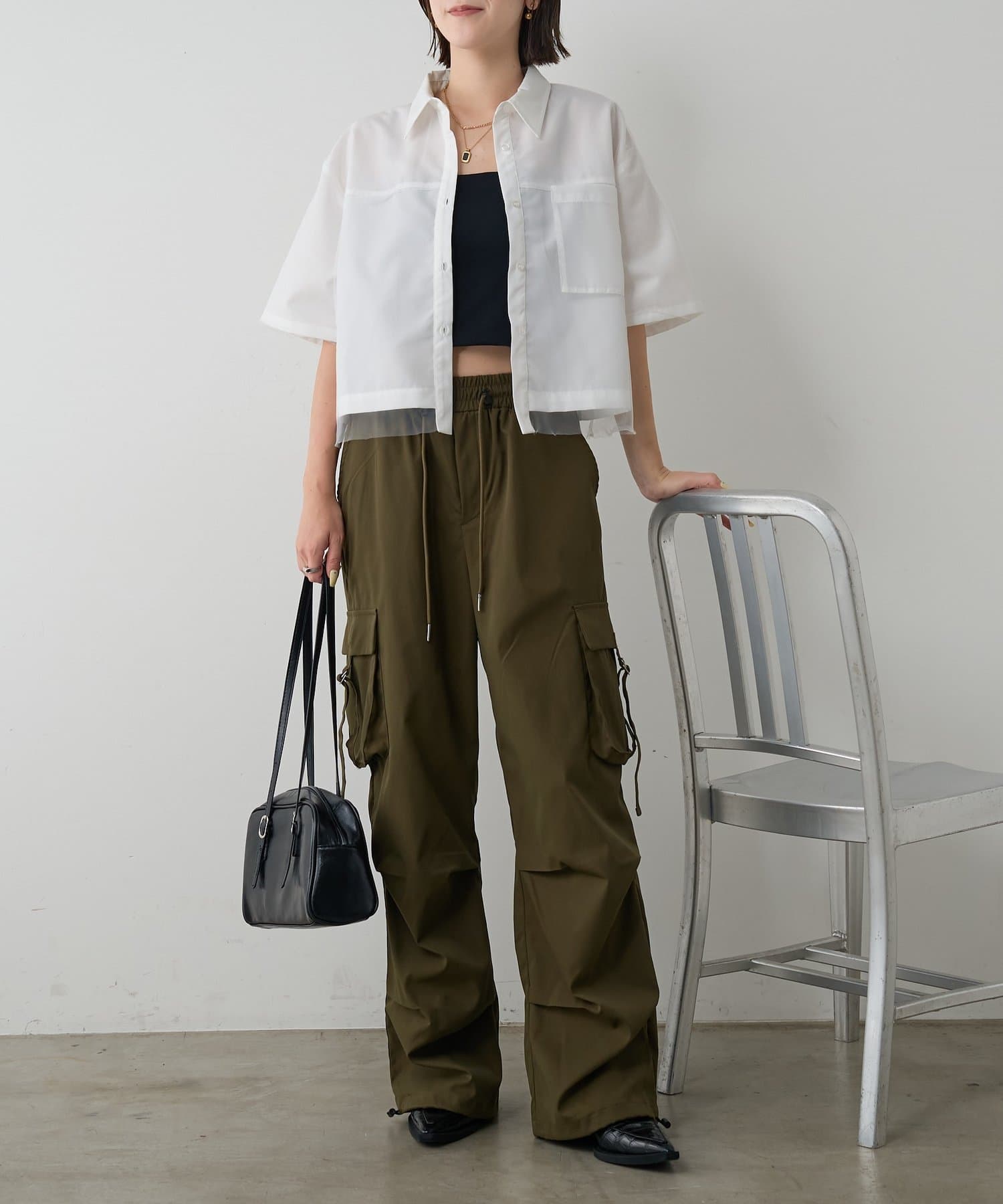 ・クロップド丈のトップス合わせで、脚長効果によりスタイルアップ。
