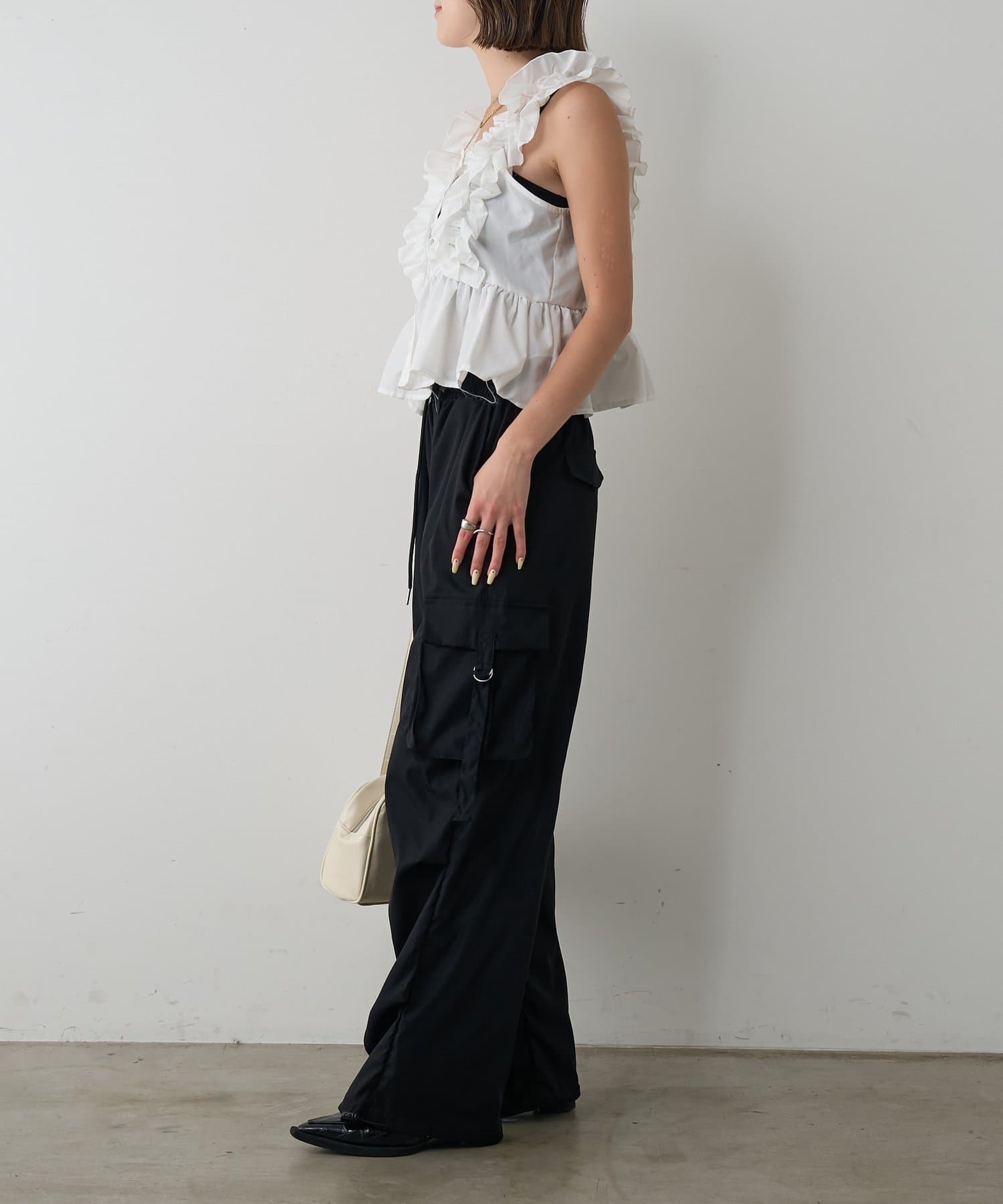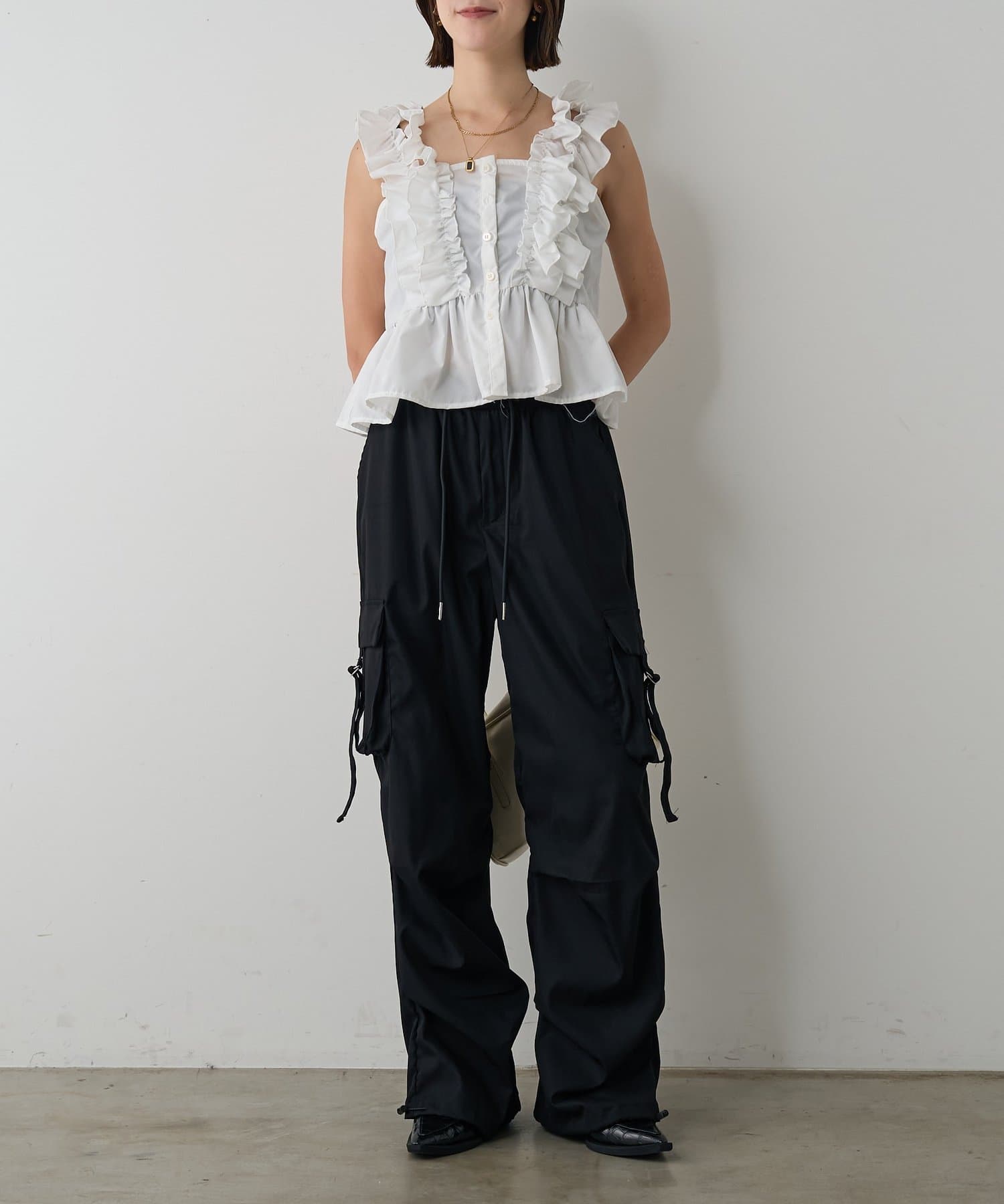 ・メンズライクなミリタリーテイストなので、甘めなトップスやハードなアイテムを合わせたスタイリングまで。