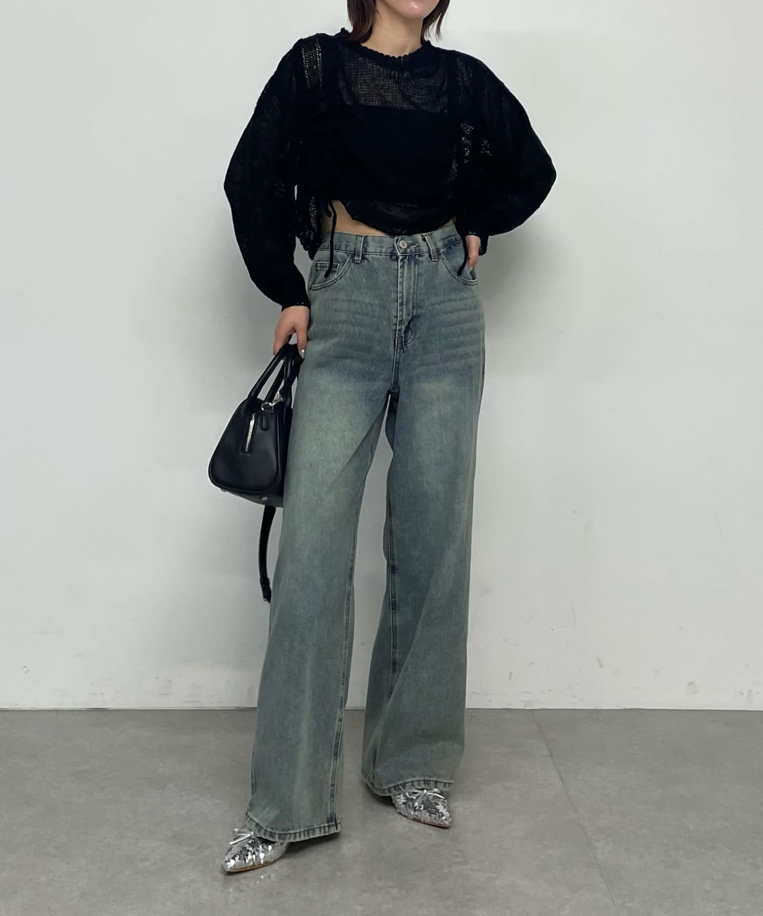 #透かし網 #ドロストニット #ゆったり #カジュアル #春パンツ