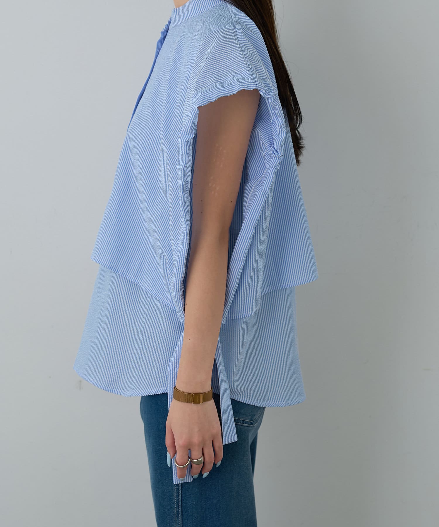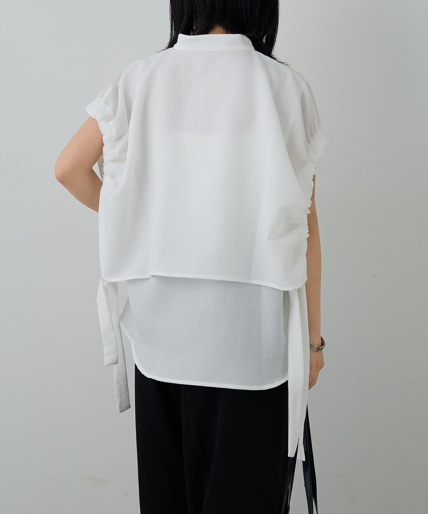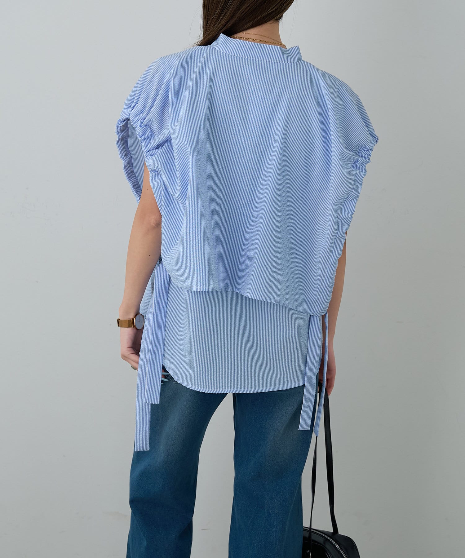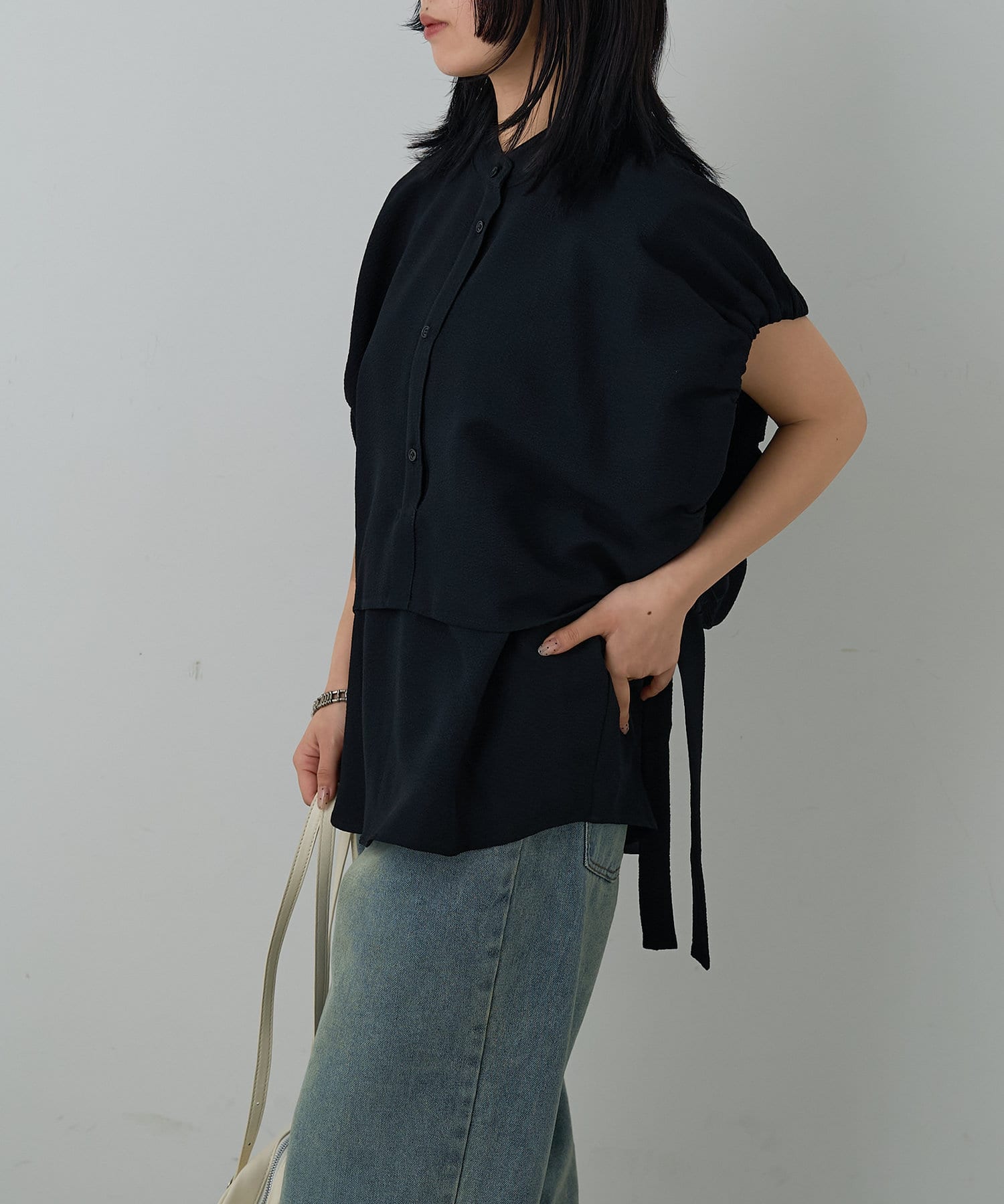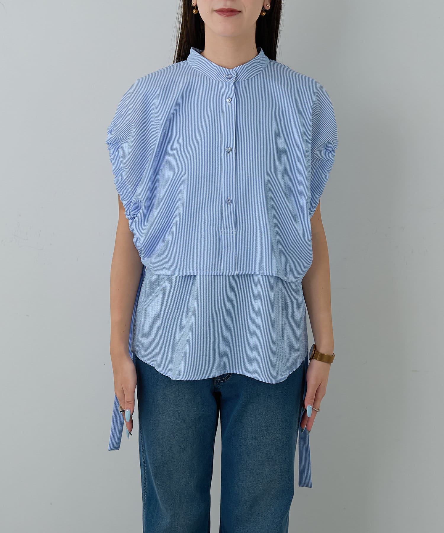 #袖口ブラウス #レイヤード #ノースリーブ #袖口リボンレイヤードブラウス #夏アイテム