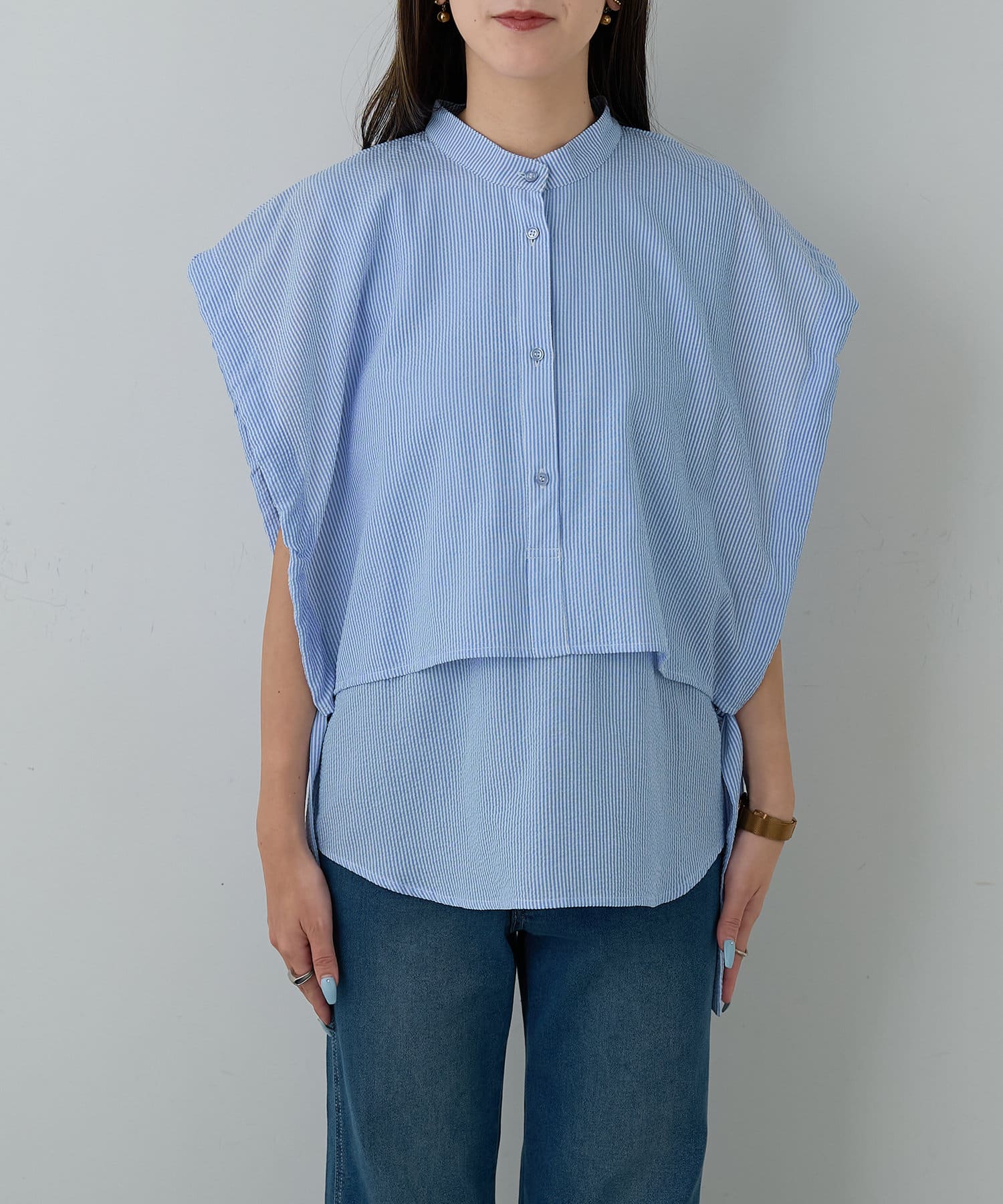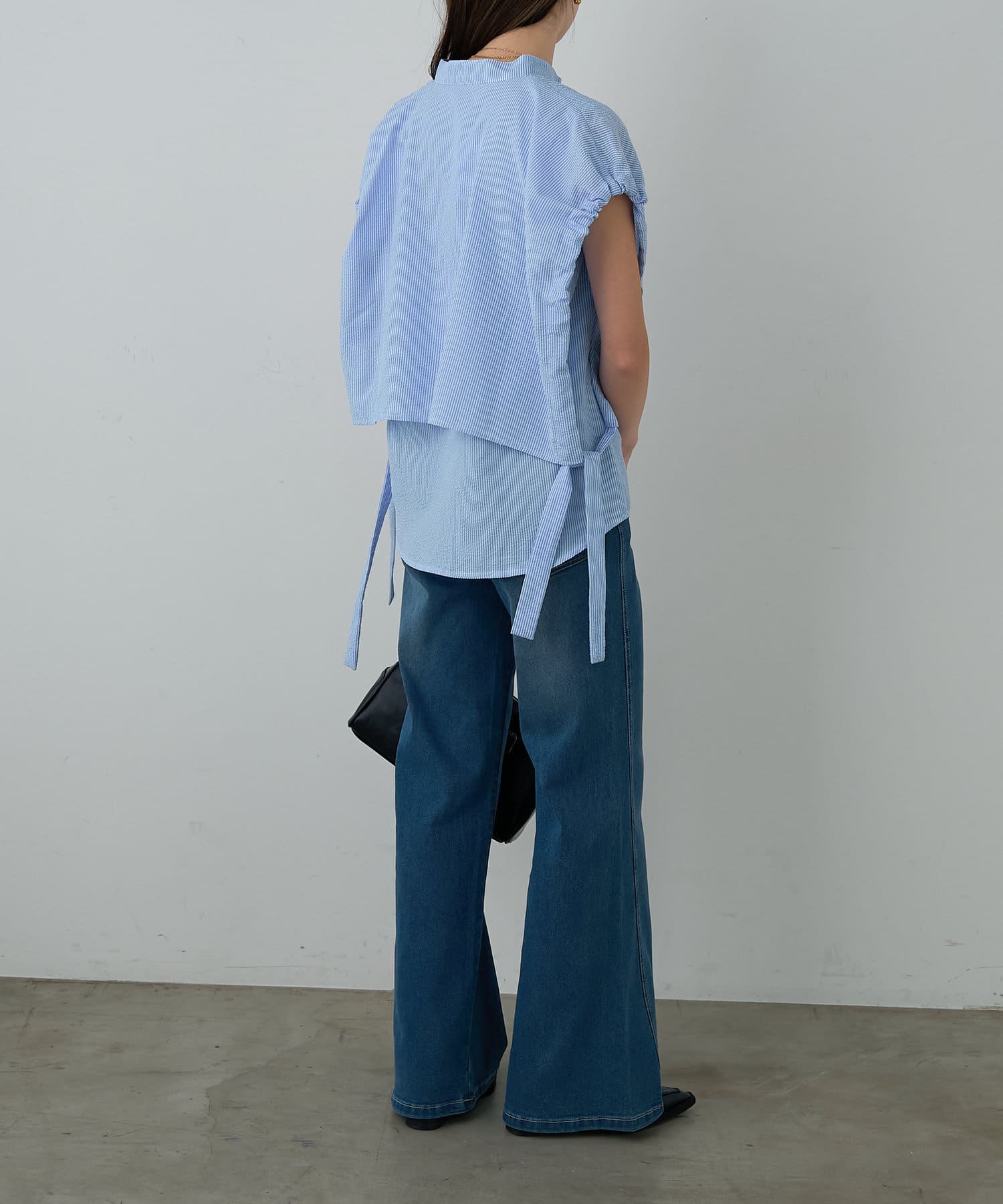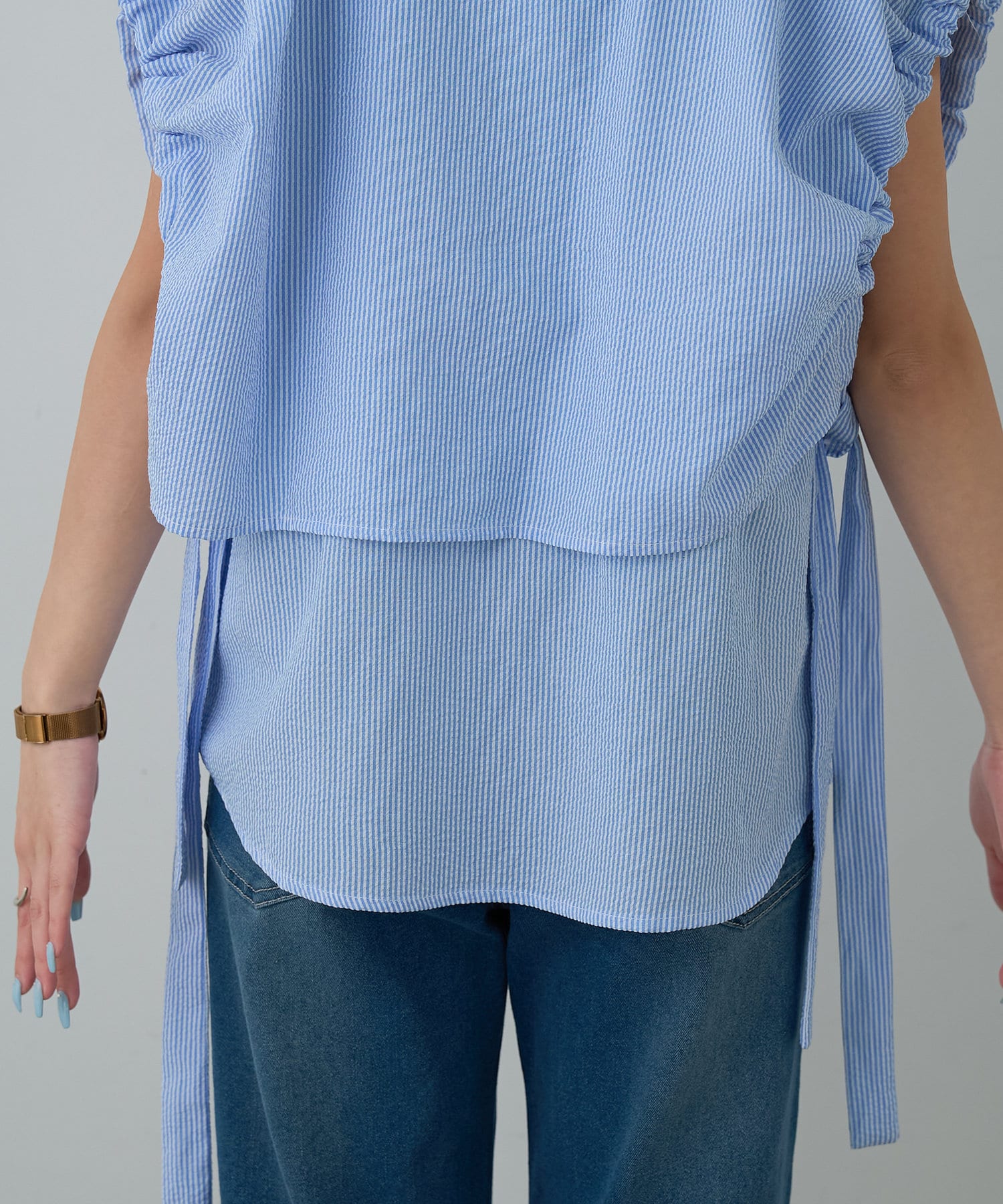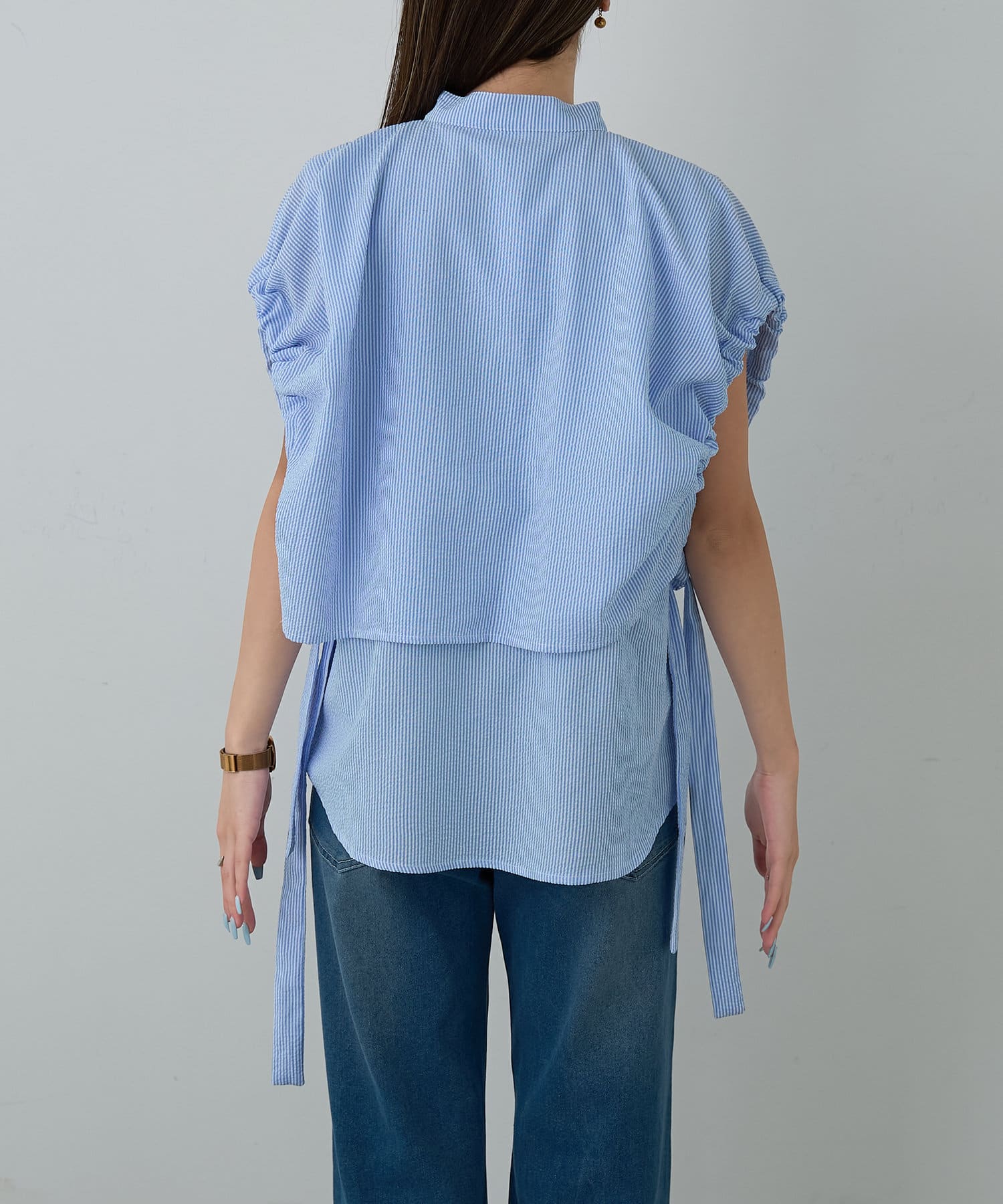 #袖口ブラウス #レイヤード #ノースリーブ #袖口リボンレイヤードブラウス #夏アイテム