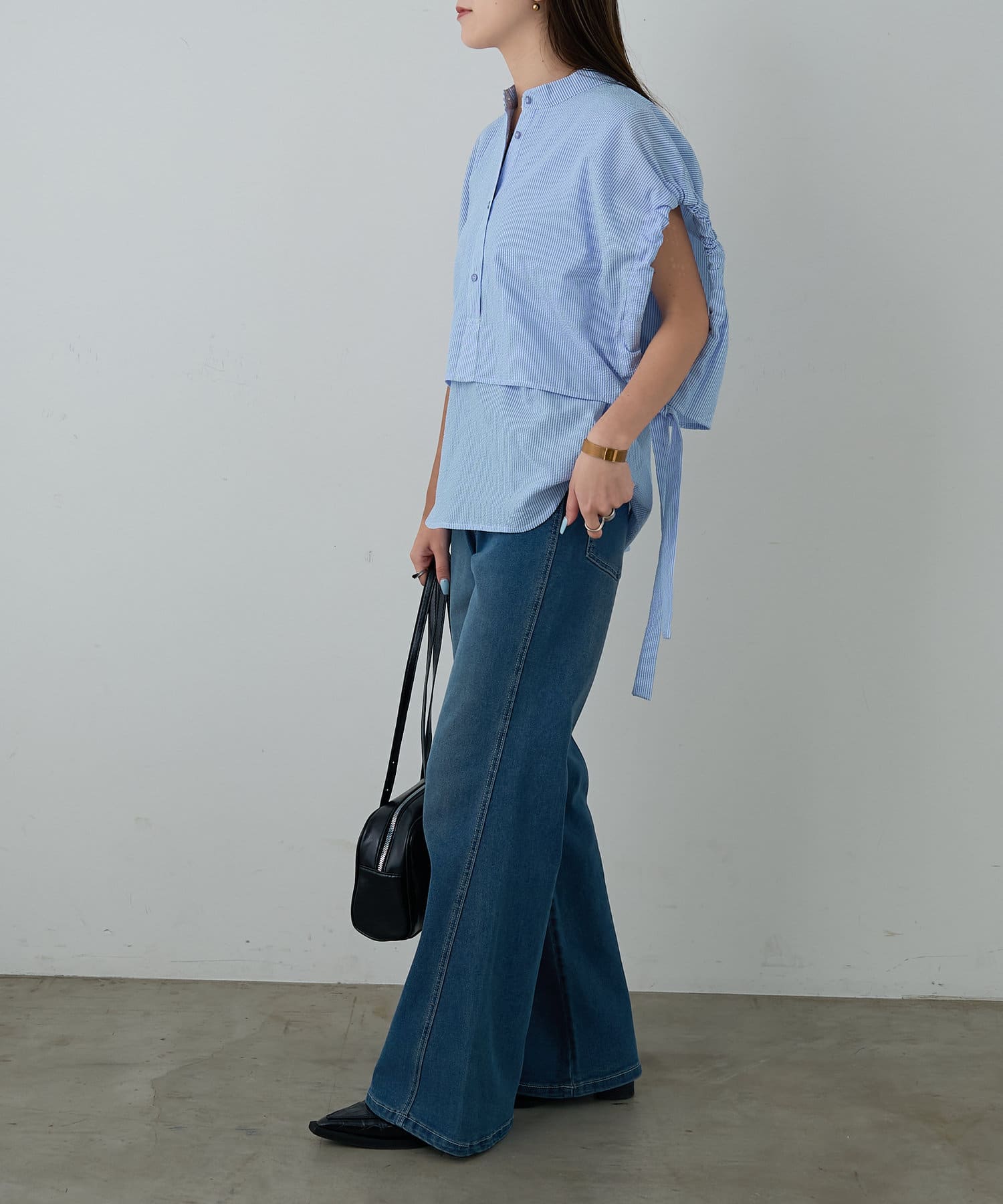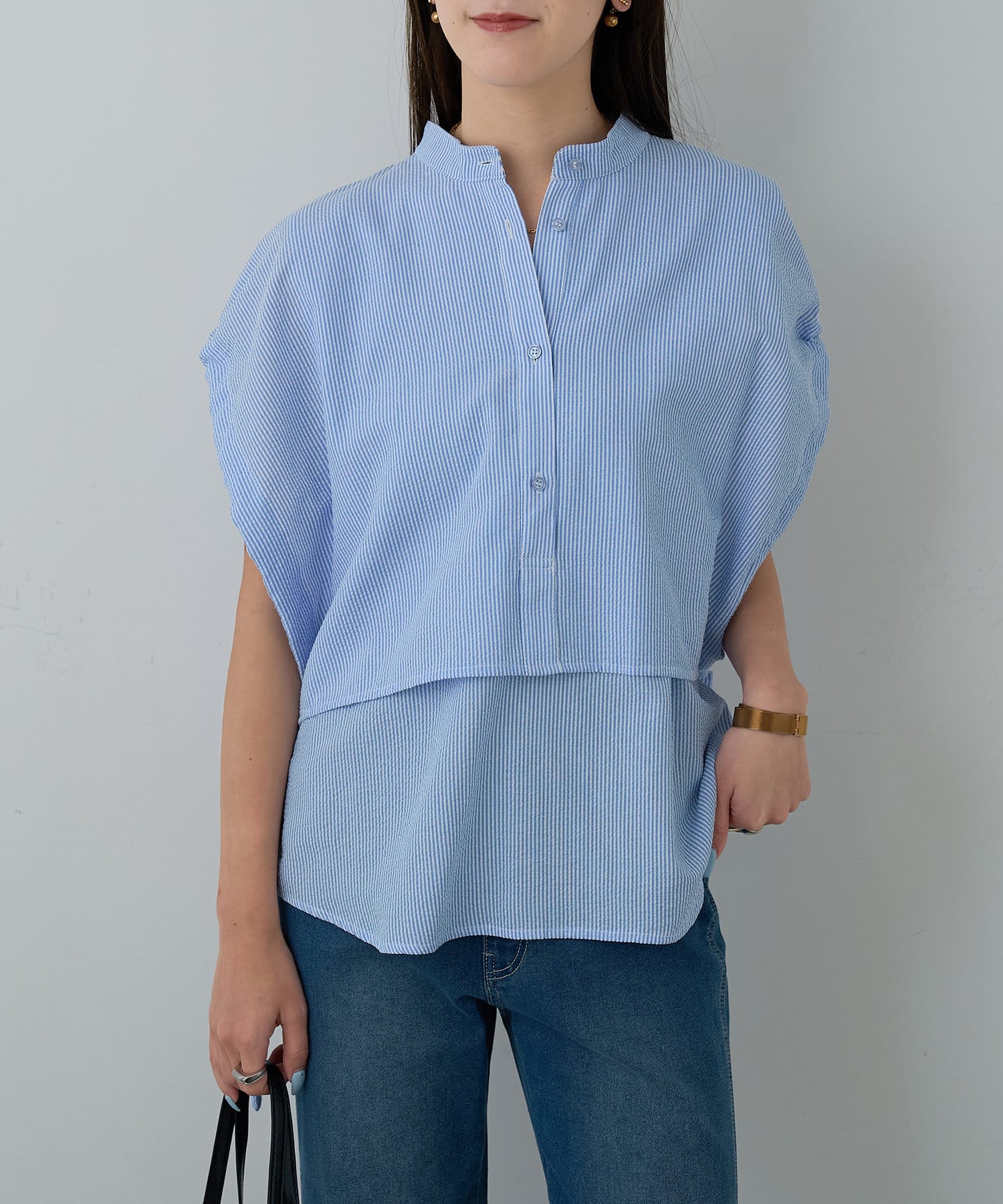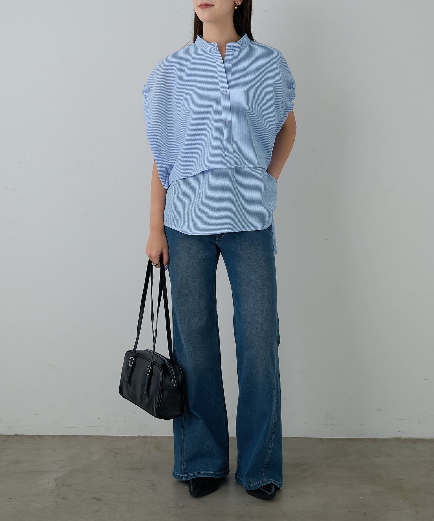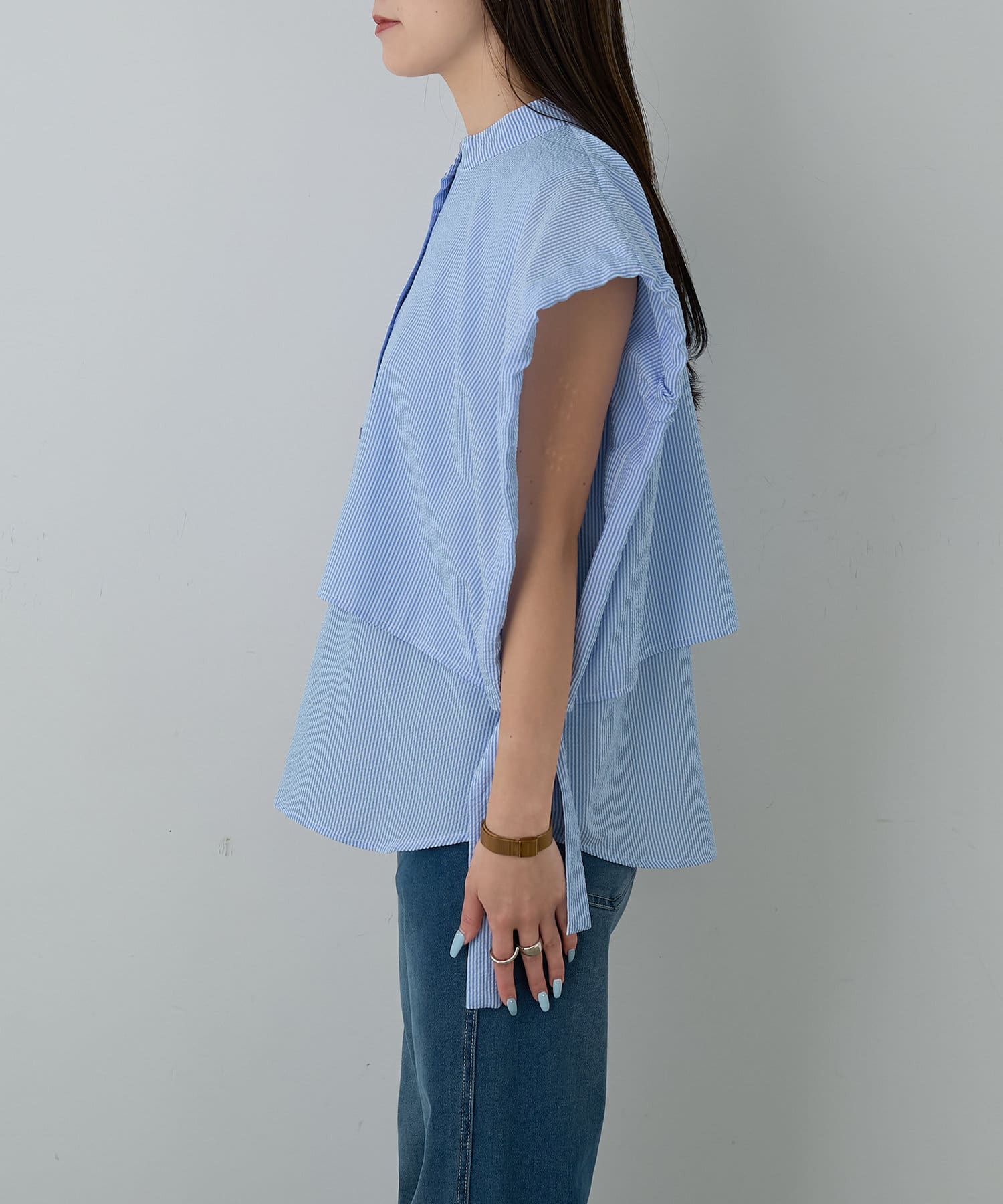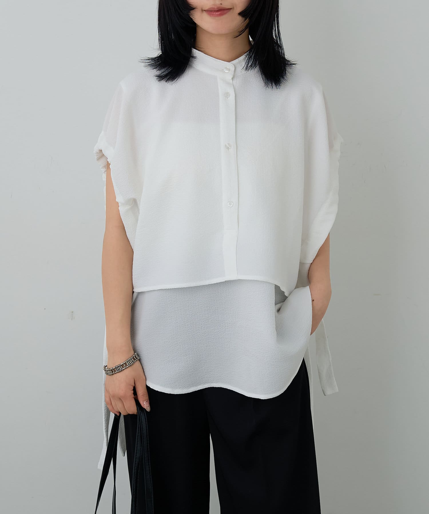 #袖口ブラウス #レイヤード #ノースリーブ #袖口リボンレイヤードブラウス #夏アイテム