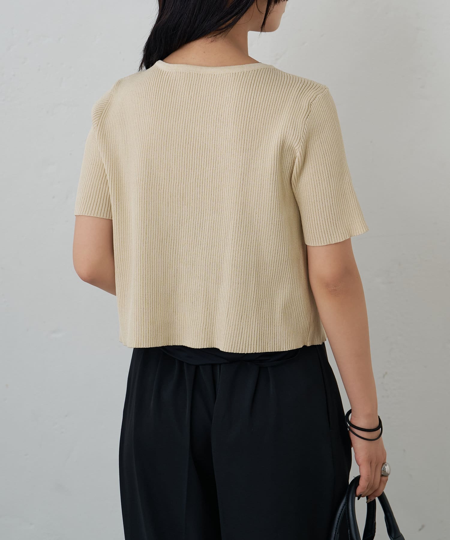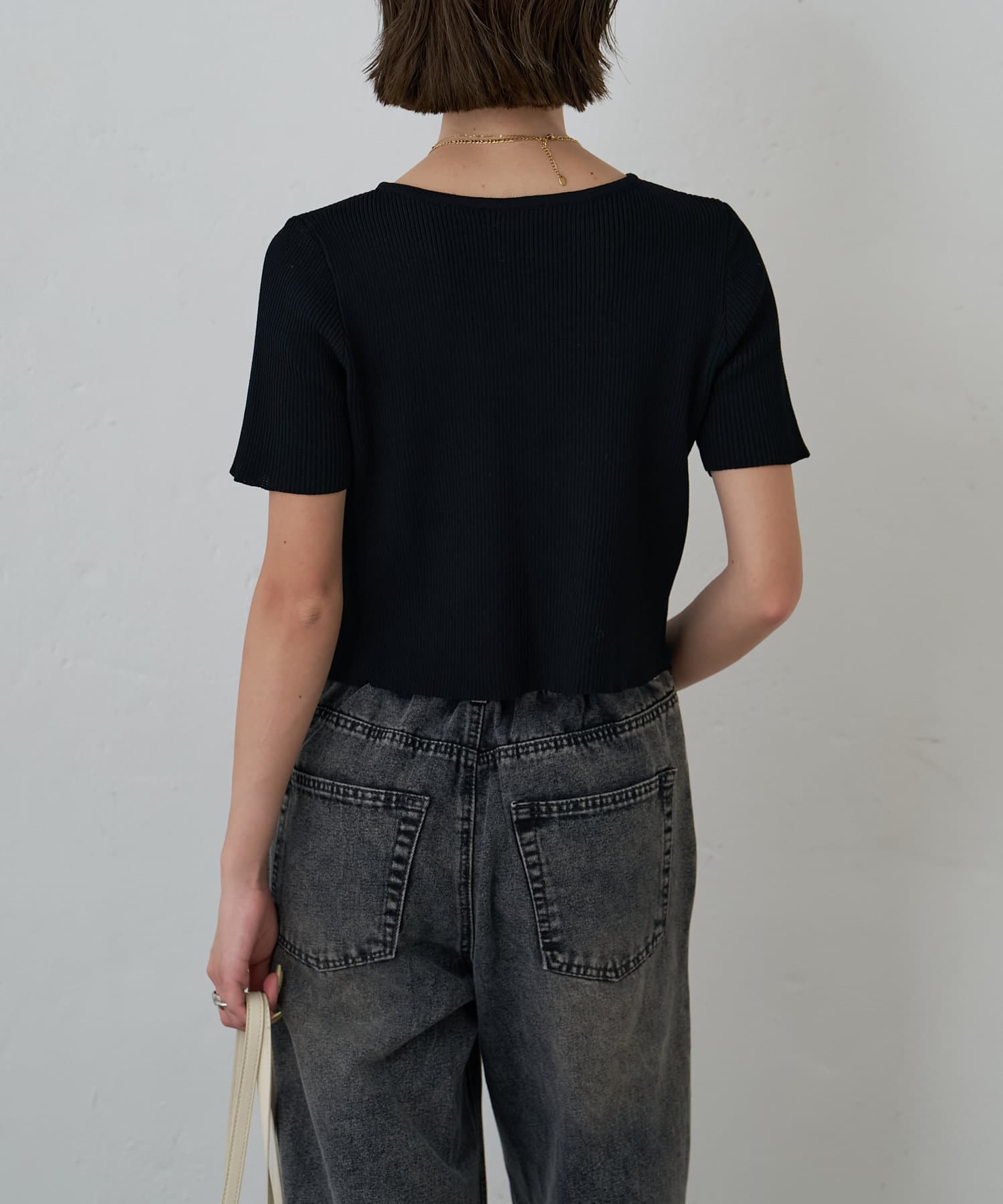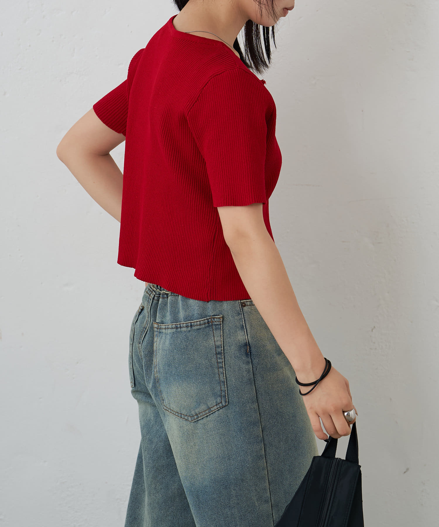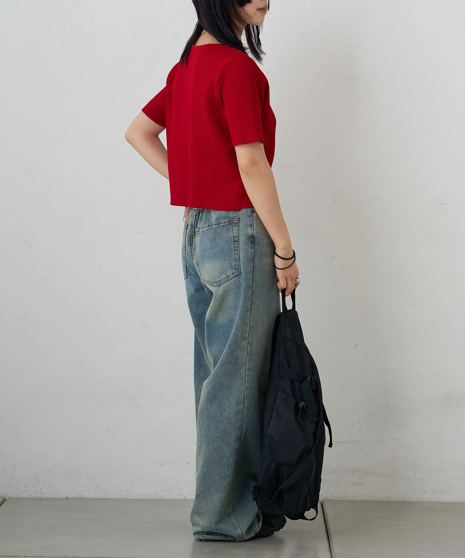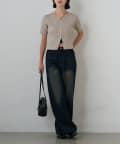 ・コンパクトでクロップド丈なのでハイウエストのボトムなどと合わせるとバランスよく着用できるのでおすすめ。