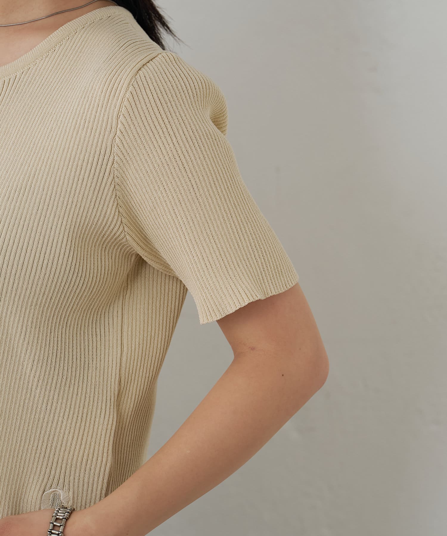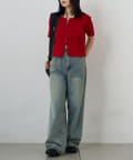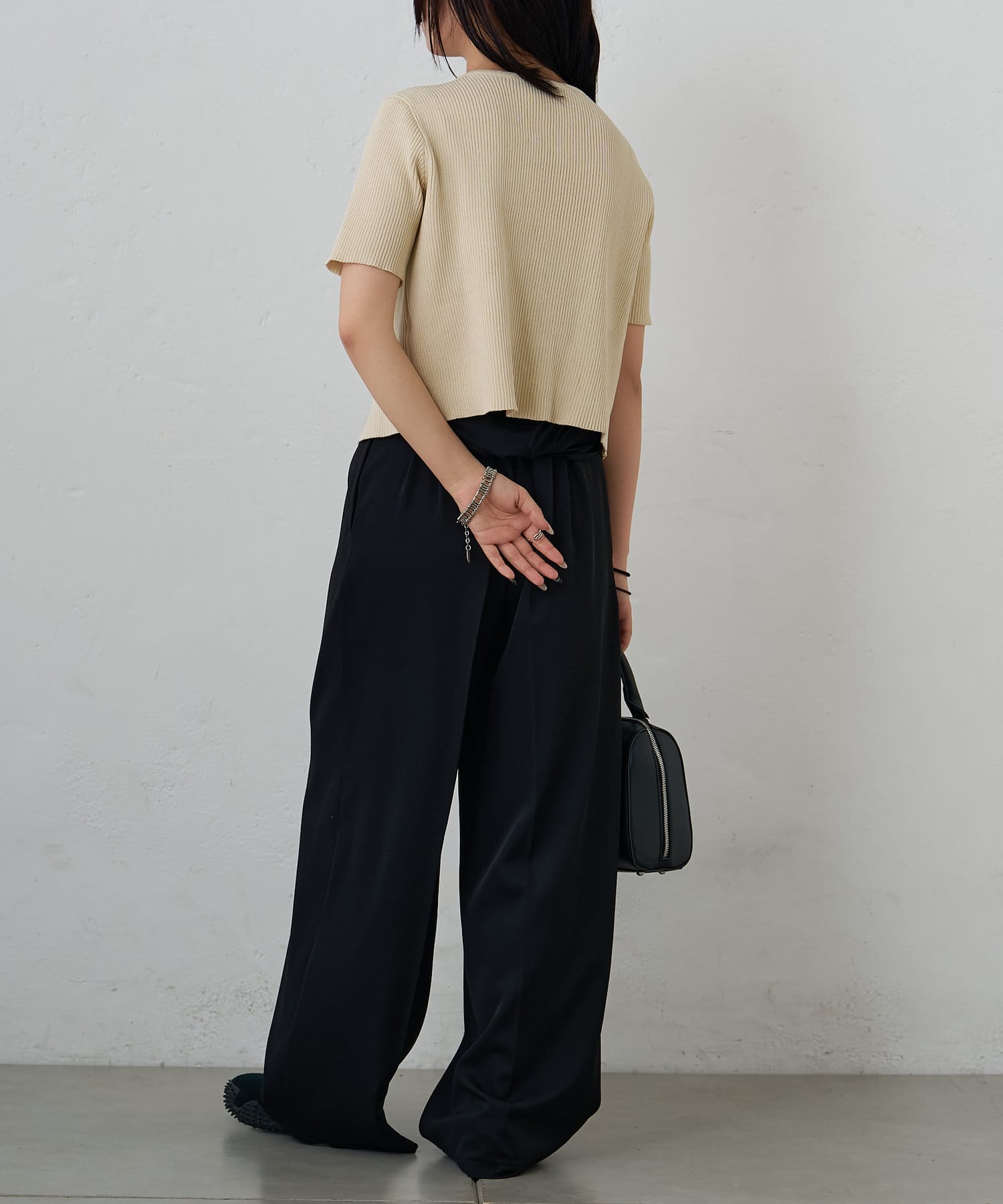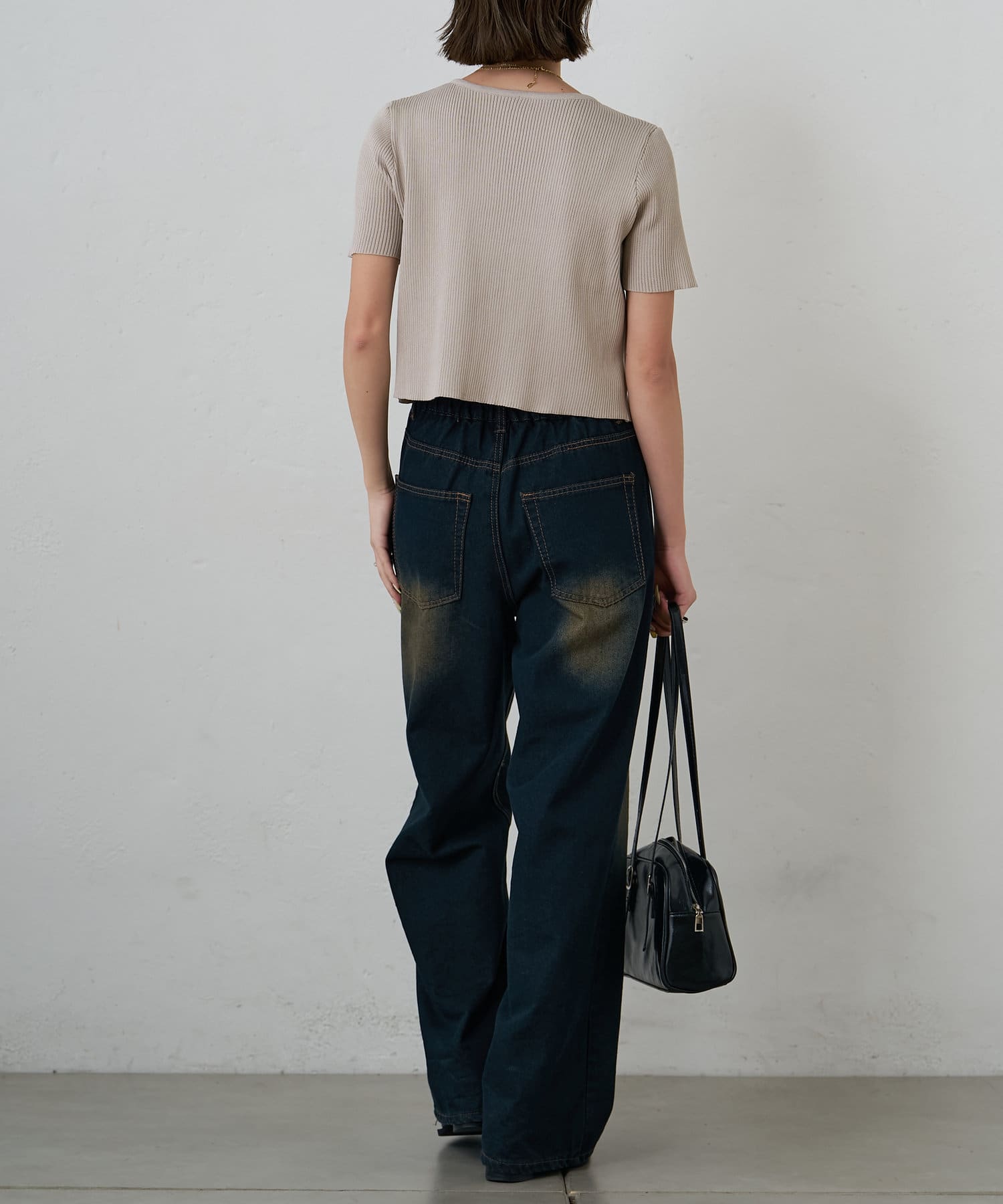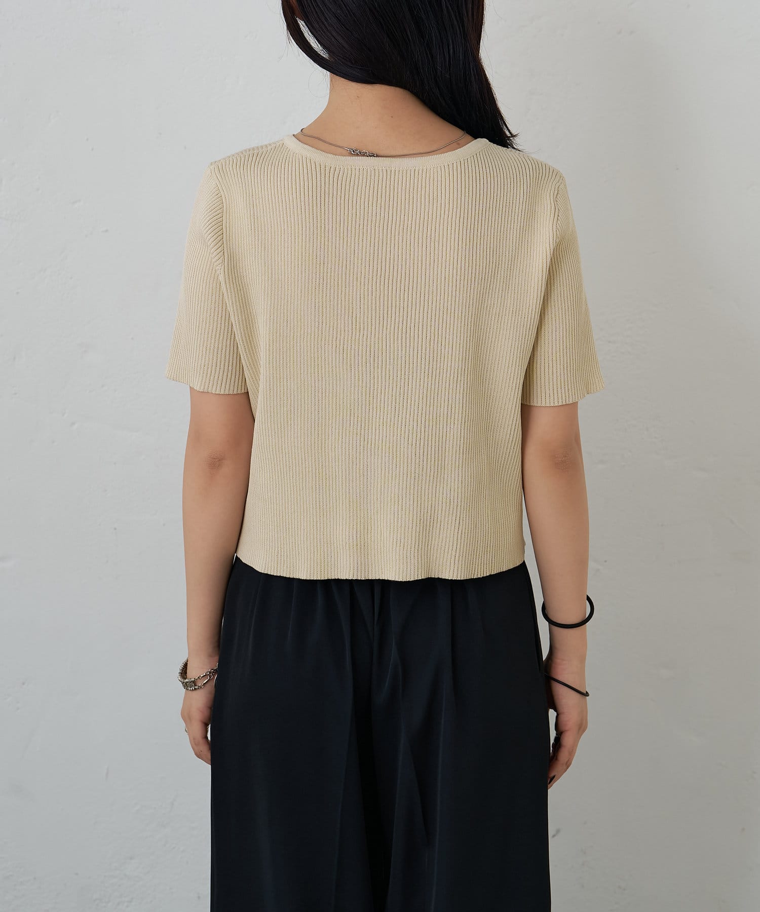 ・コンパクトでクロップド丈なのでハイウエストのボトムなどと合わせるとバランスよく着用できるのでおすすめ。