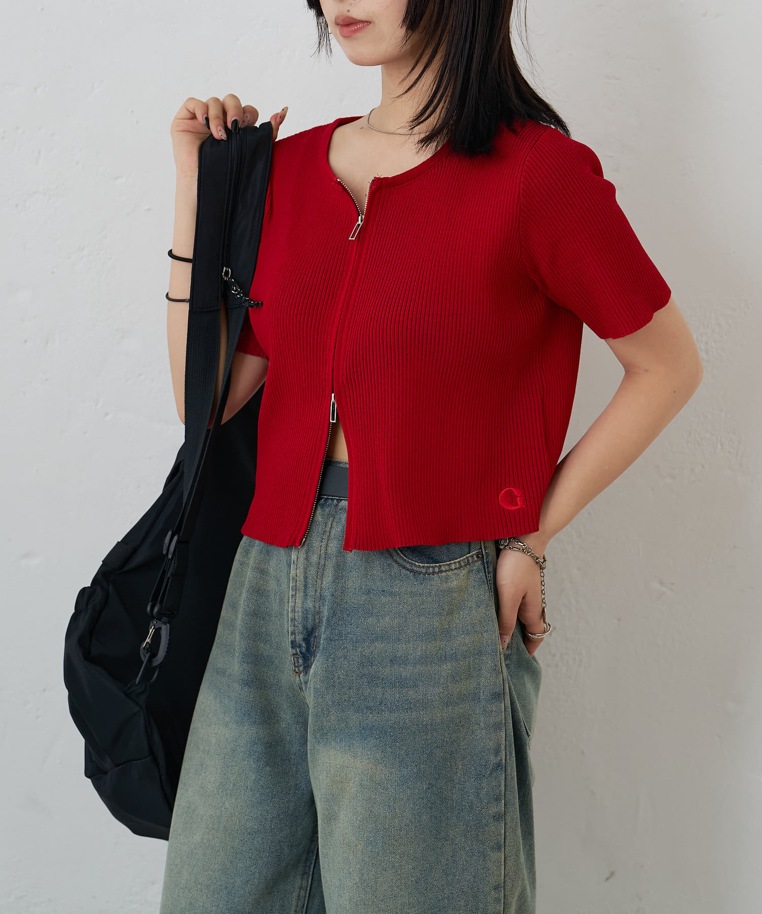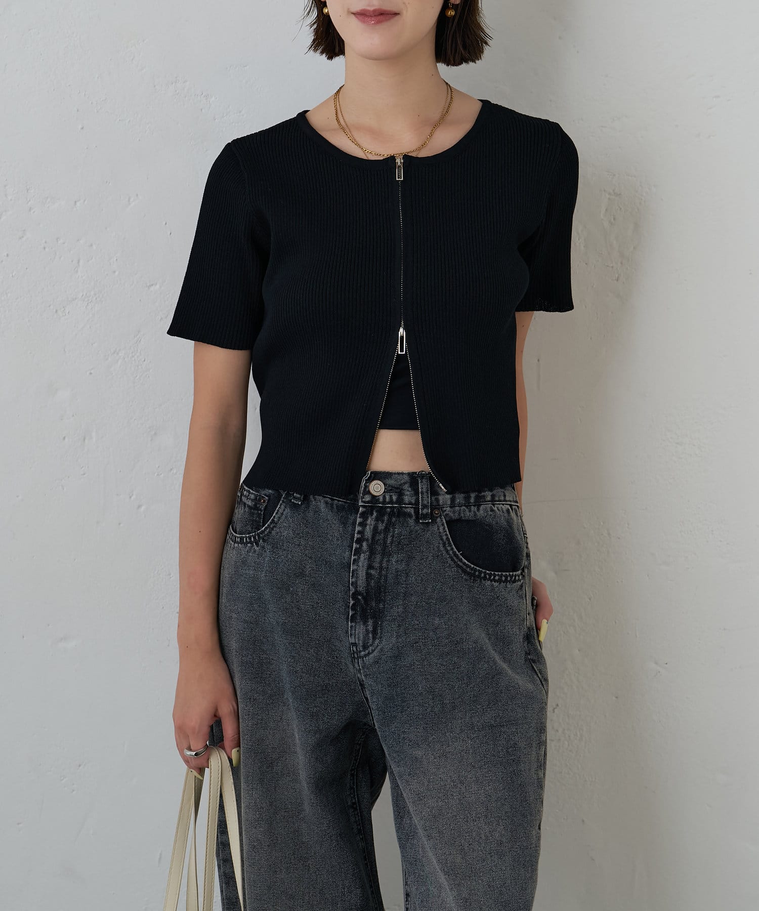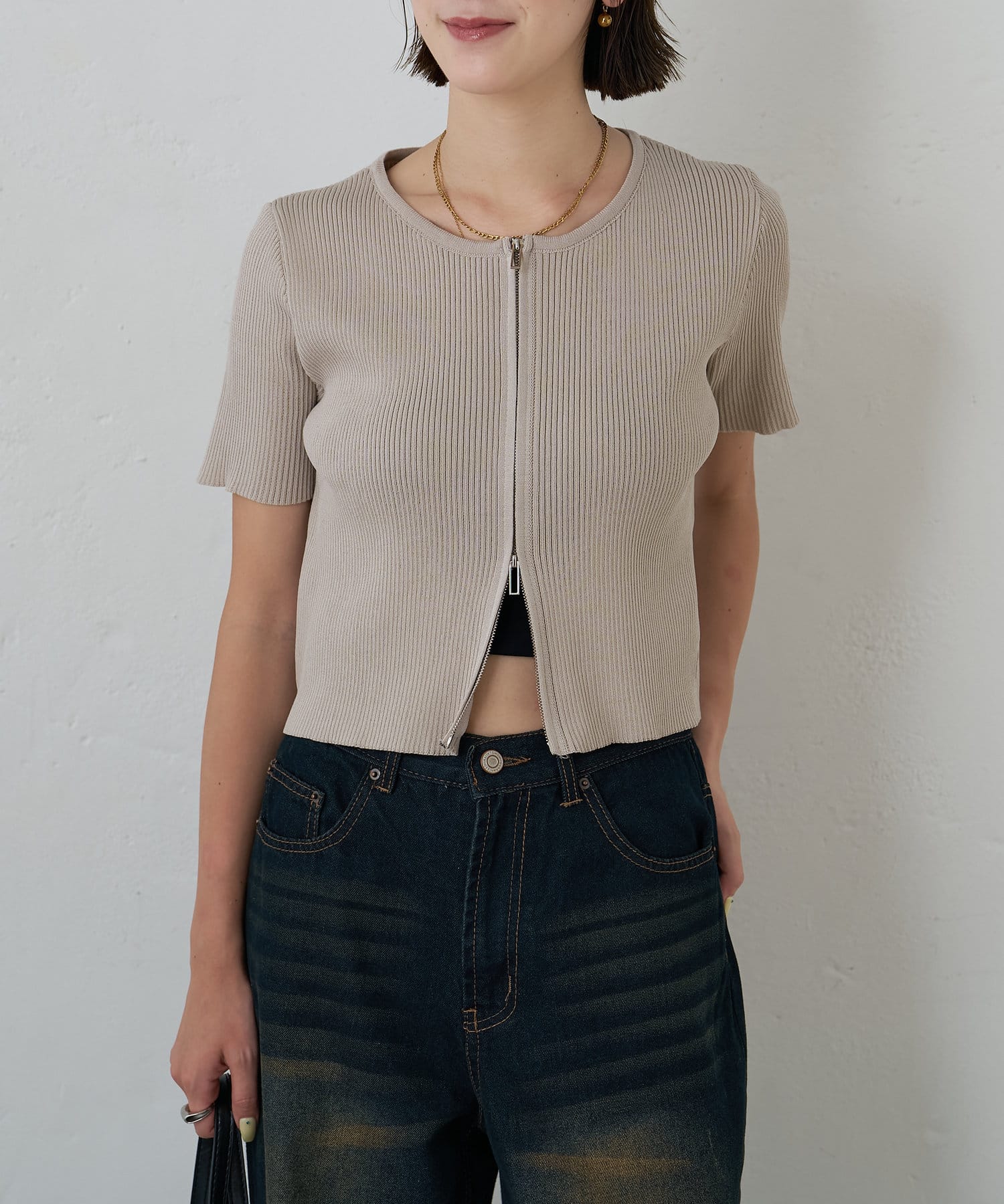 #ダブルジップ #リブニット #カーディガン #クロップド丈