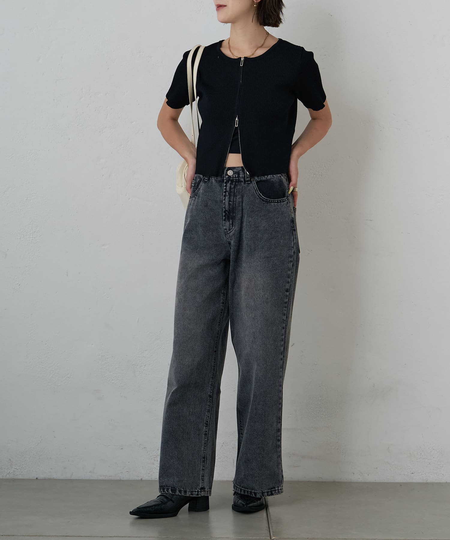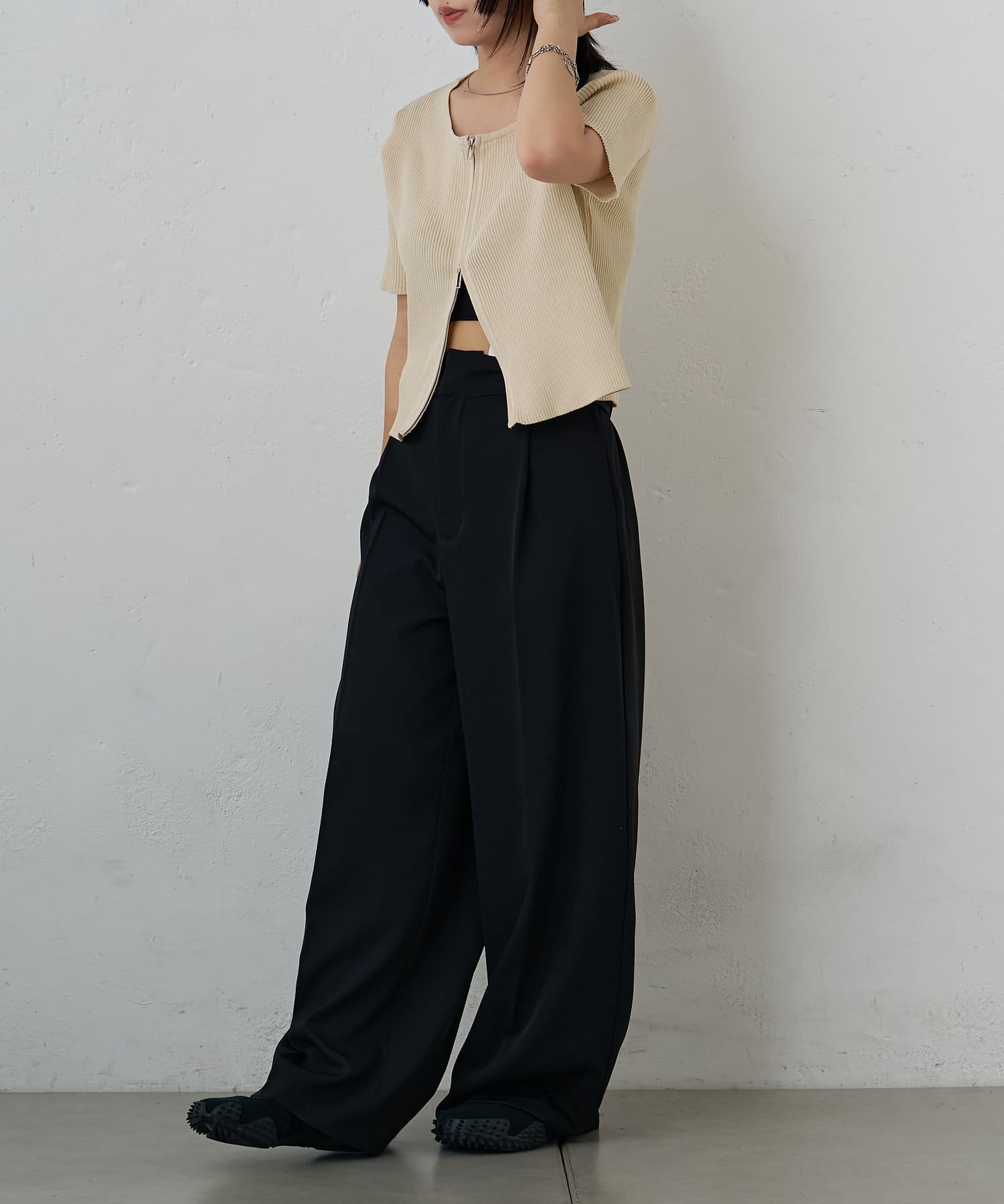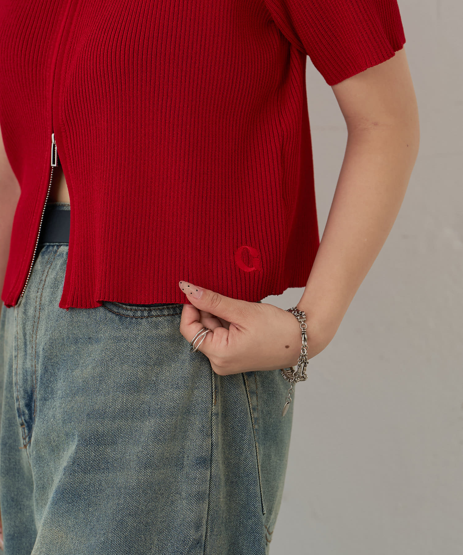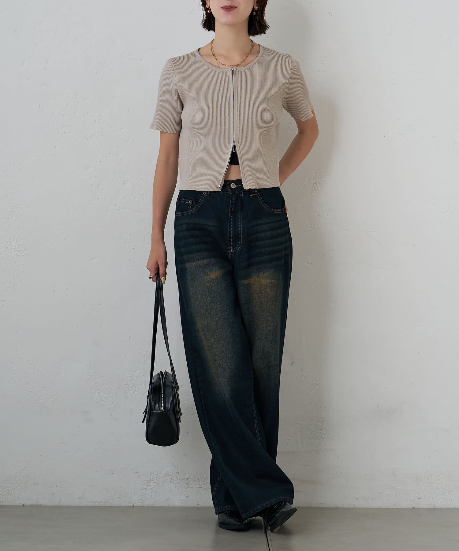 #ダブルジップ #リブニット #カーディガン #クロップド丈