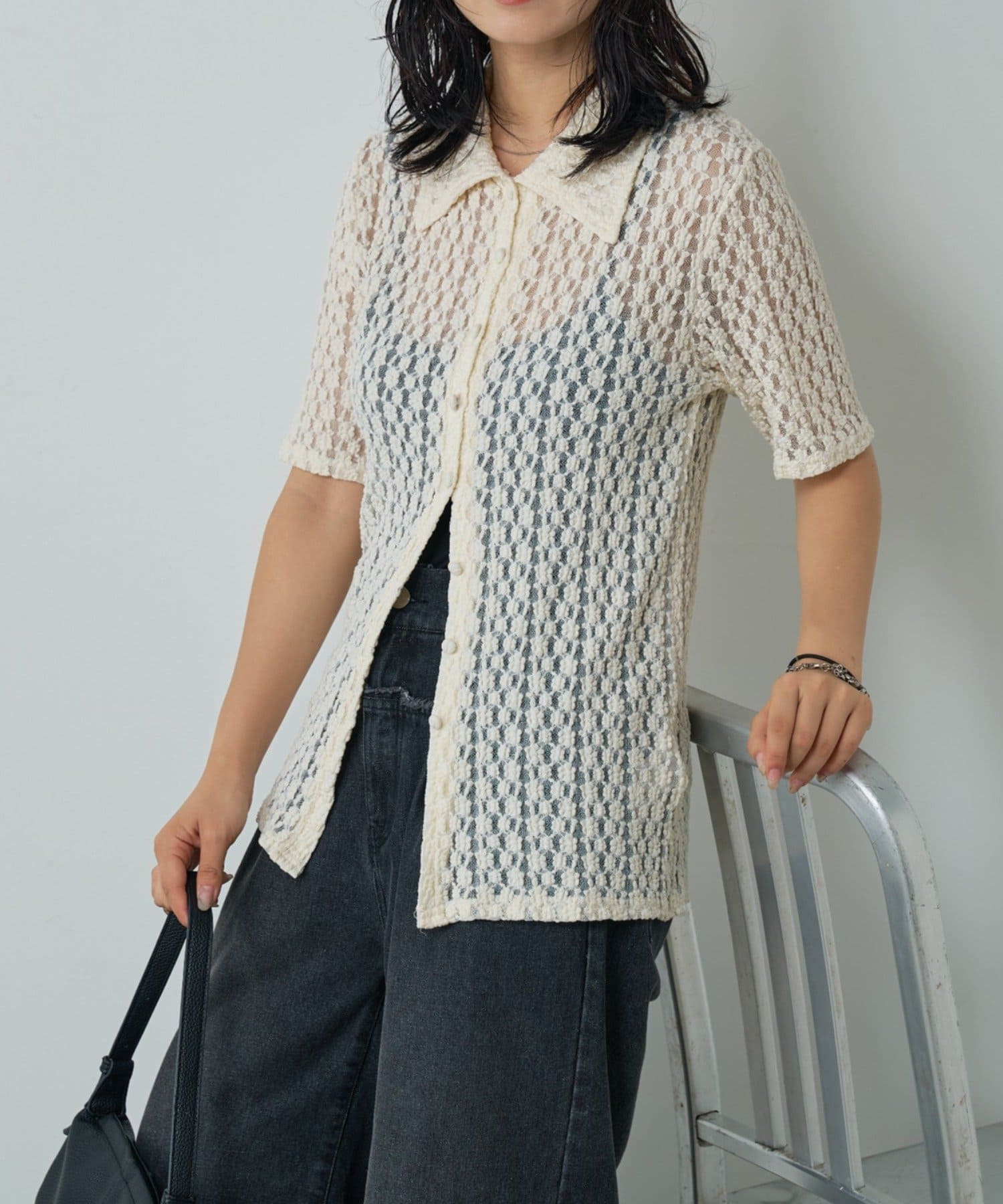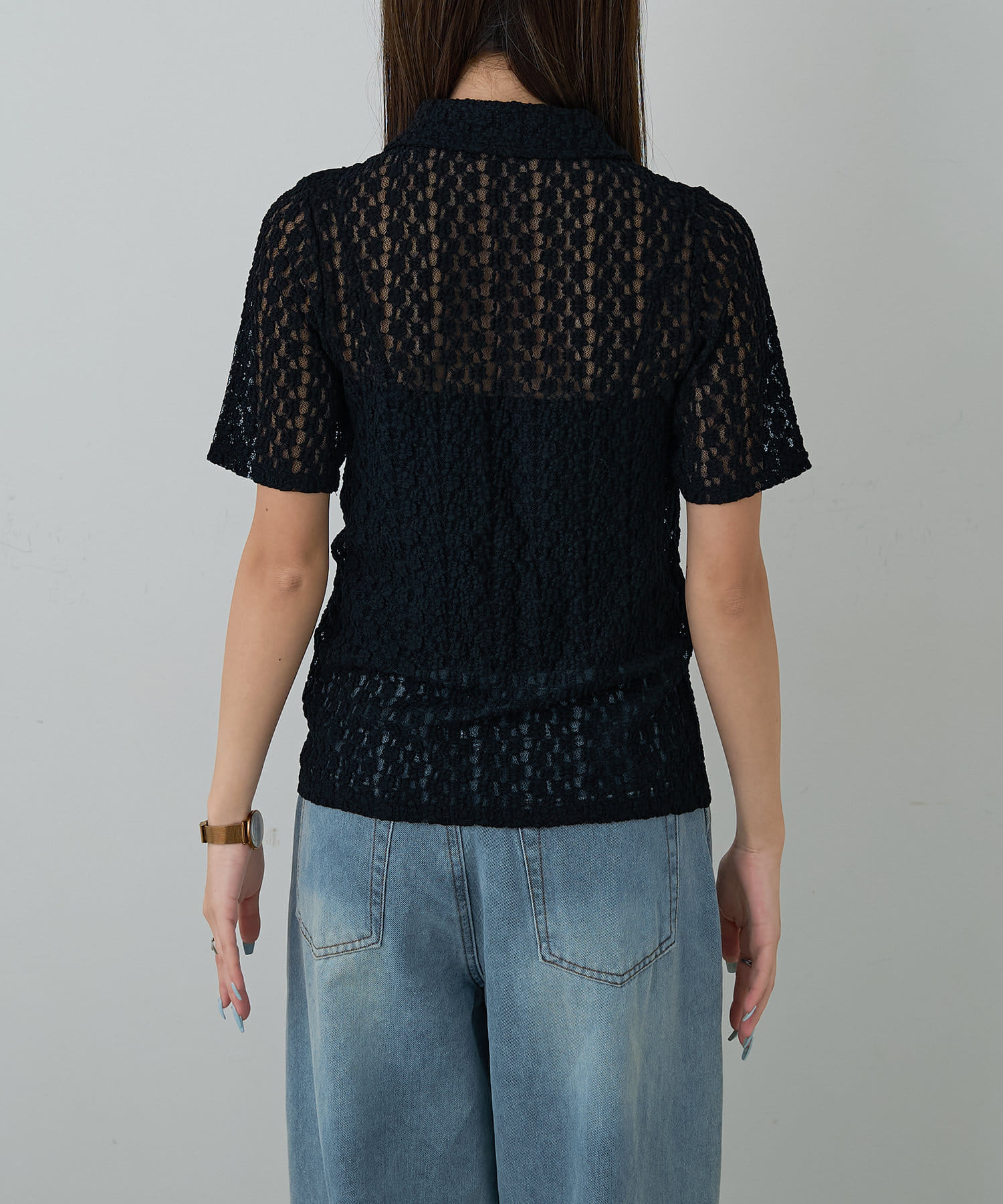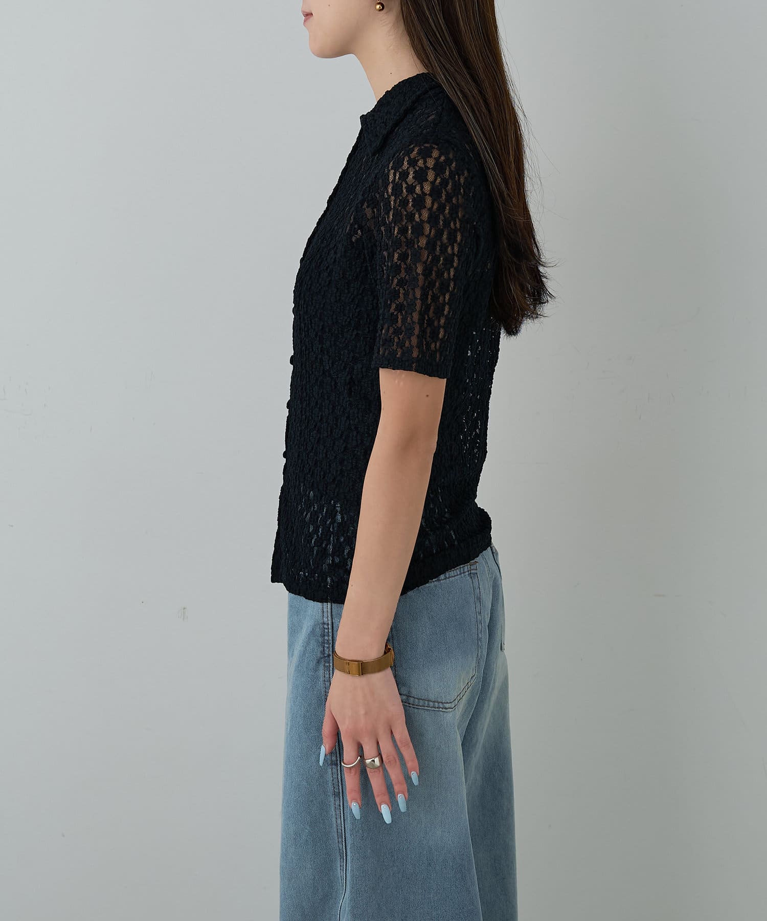 #レースシャツ#カーディガン#半袖カーディガン#レースカーディガン#襟付きカーディガン