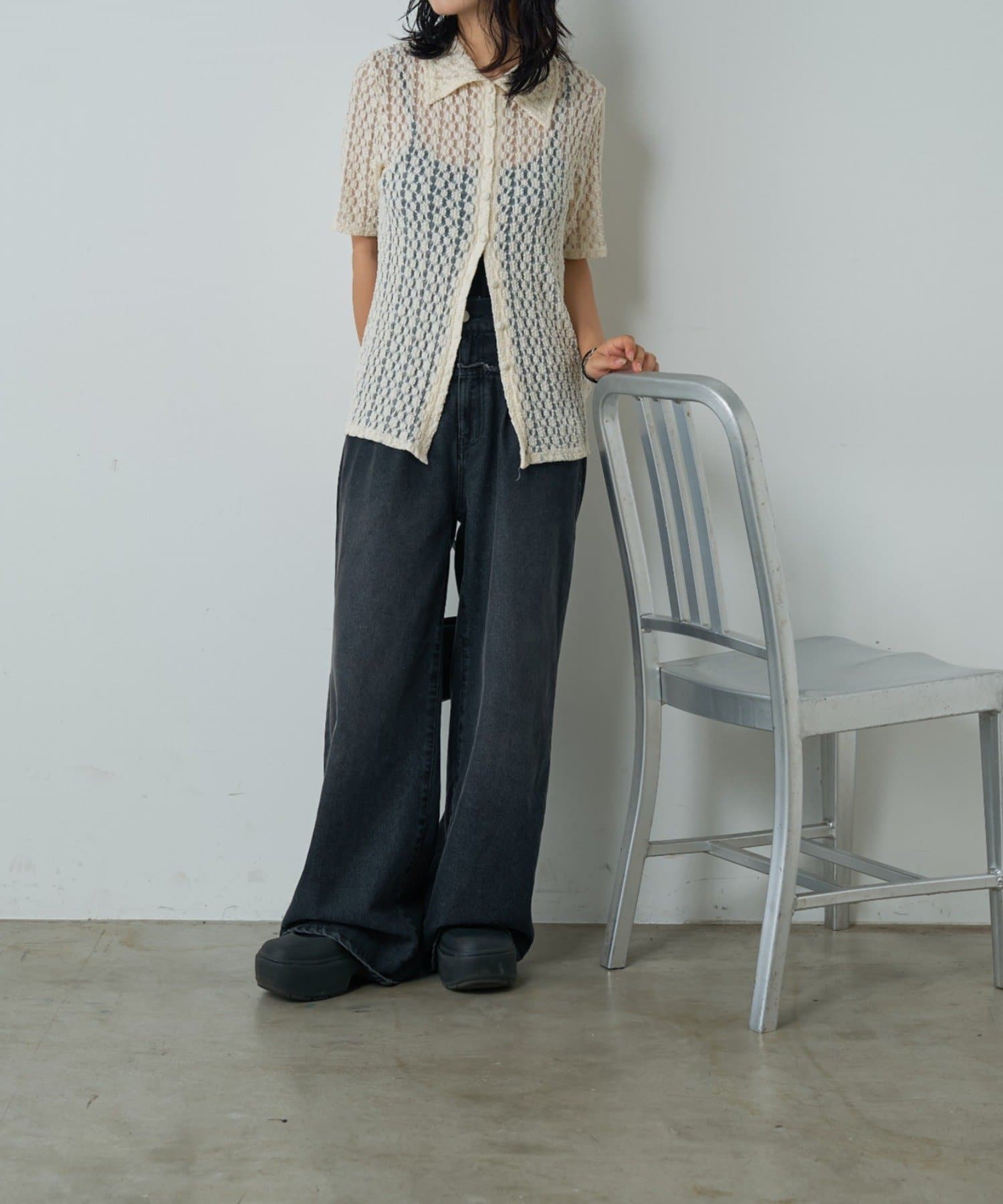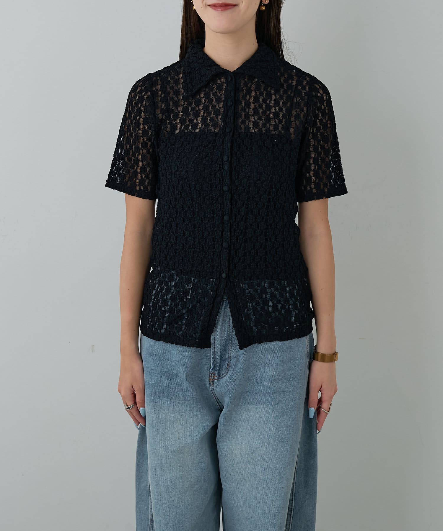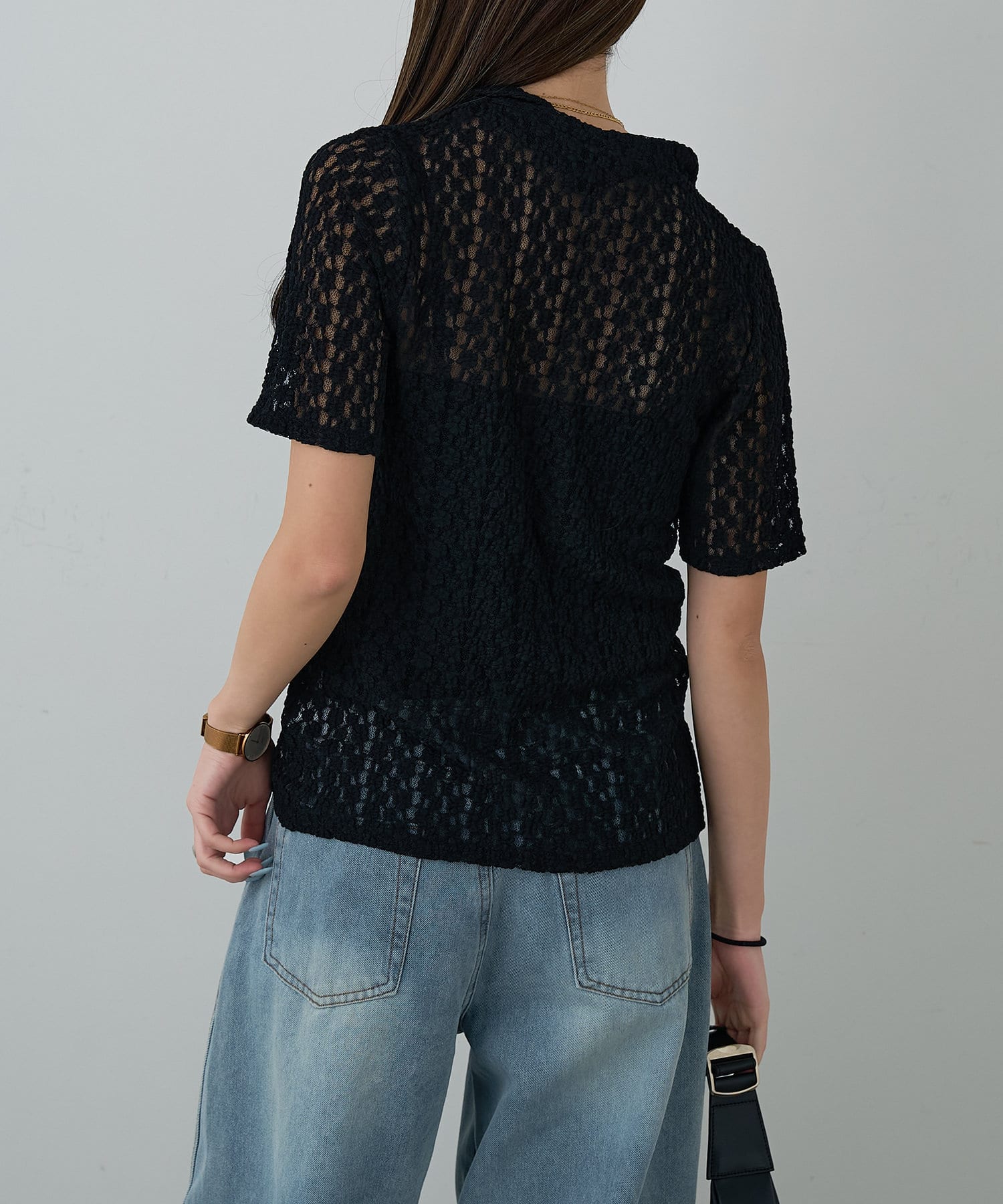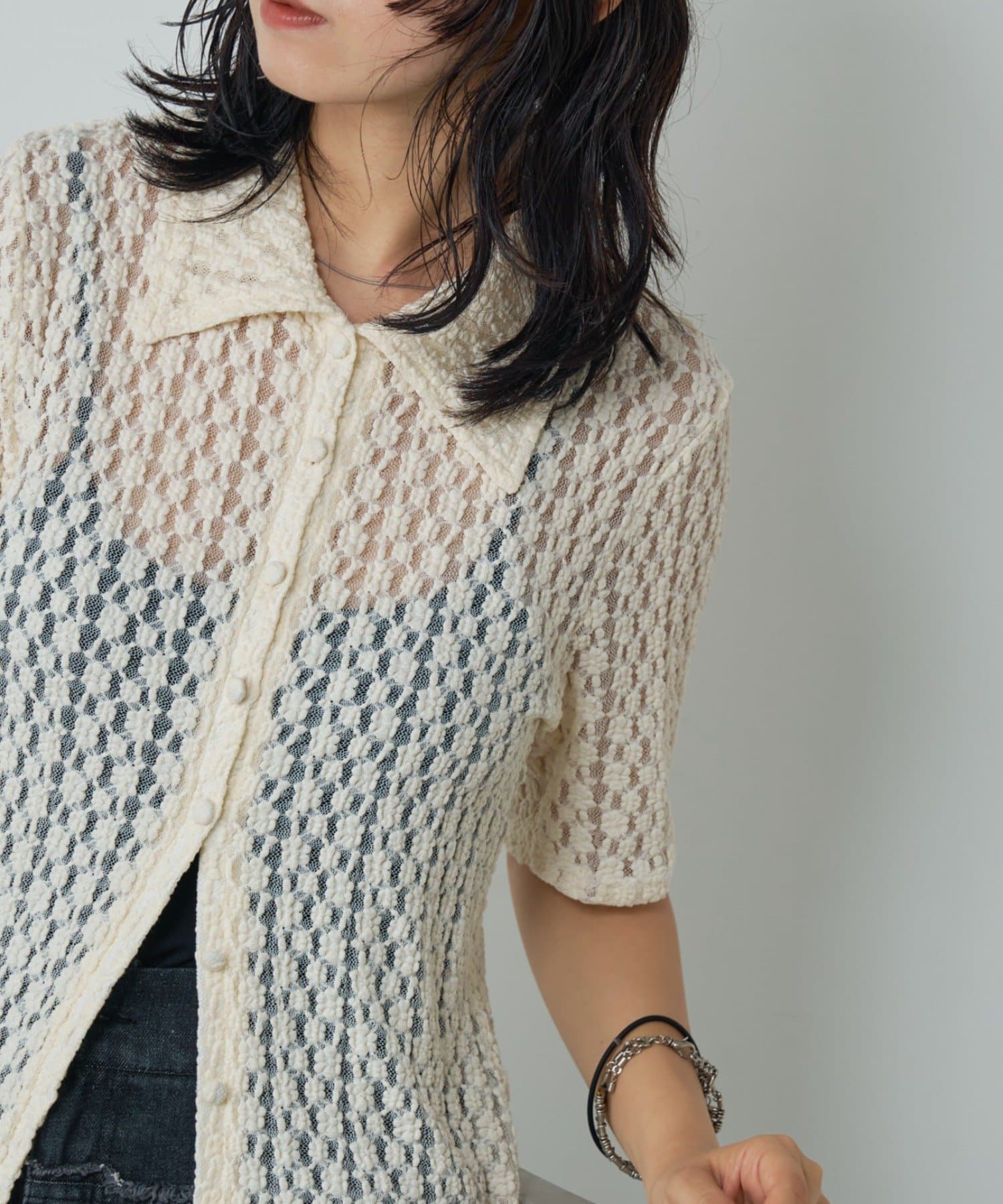 #レースシャツ#カーディガン#半袖カーディガン#レースカーディガン#襟付きカーディガン